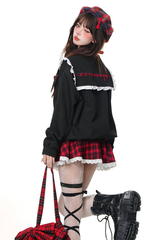 ロリータ皇子ブラウス+ショートパンツ+チェックキャスケット