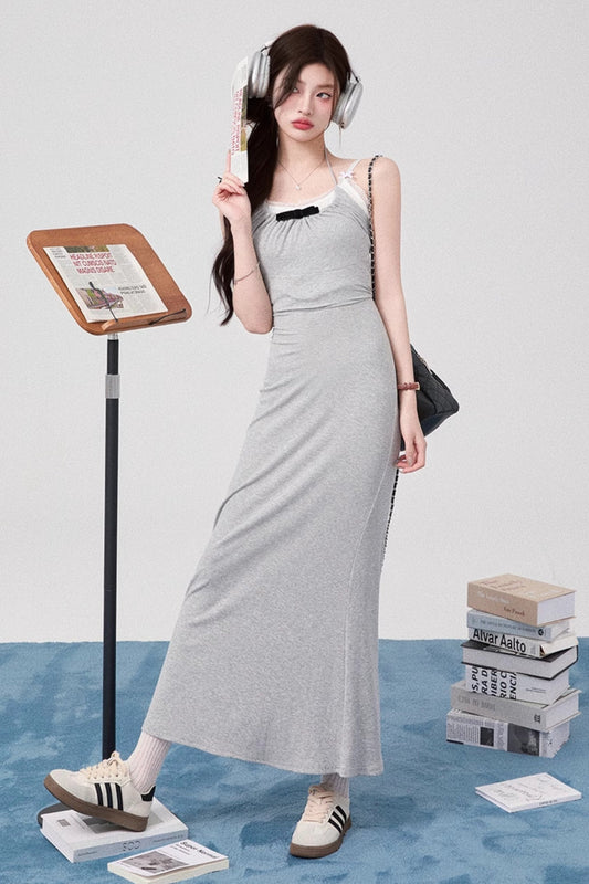 ボウワンショルダーニットトップス+プリーツスカート+リボンケーキスカート