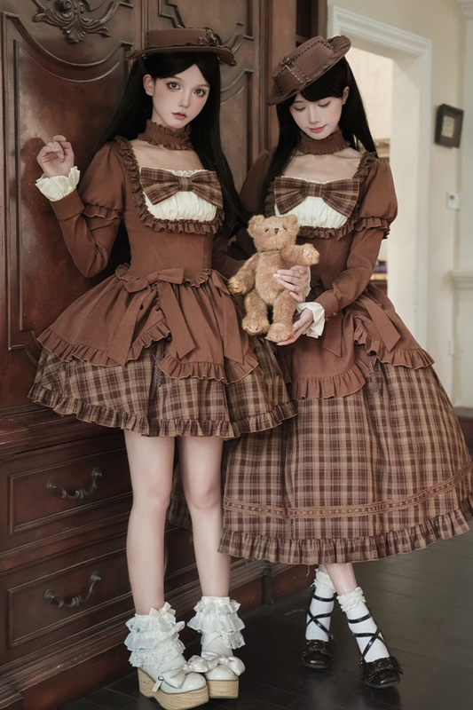 スイートチェックドールドレス+2WAYリボン+リボン+ハット
