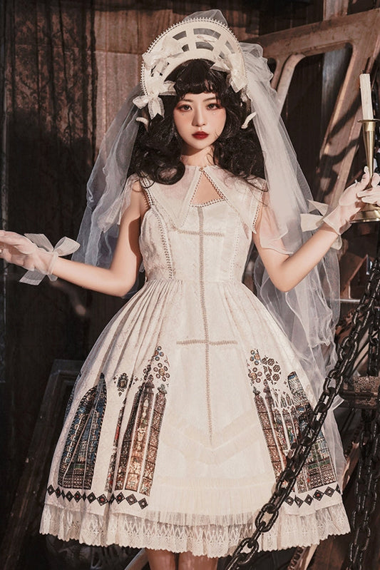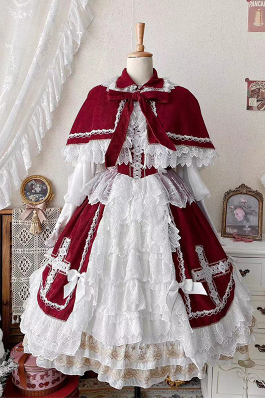 ゴシックドールレースジャンパースカート+ボンネット+ショール