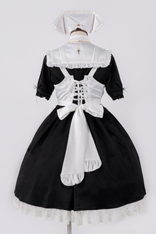 ランタンエンジェルメイドロリータドレス+エプロン+つけ襟