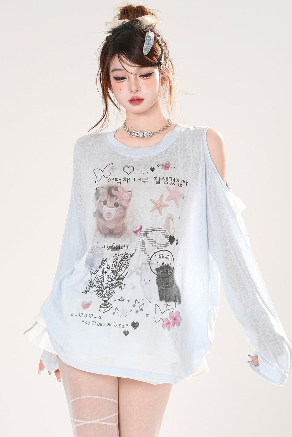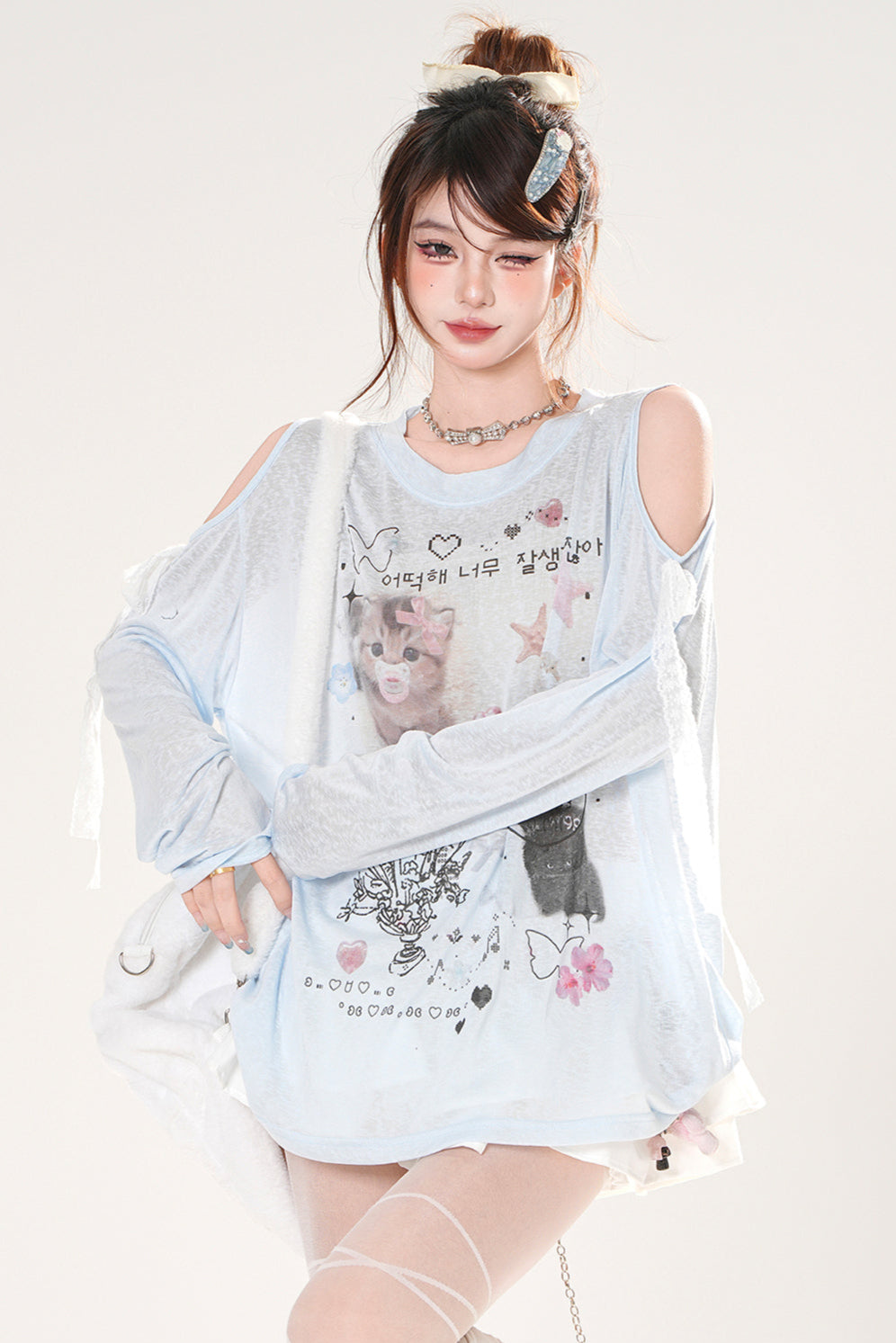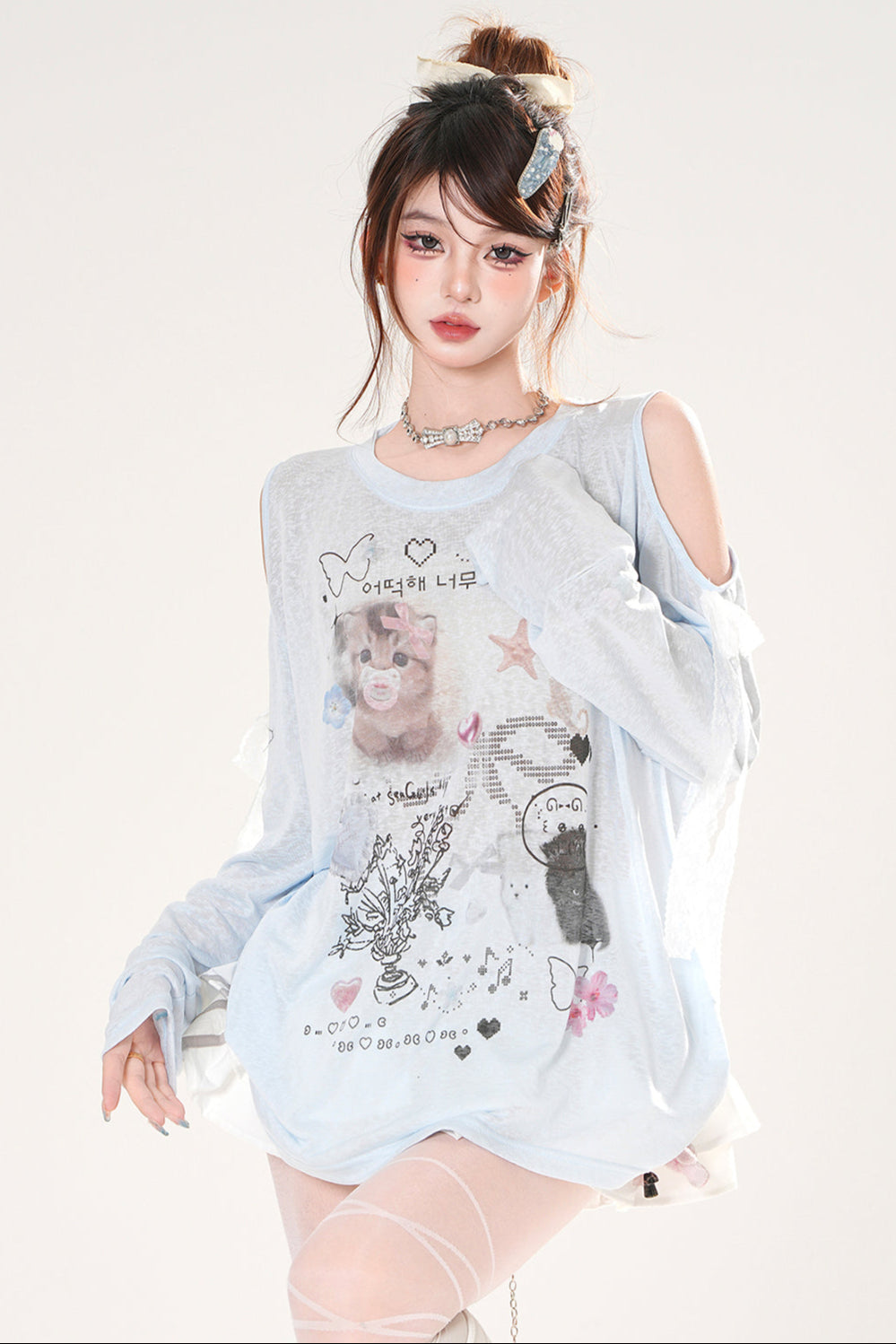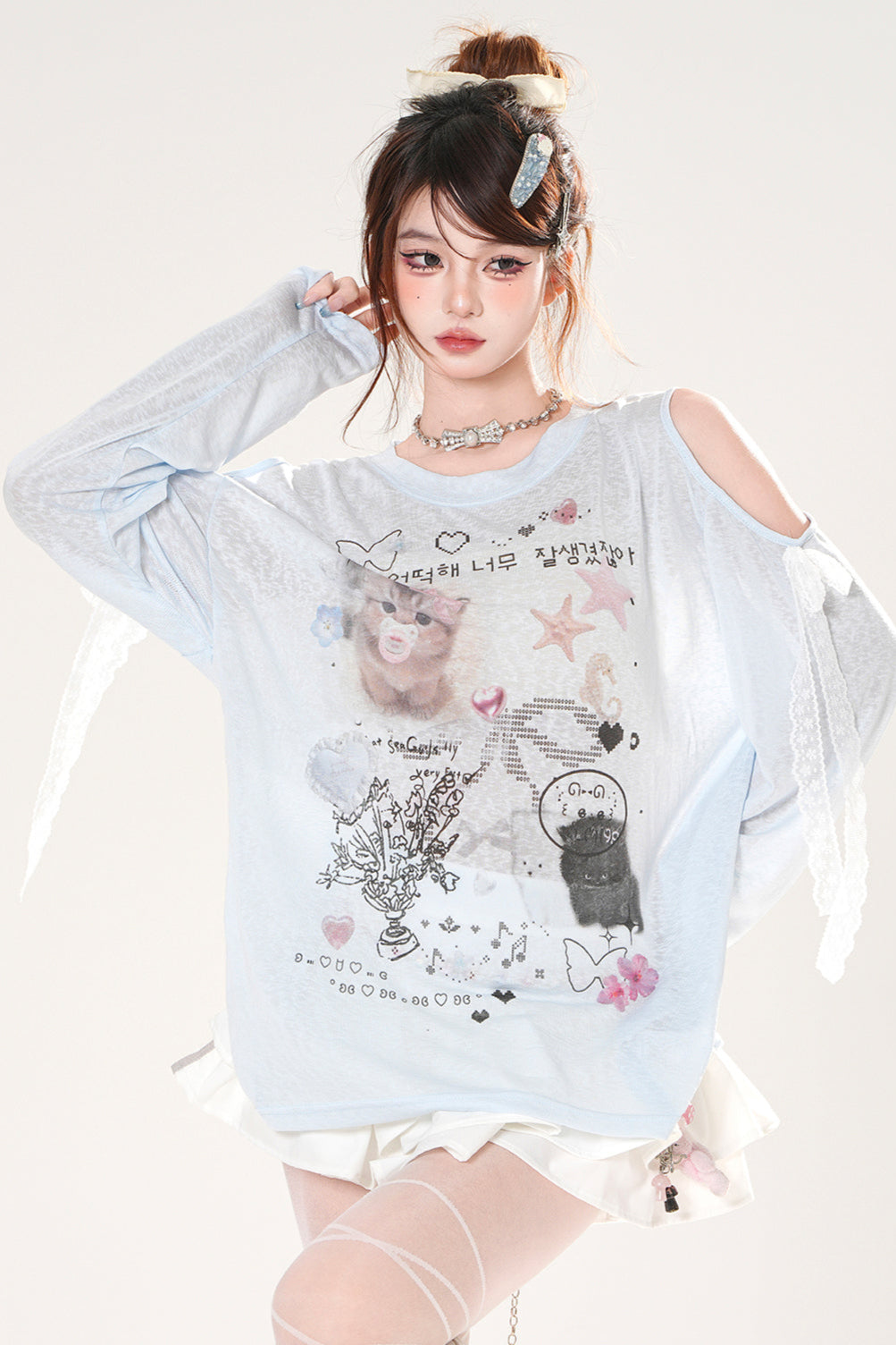 シアーキュートデザインブリージースモックトップス