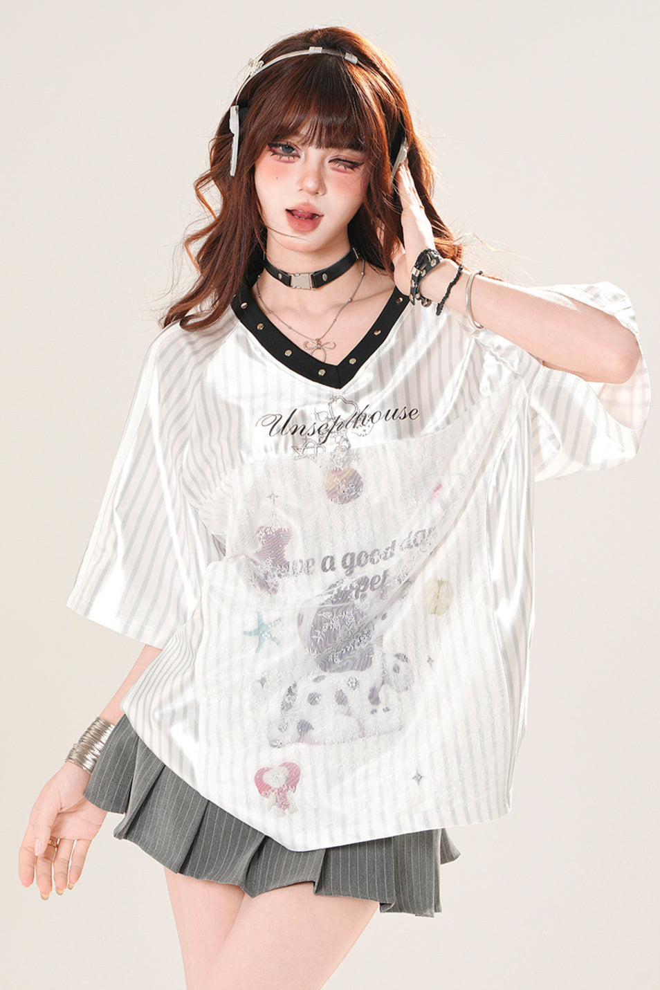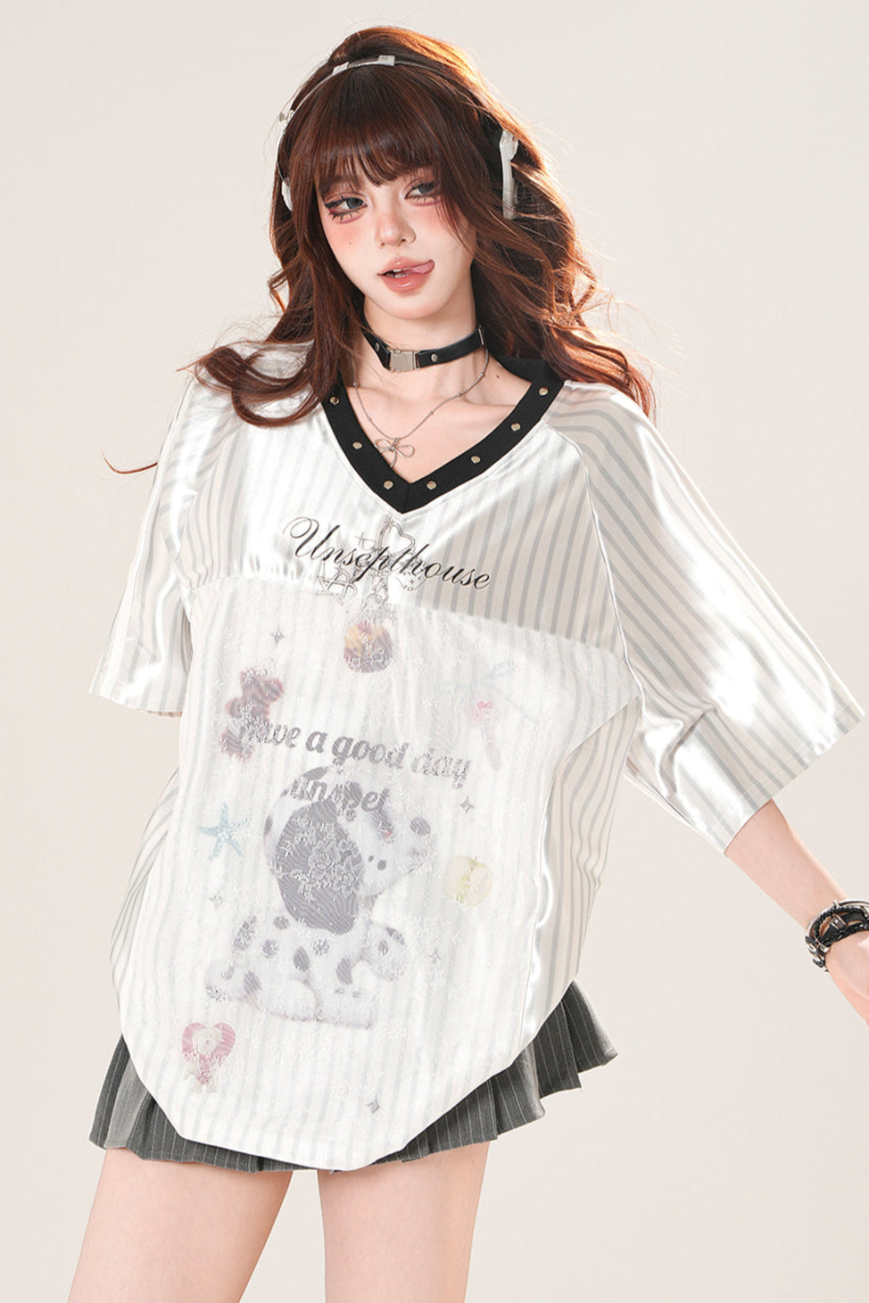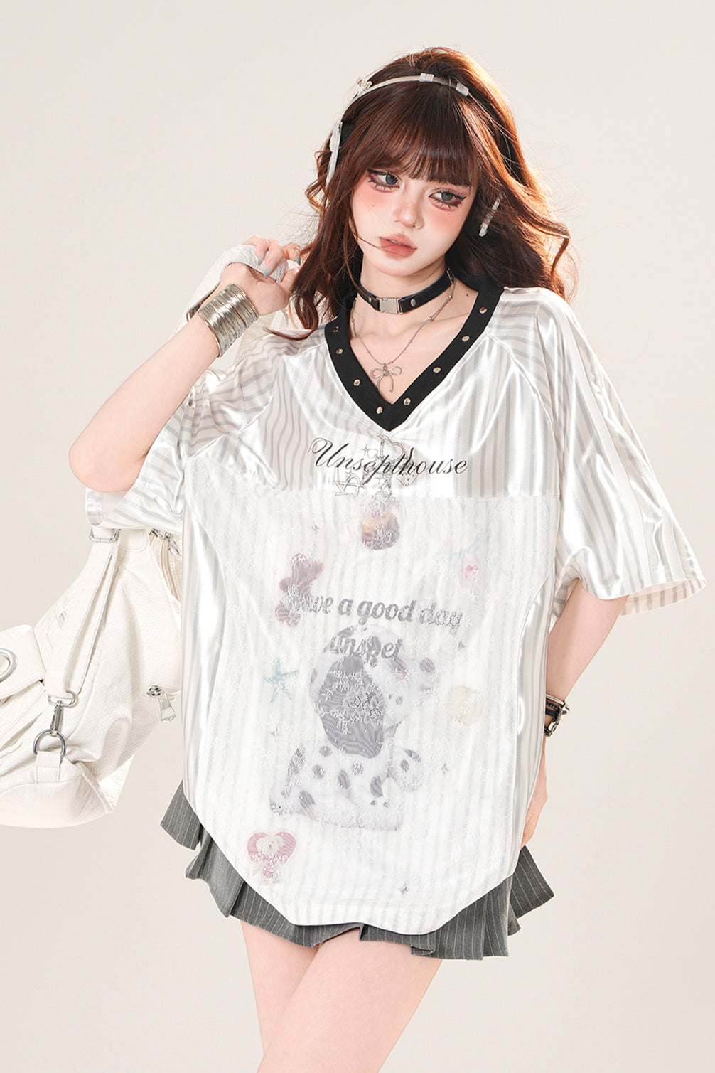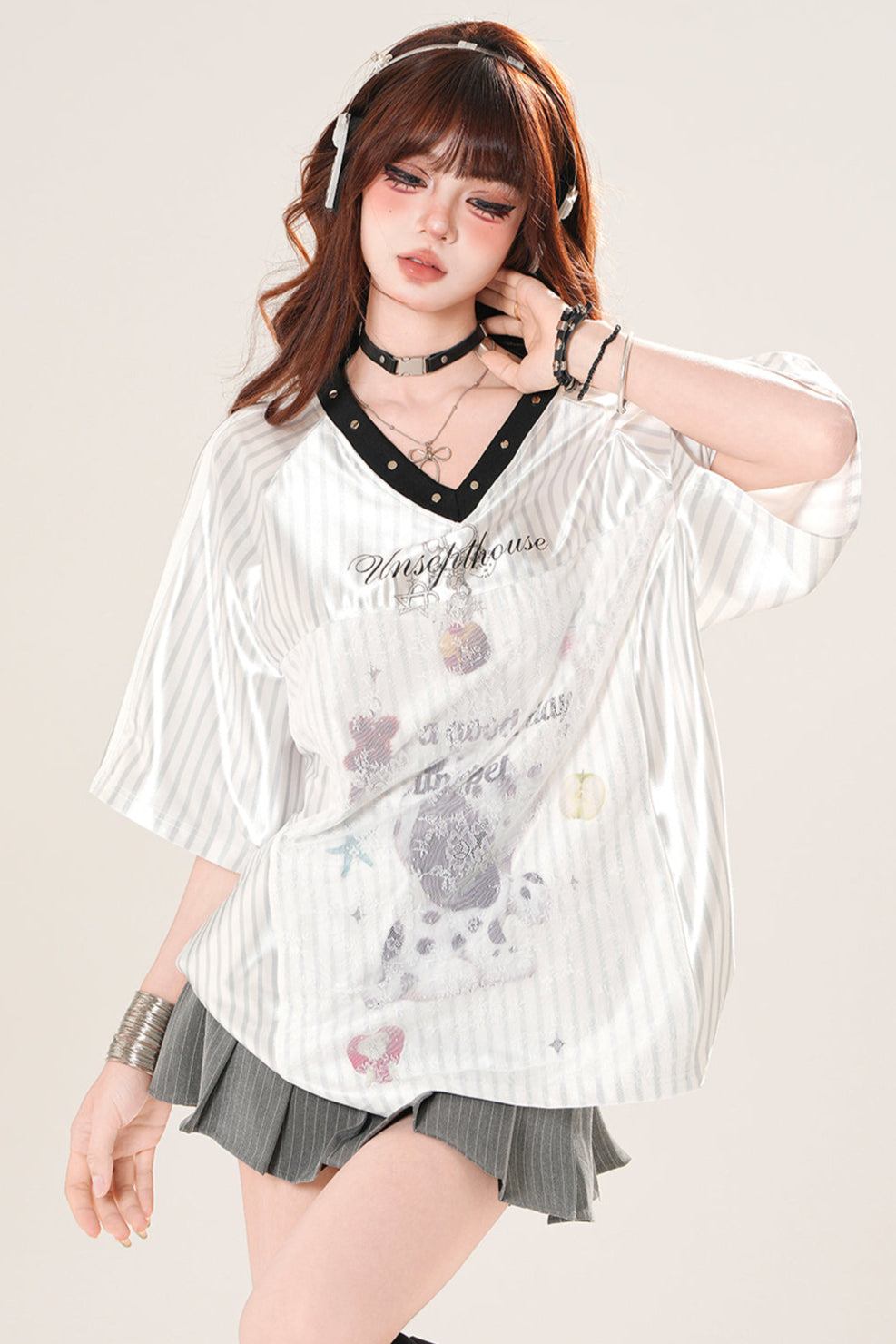 ❤スポーティーネックボーダースクエアショルダートップス❤