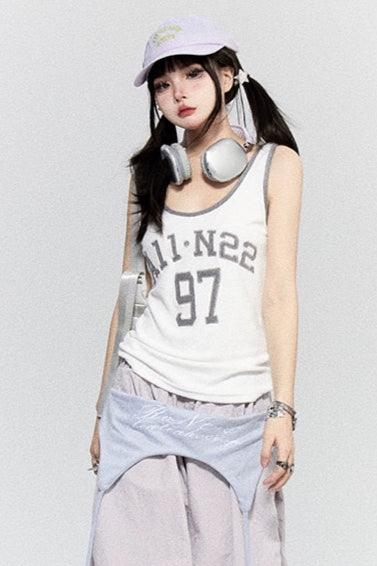 シアーボーダーラビットフードパーカー+ナンバーロゴタンクトップ