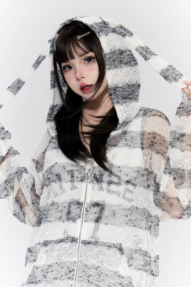 ❤シアーボーダーラビットフードトップス+ナンバーロゴタンクトップ❤