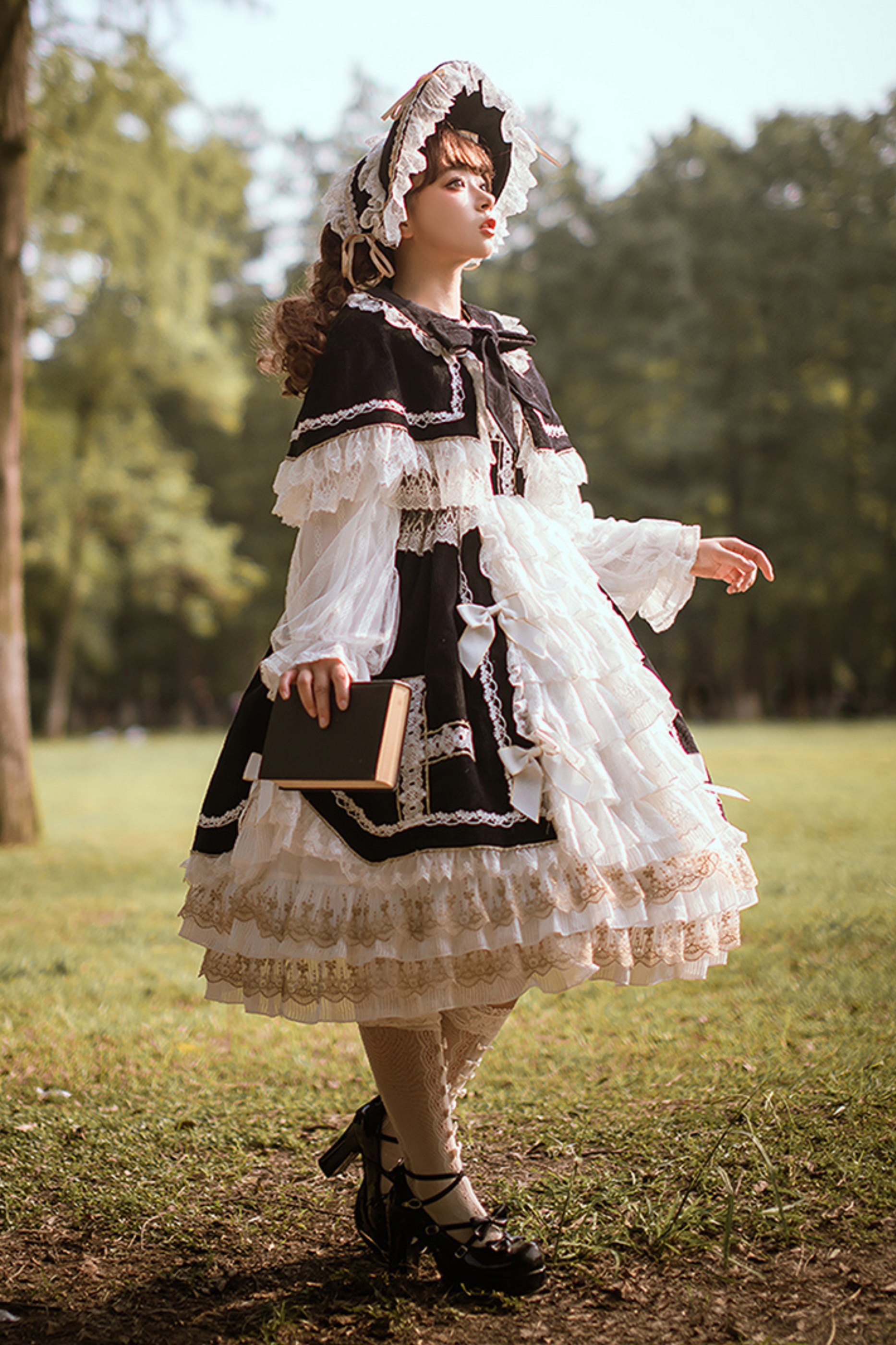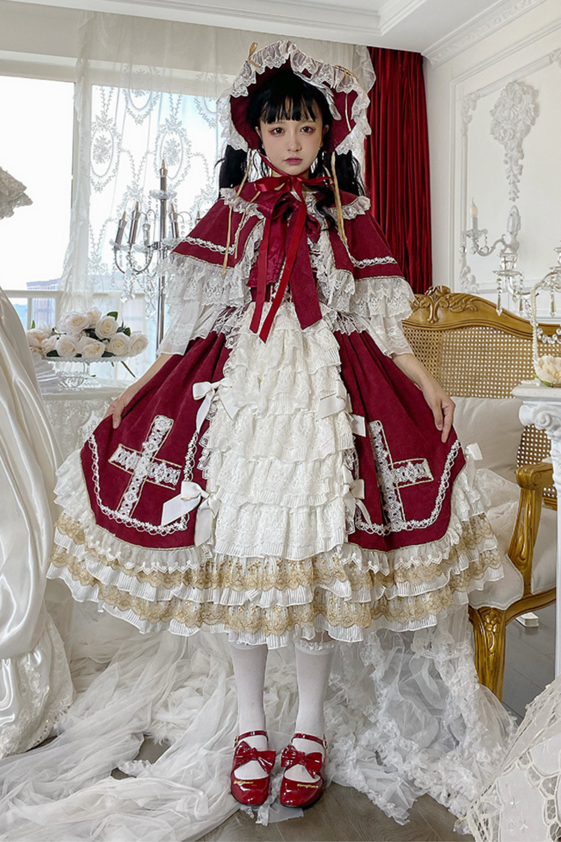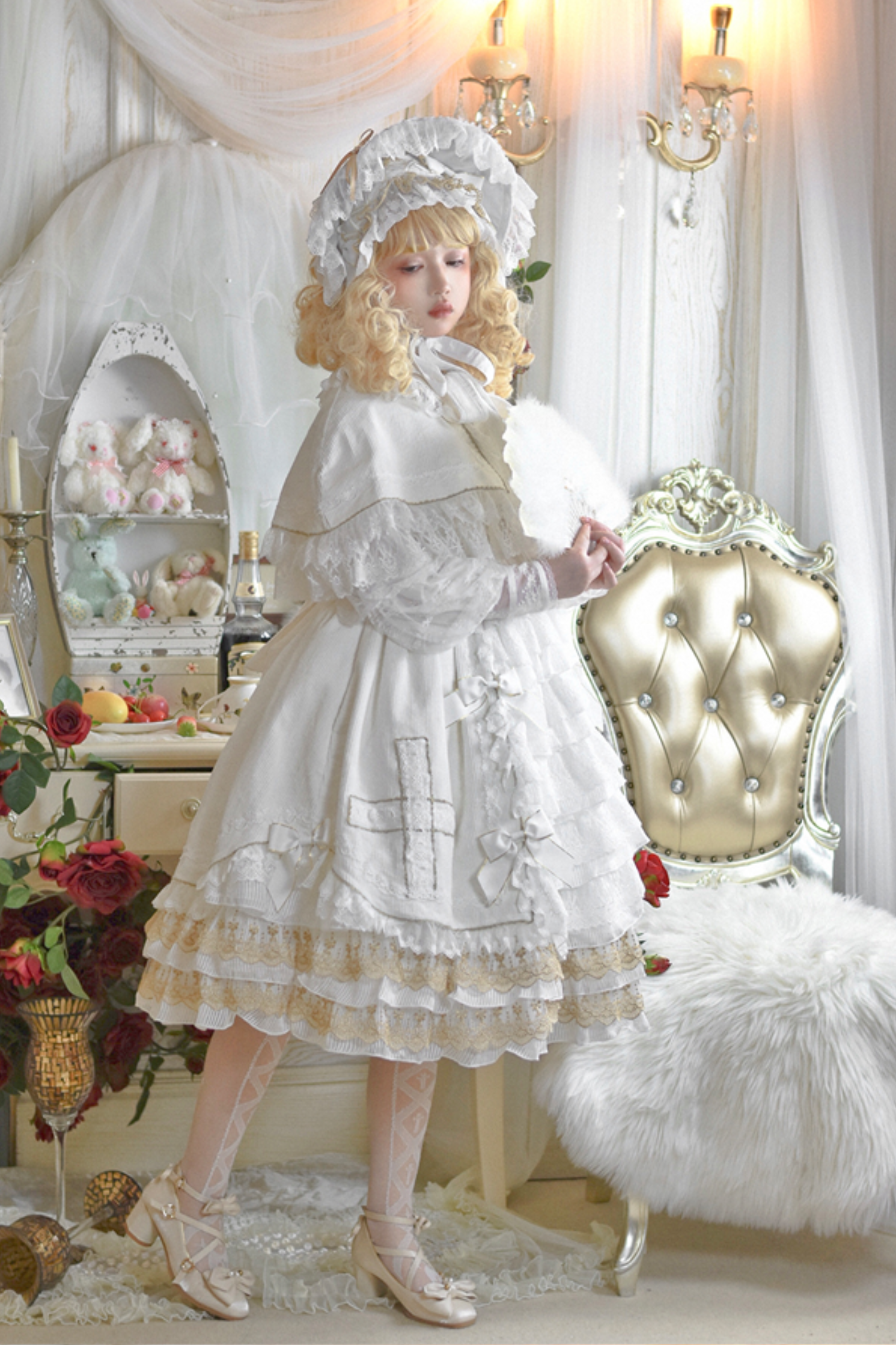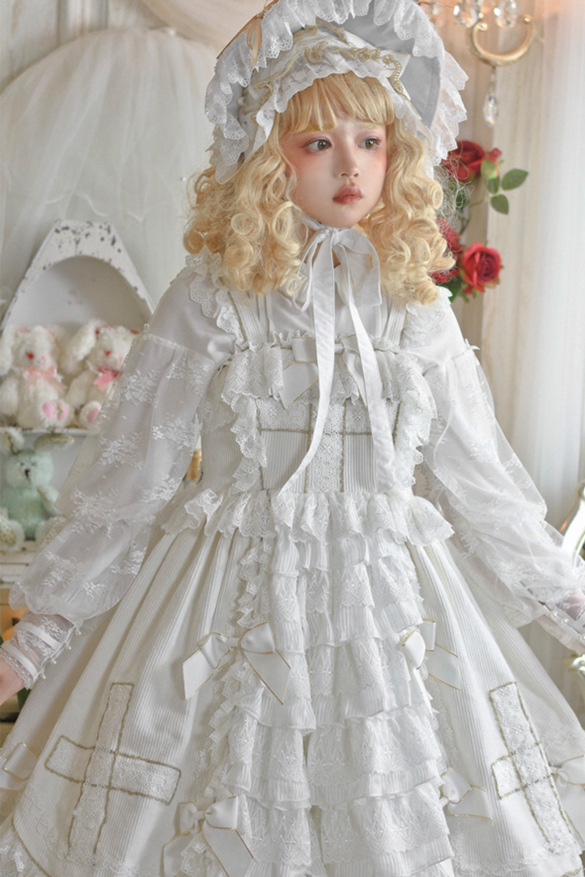 ゴシックドールレースジャンパースカート+ベイビーキャップ+ヘアバンド+ショール