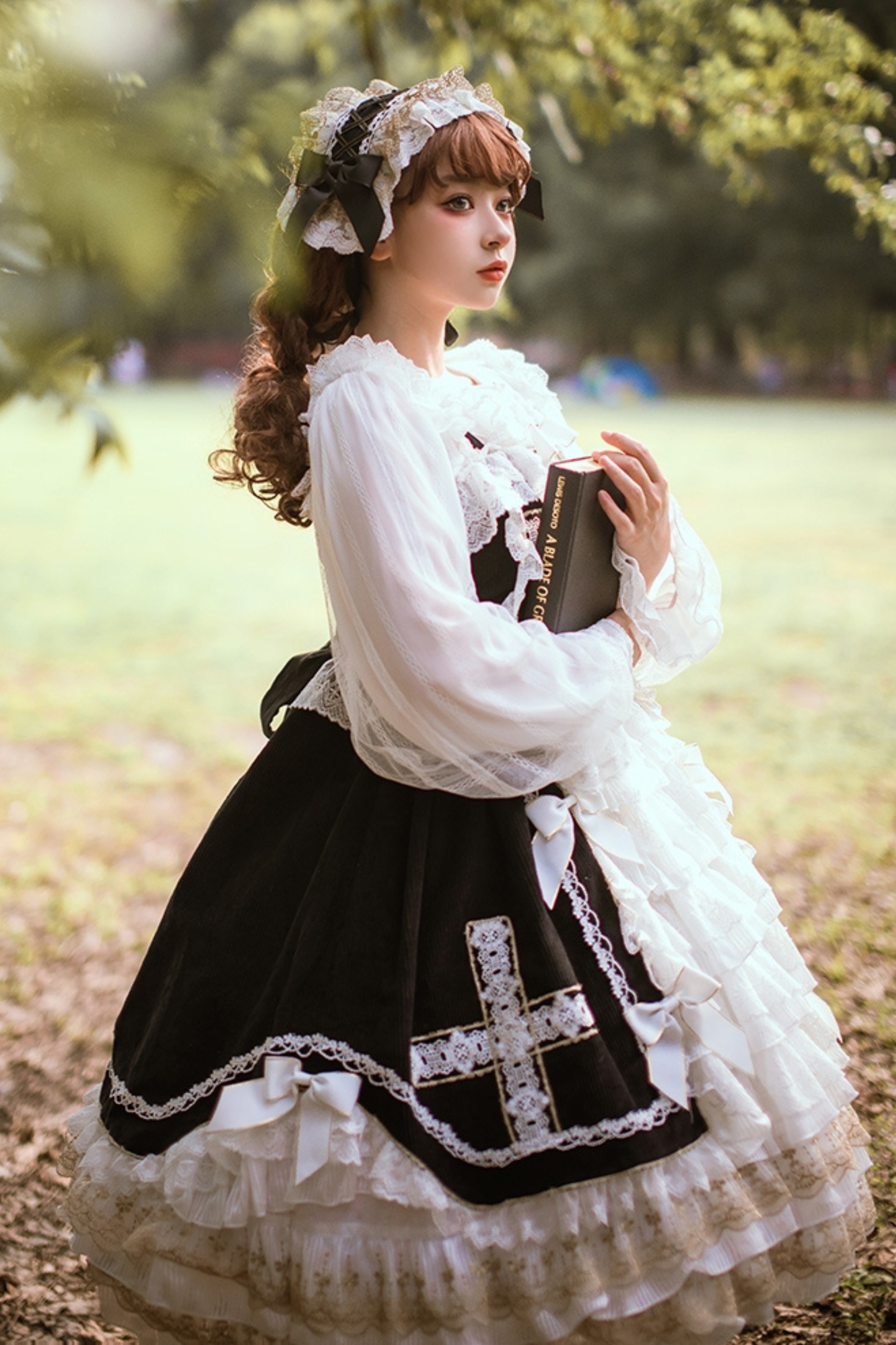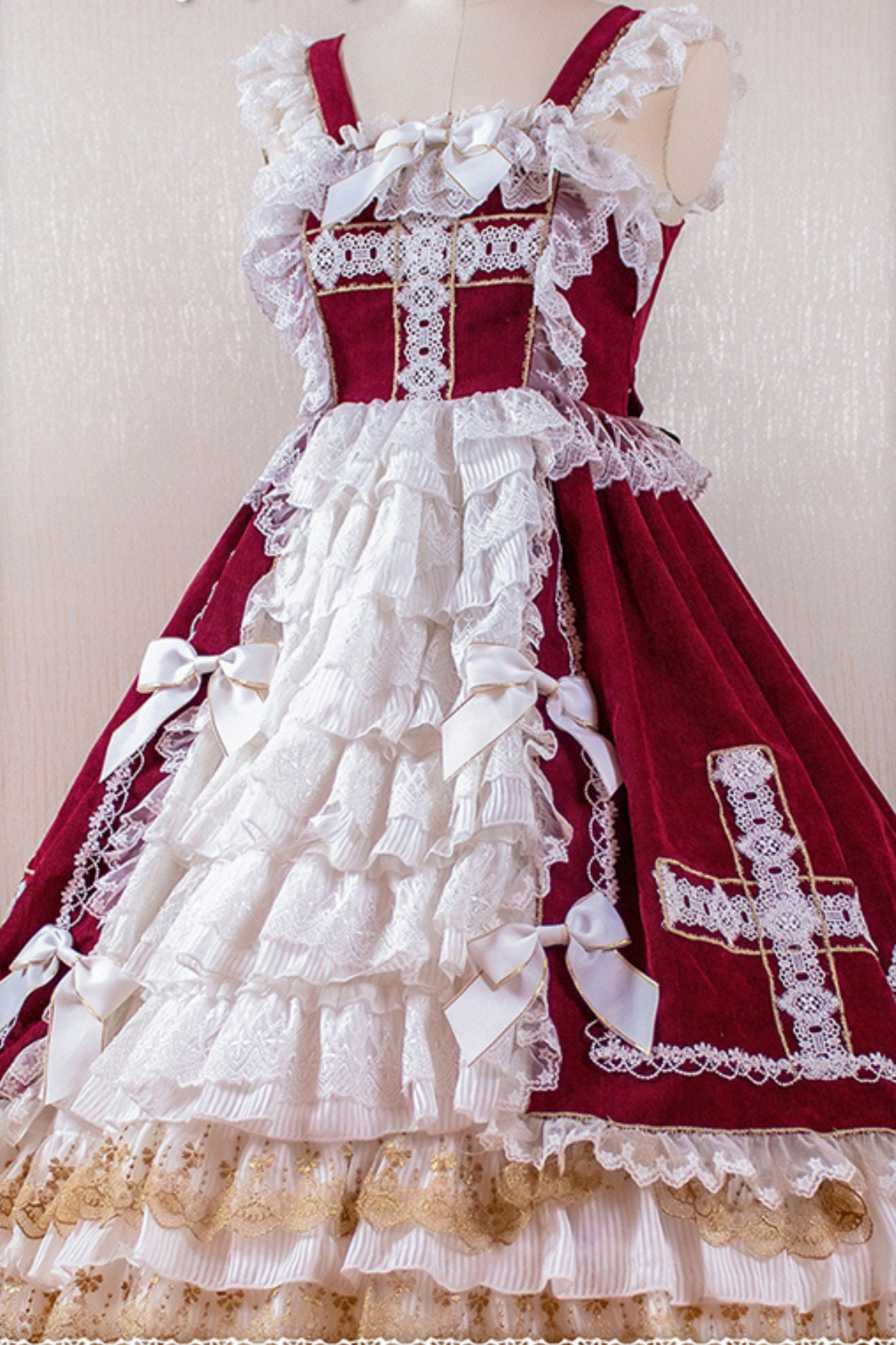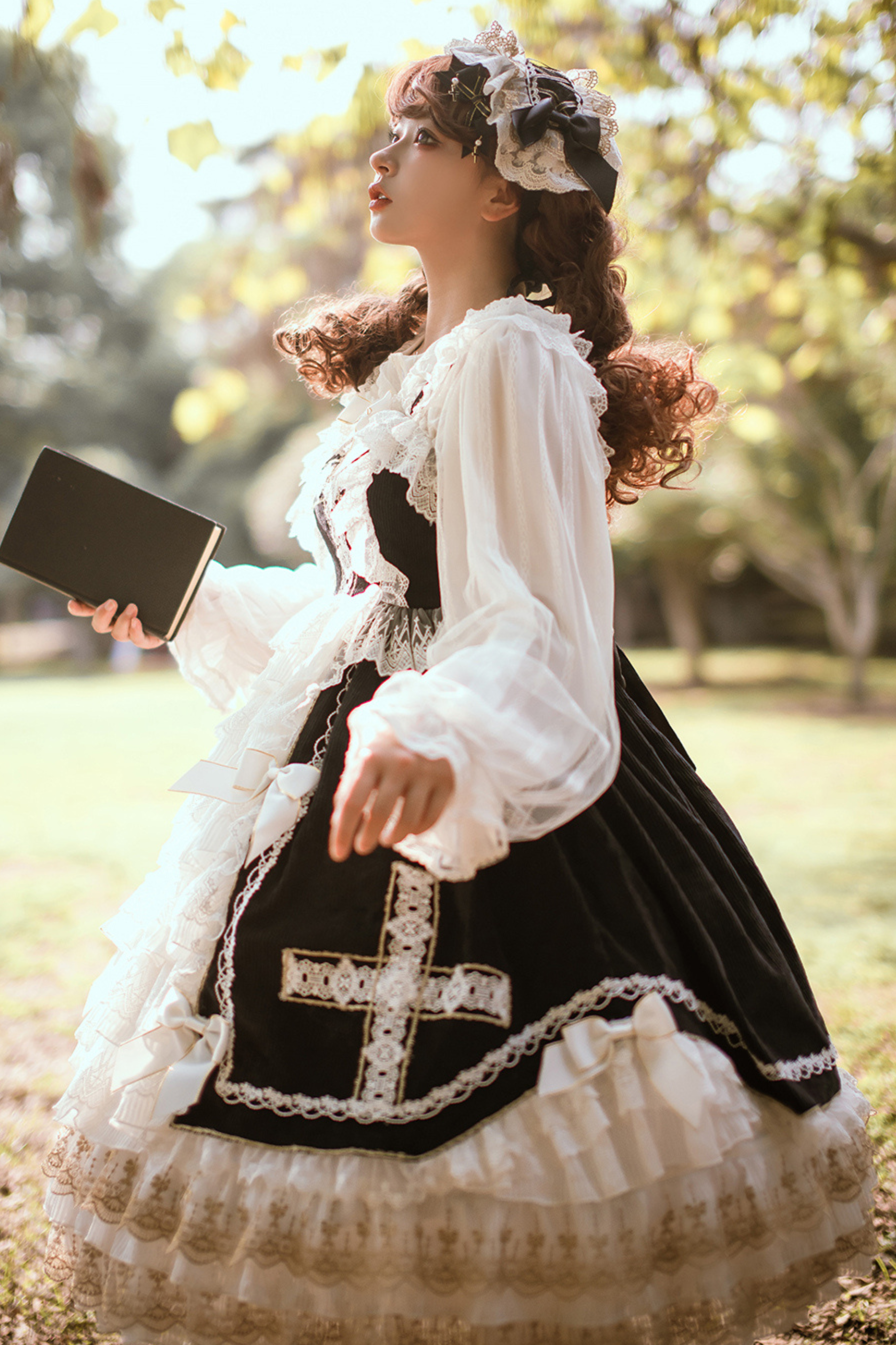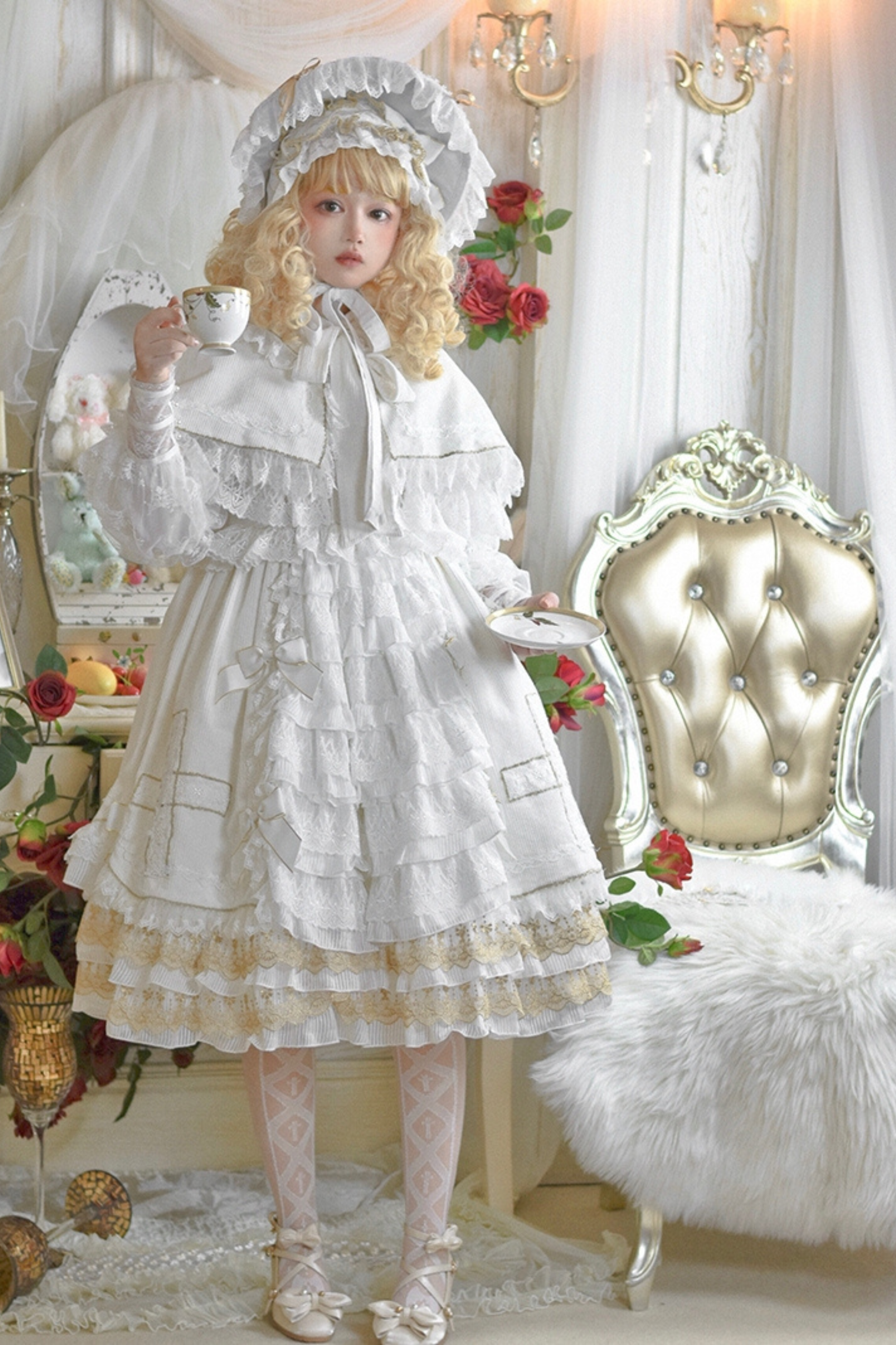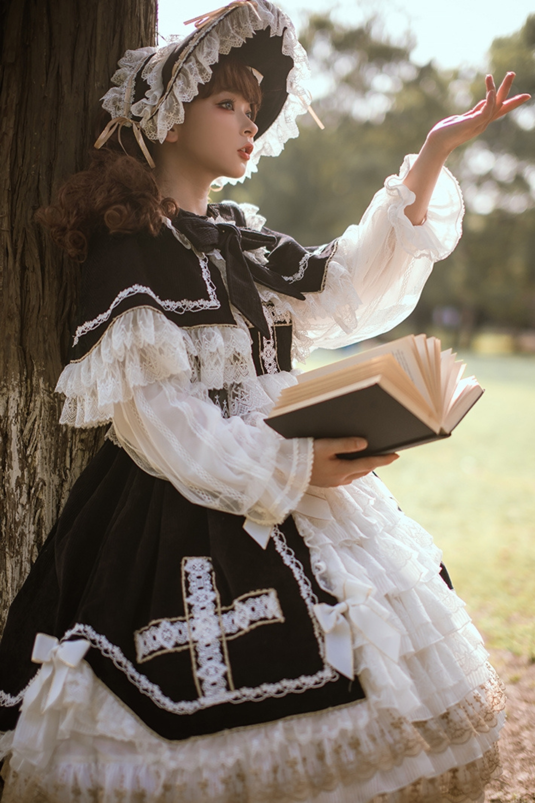 ゴシックドールレースジャンパースカート+ベイビーキャップ+ヘアバンド+ショール