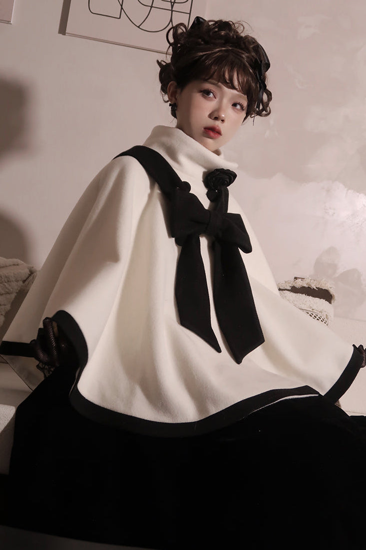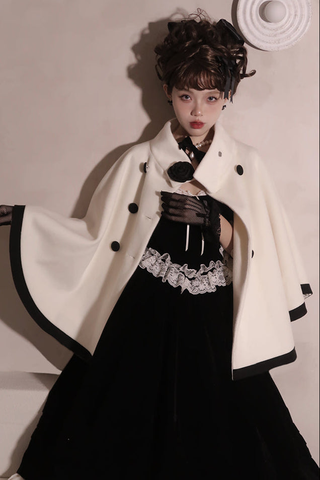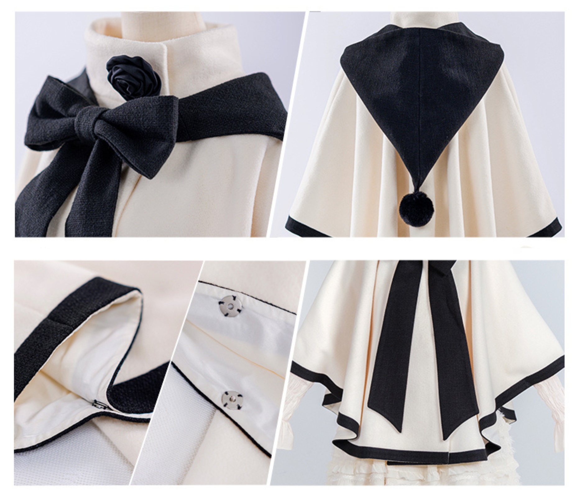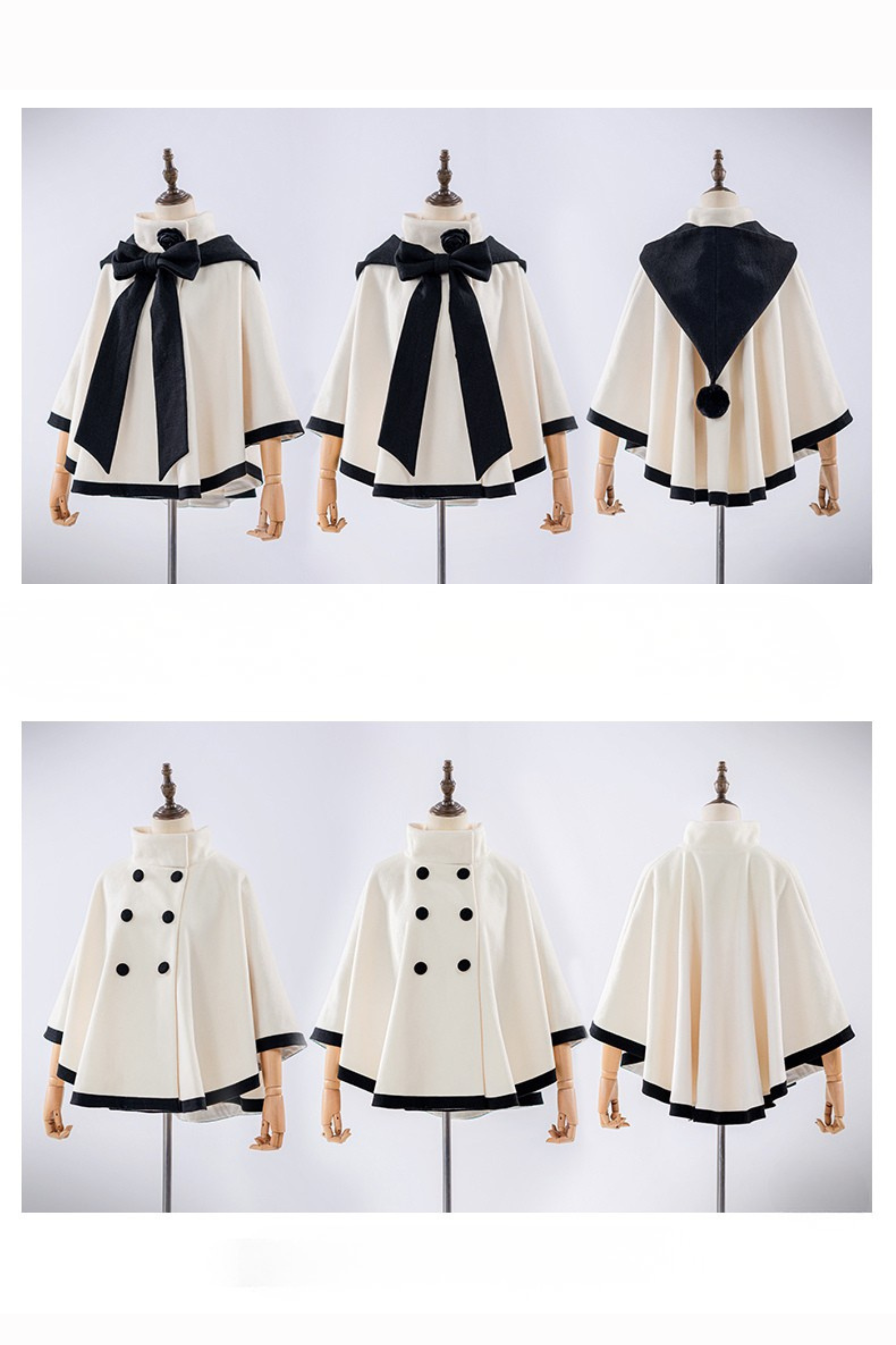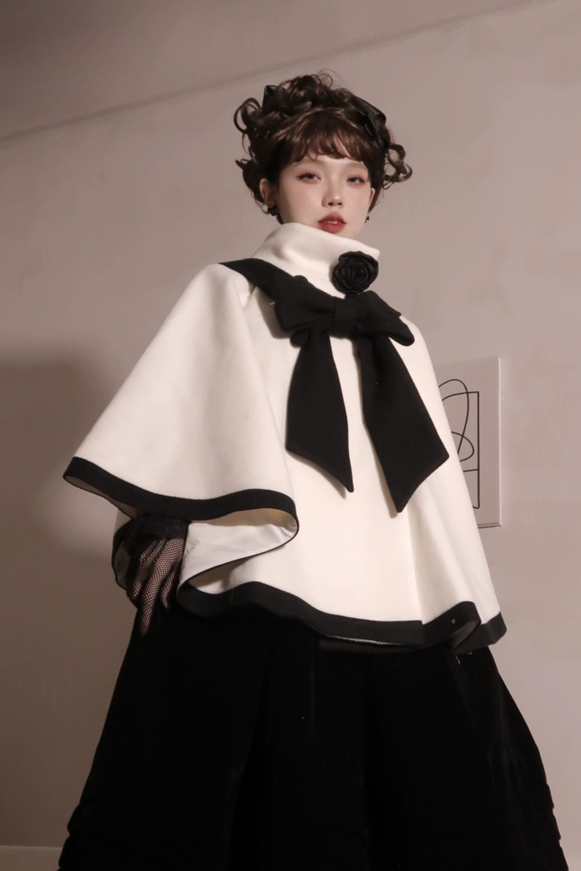 ケープコートにはフーディーリボンとローズブローチが付いています