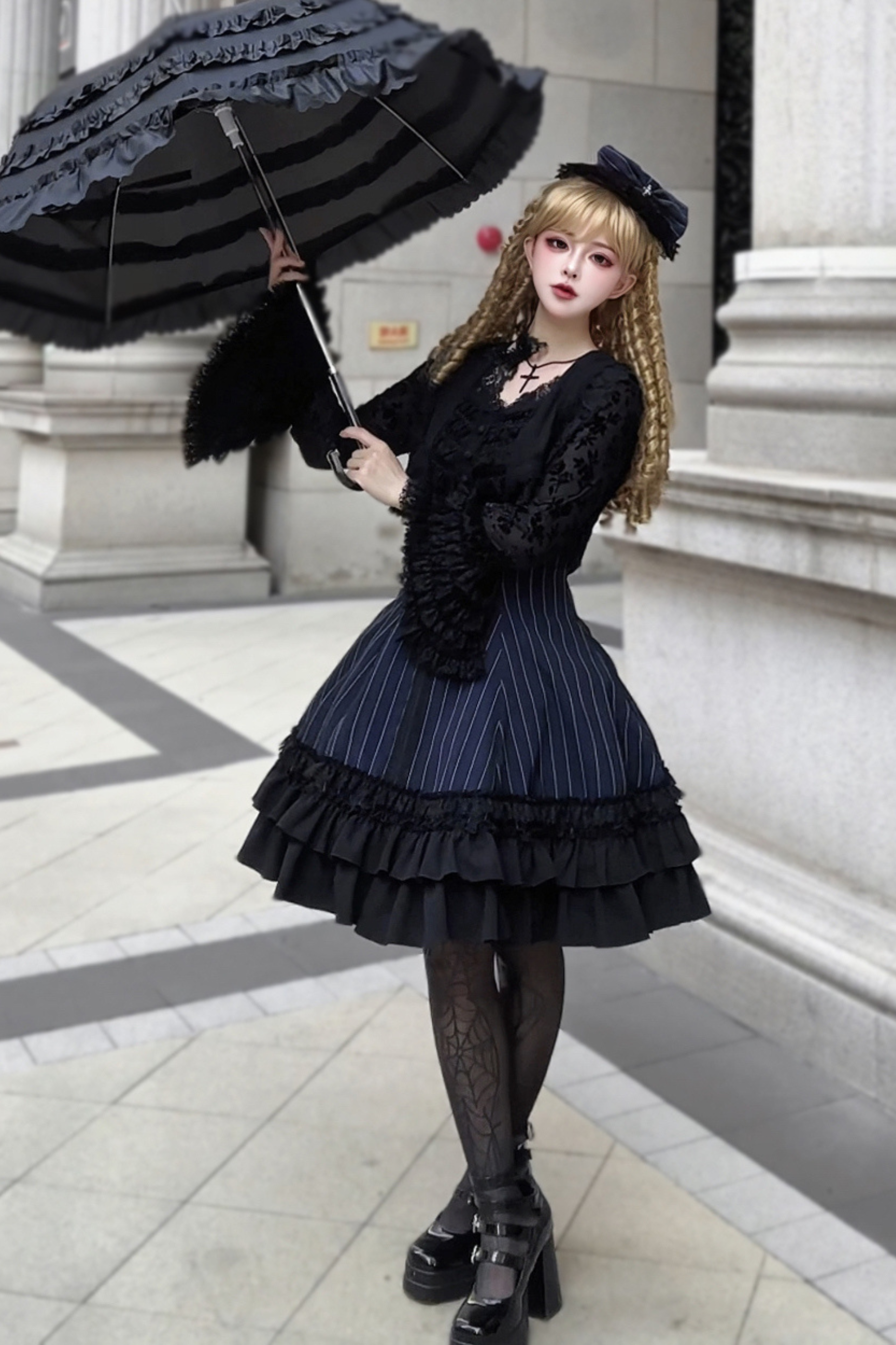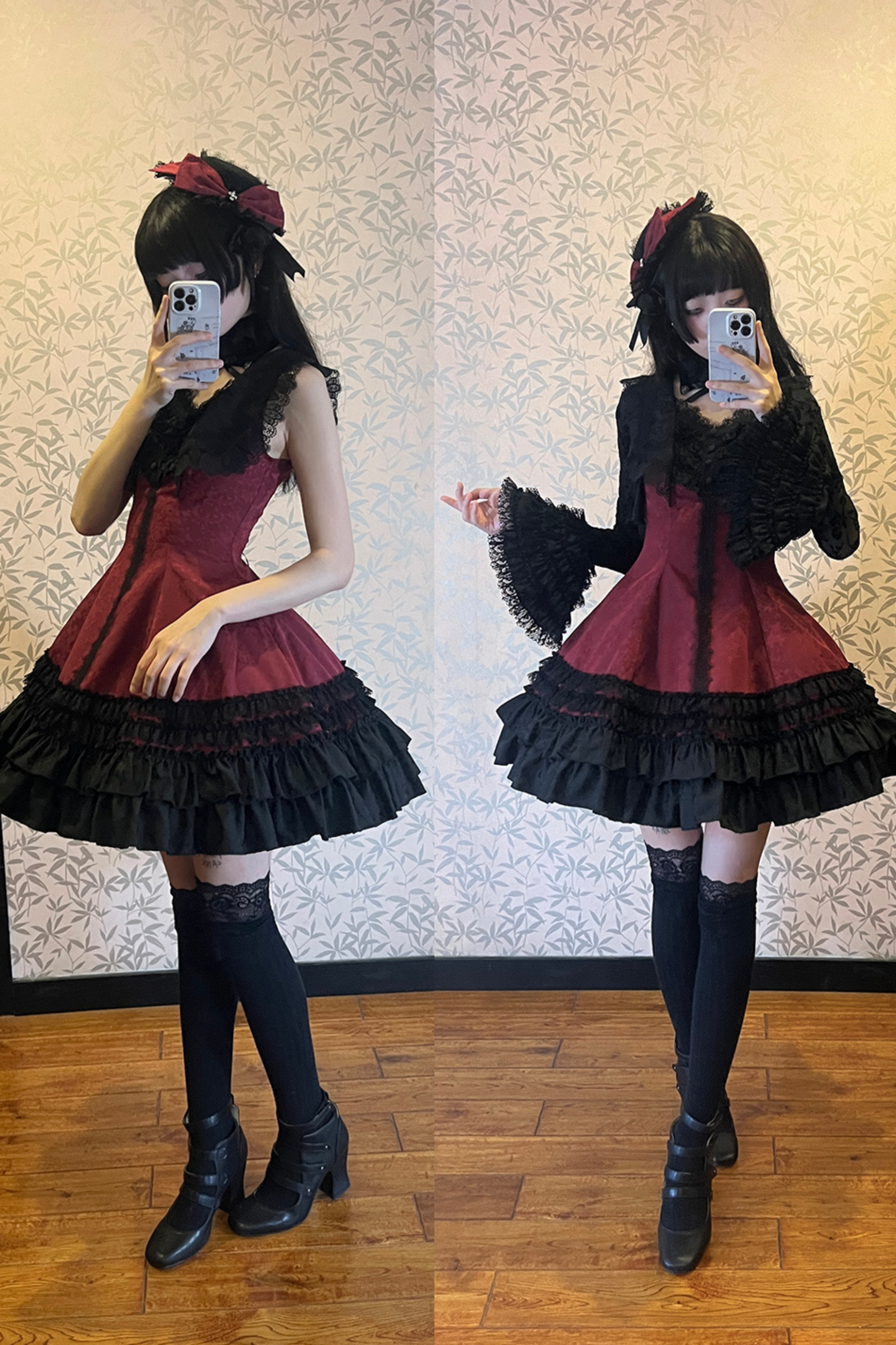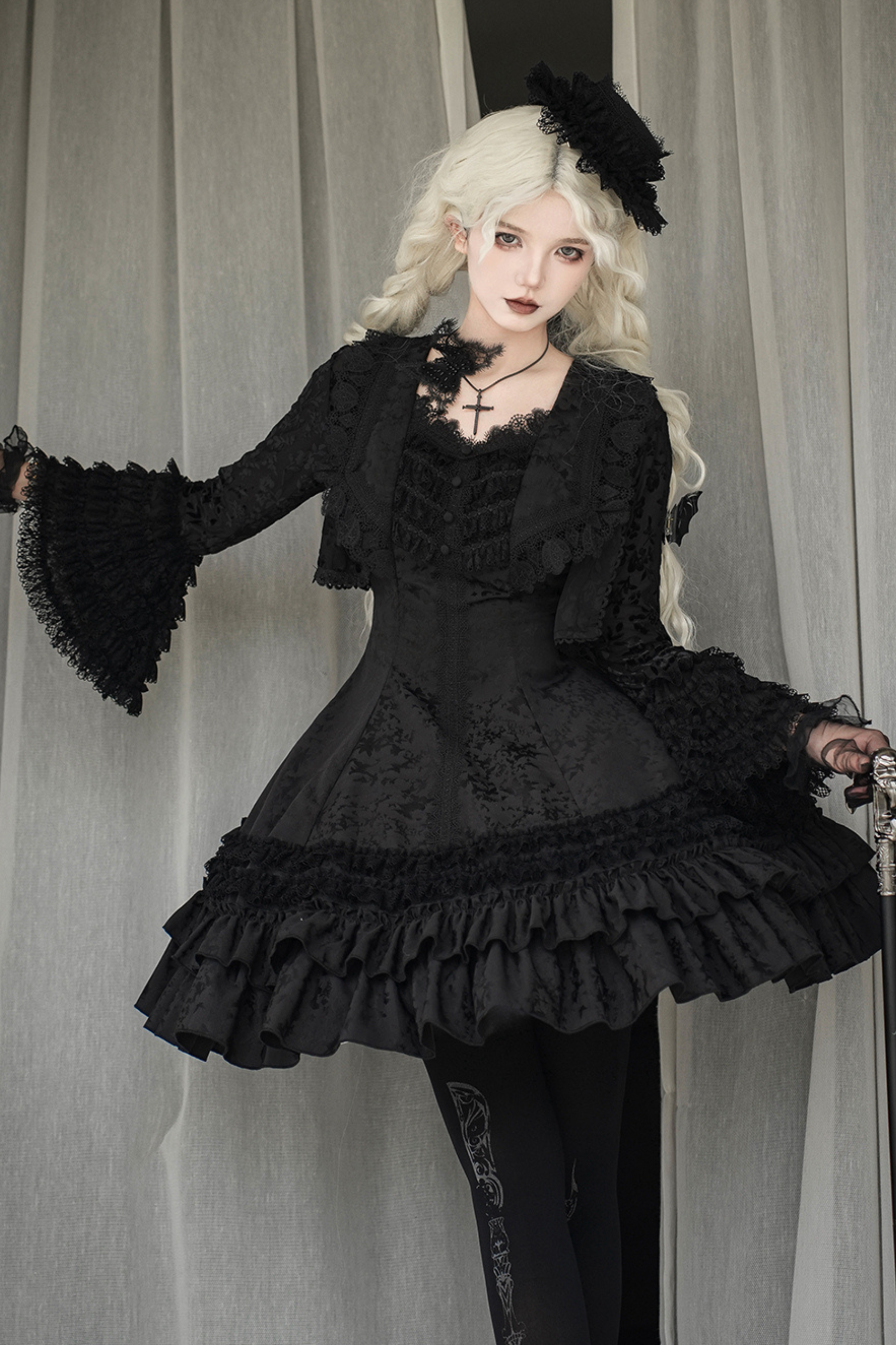 ❤ダークテーラースリムゴシックロリータドレス+アウター❤