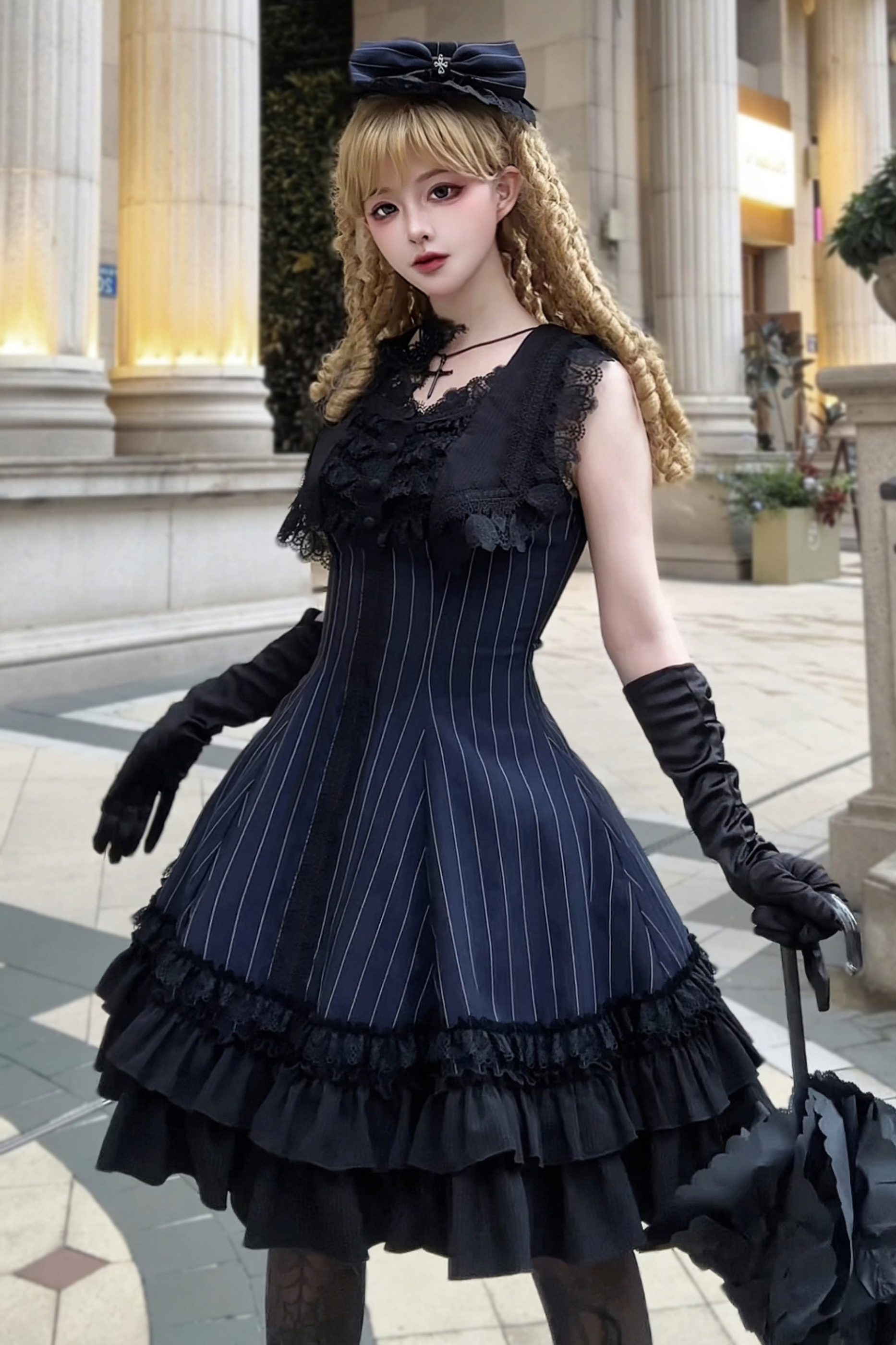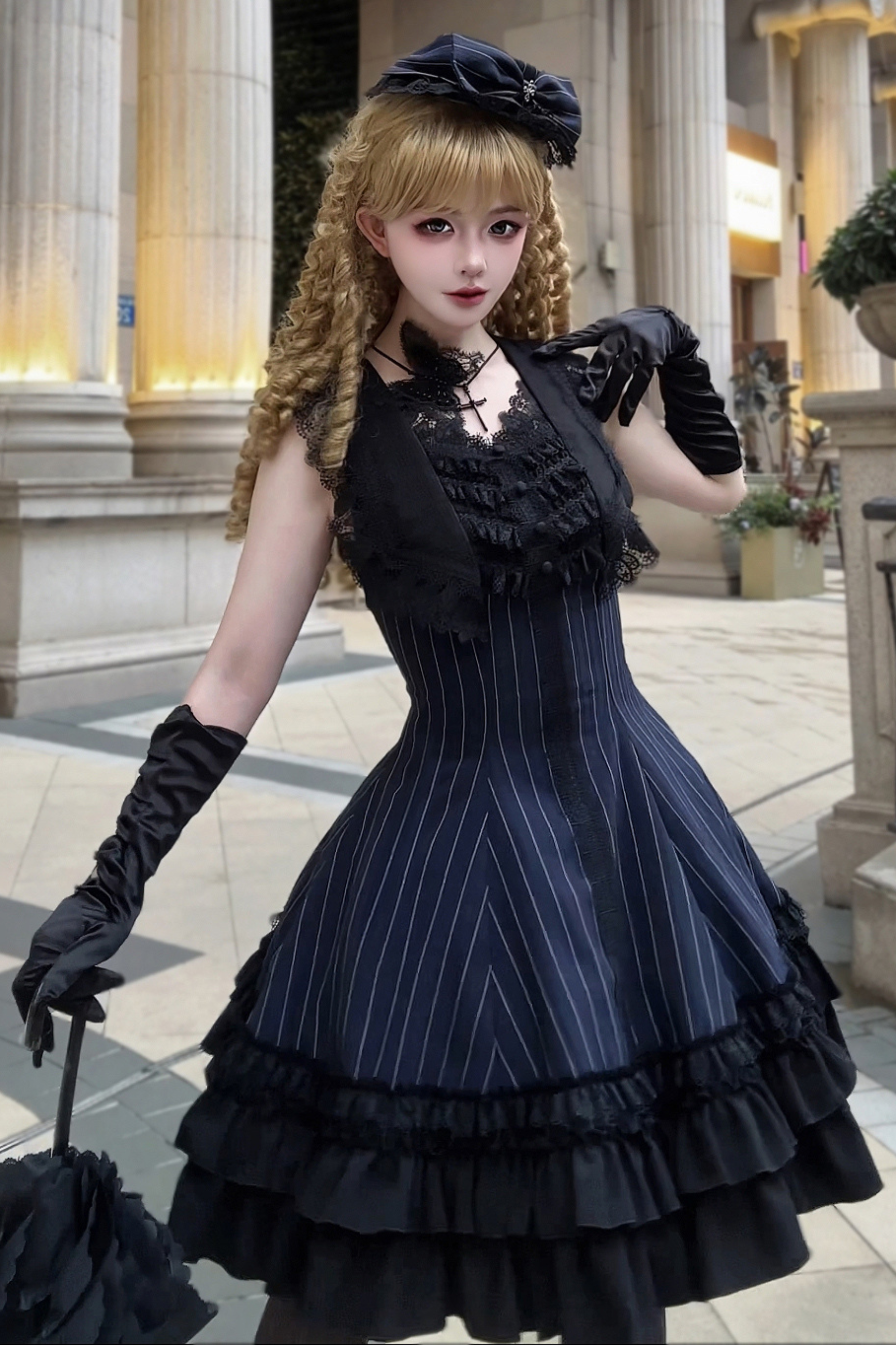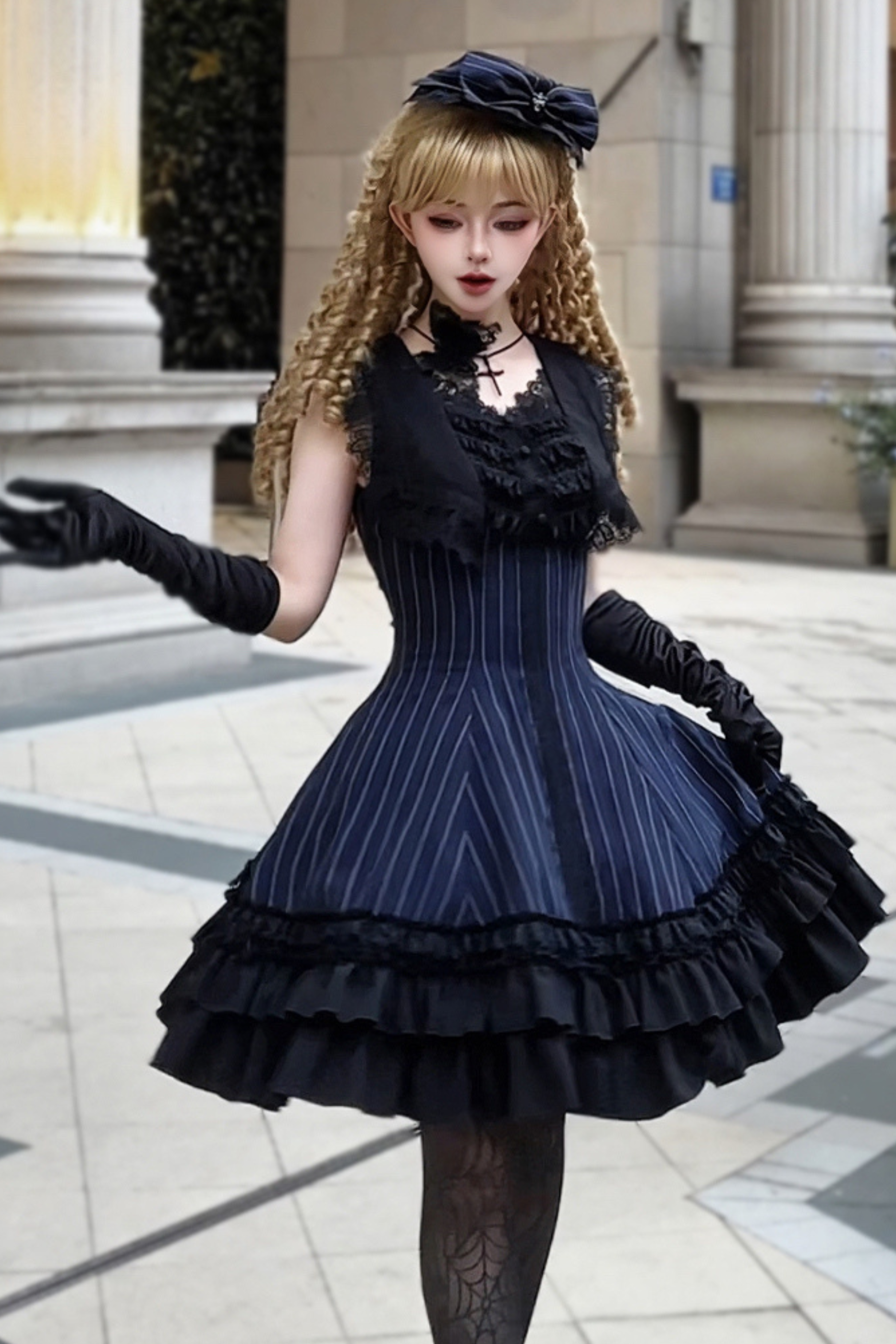 ❤ダークテーラースリムゴシックロリータドレス+アウター❤