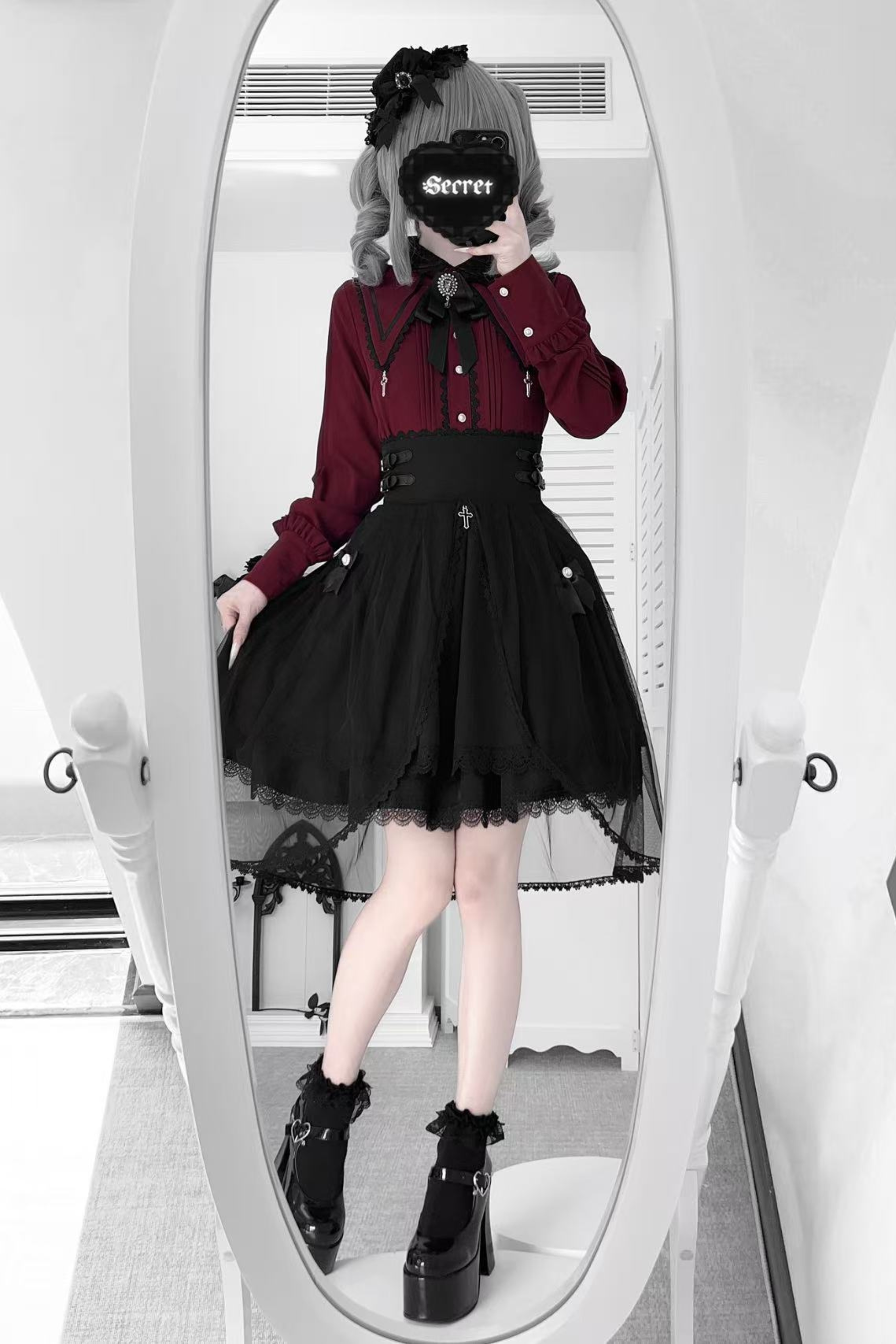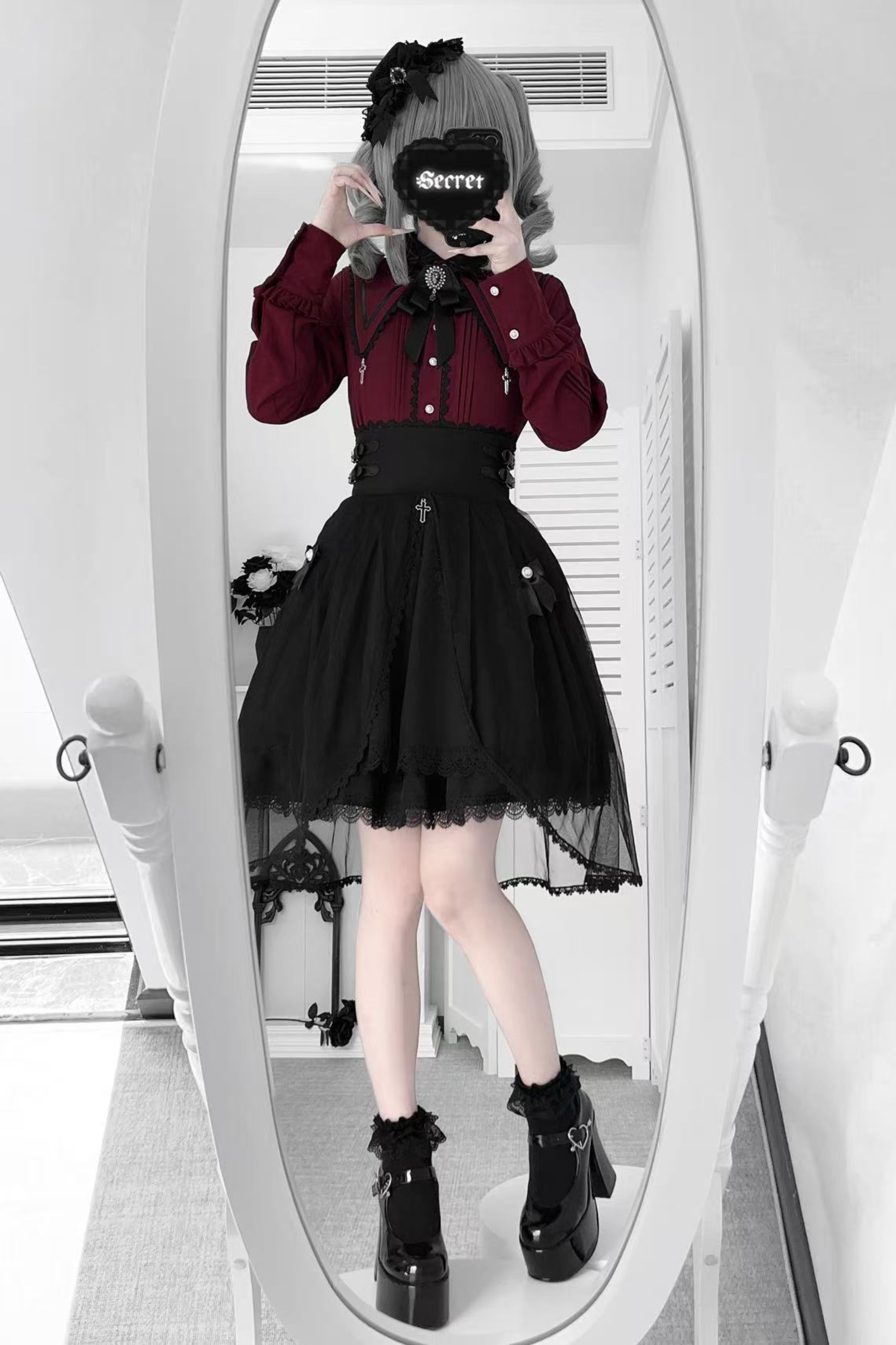 ❤ダークフレンチレースシャツ+スカート❤