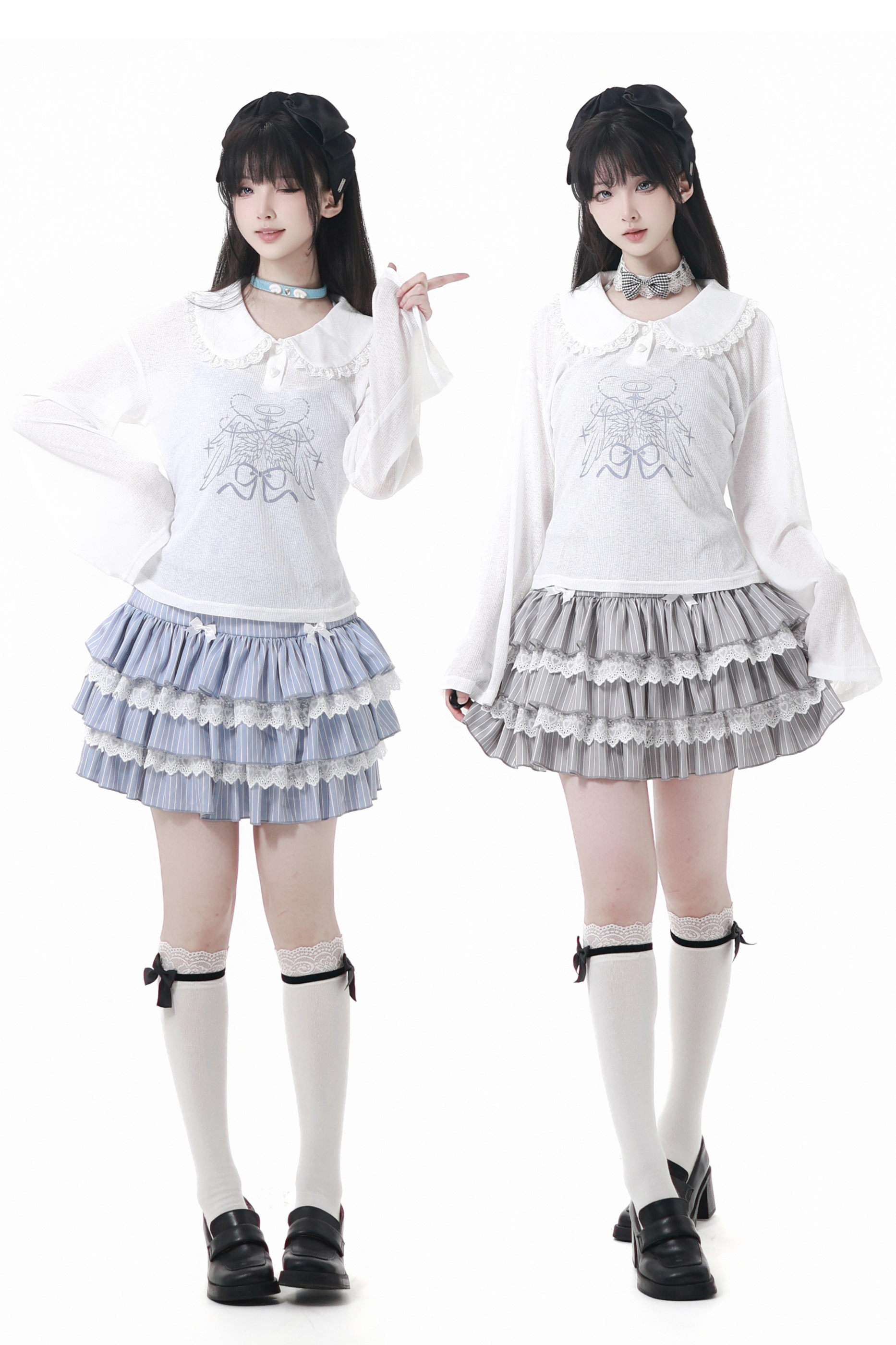 ❤スモックサスペンダー+ドールカラートップス+ケーキスカート❤
