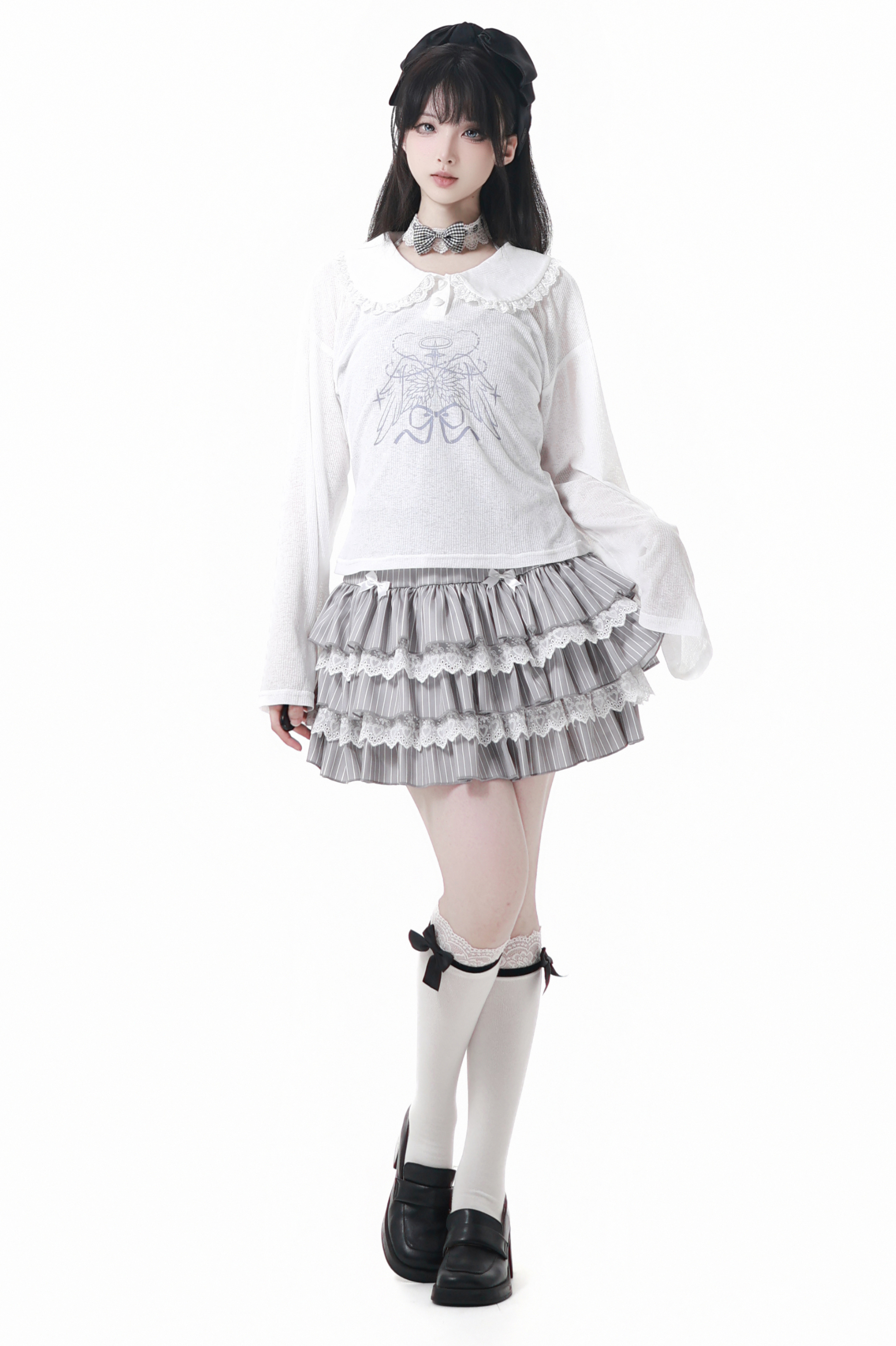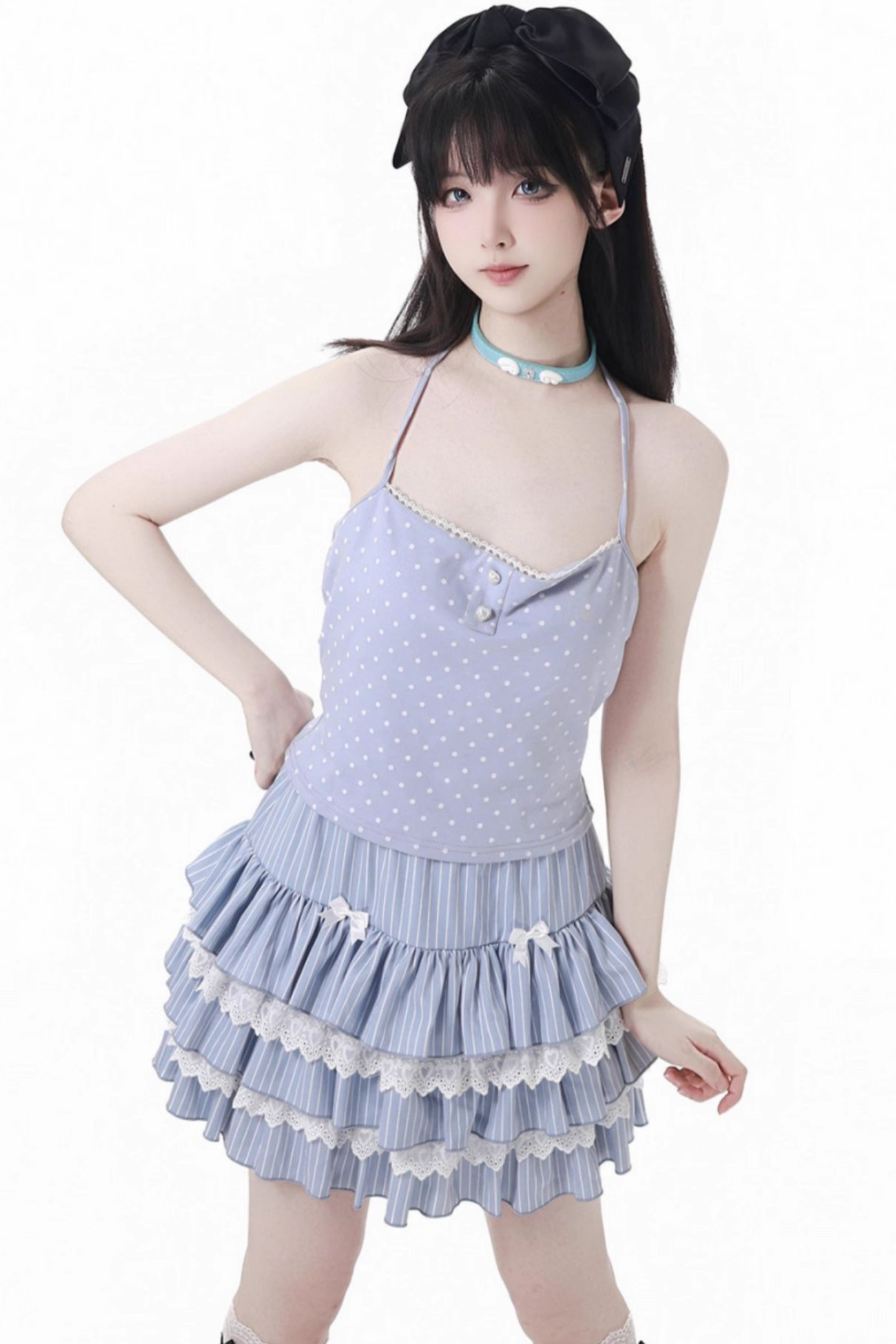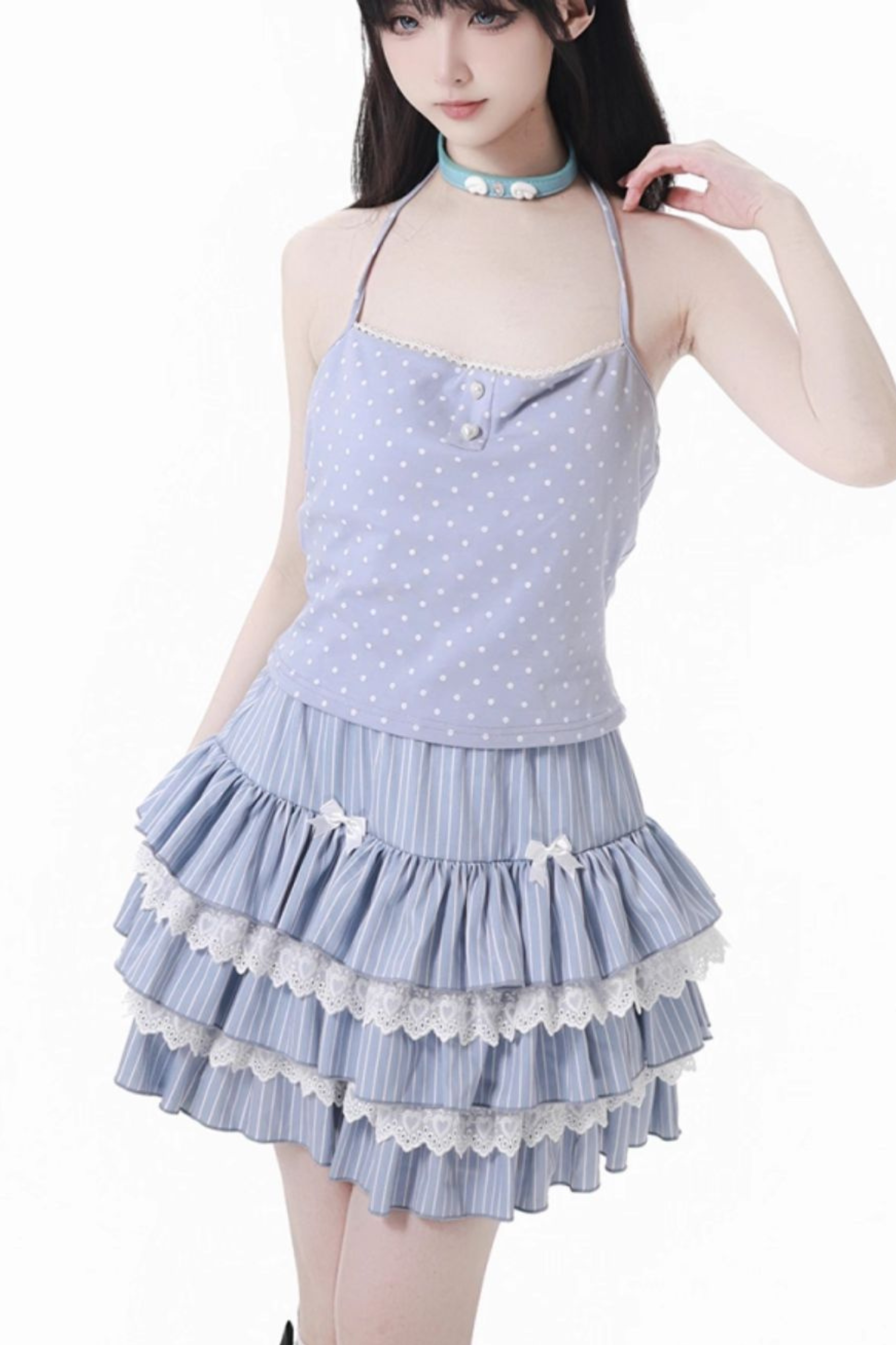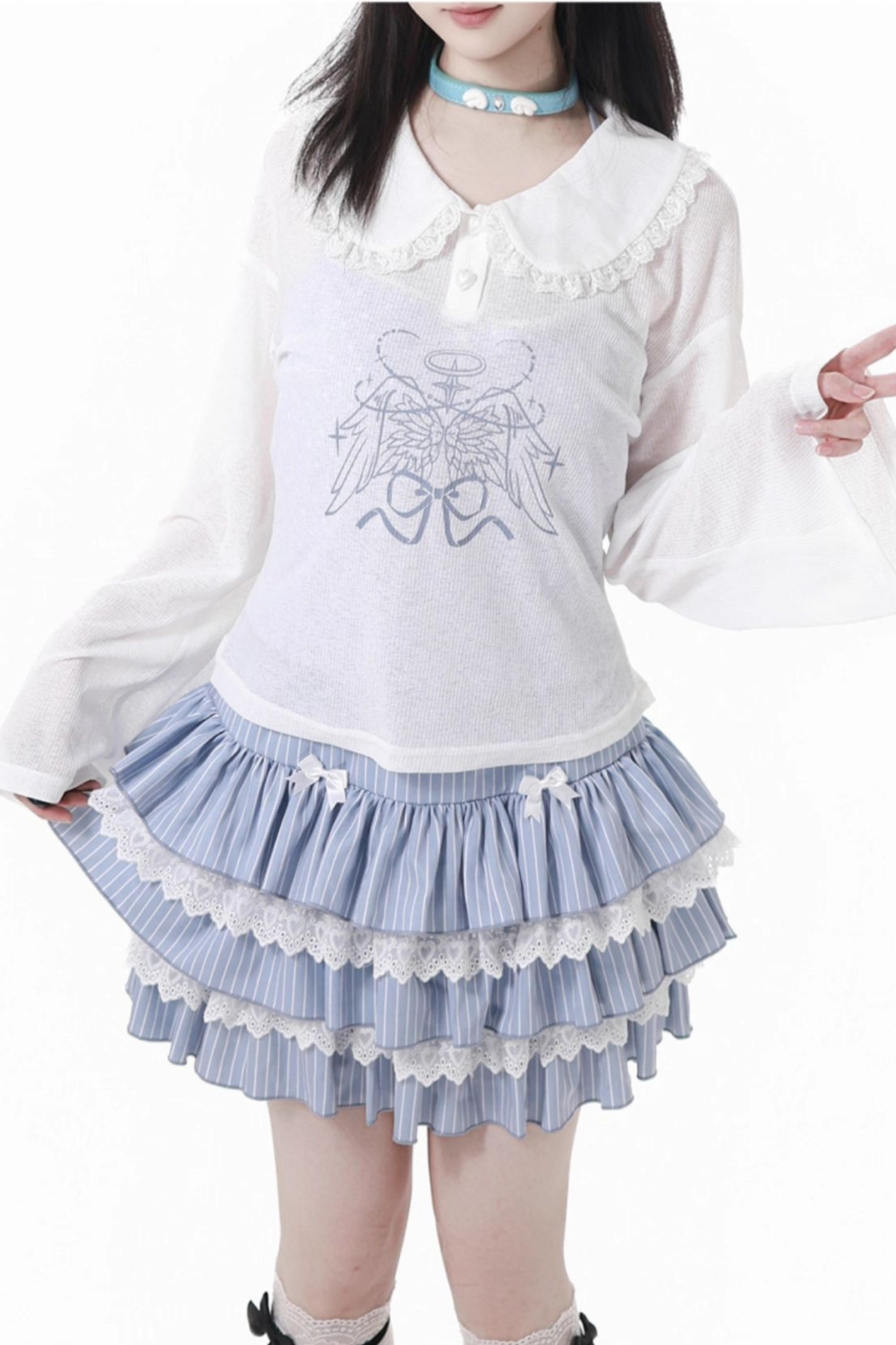 スモックサスペンダー+ドールカラートップス+ケーキスカート
