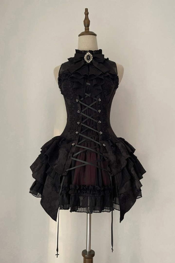 ❤︎【12月26日予約締切】witch's conditionゴシックロリータジュエルリボンビスチェドレス+フルセット❤︎                                                ⚠️人気商品のためお届けに5-6ヶ月ほどかかってしまう場合がございます