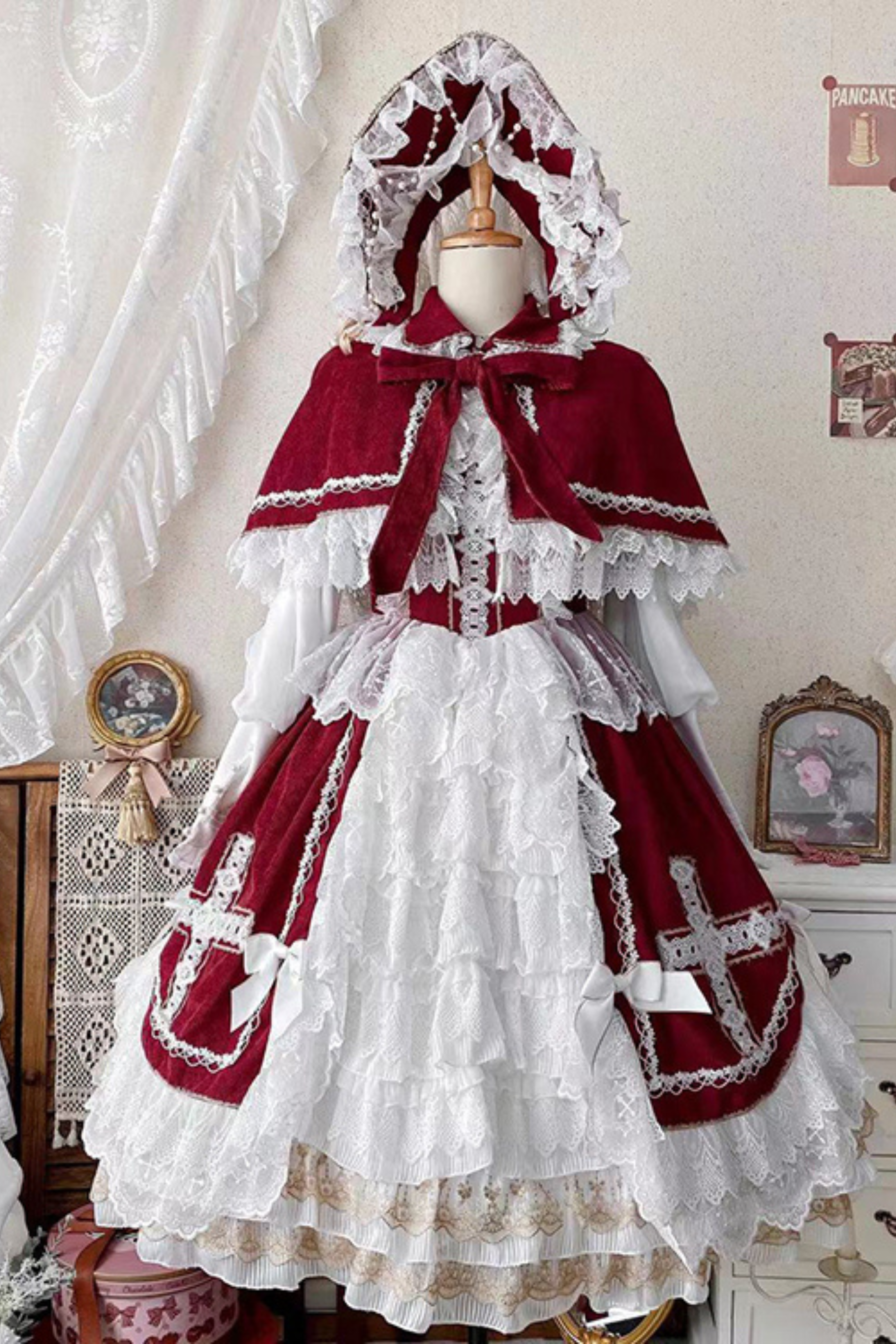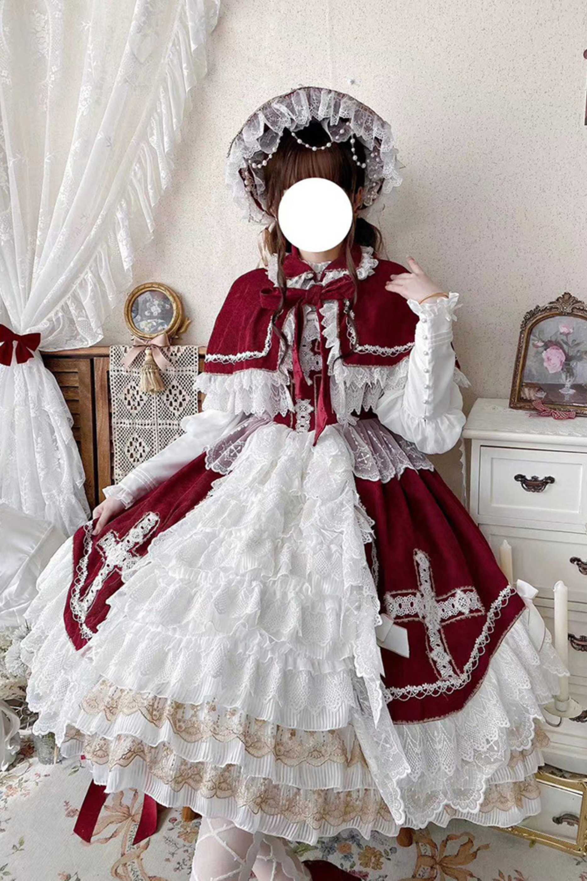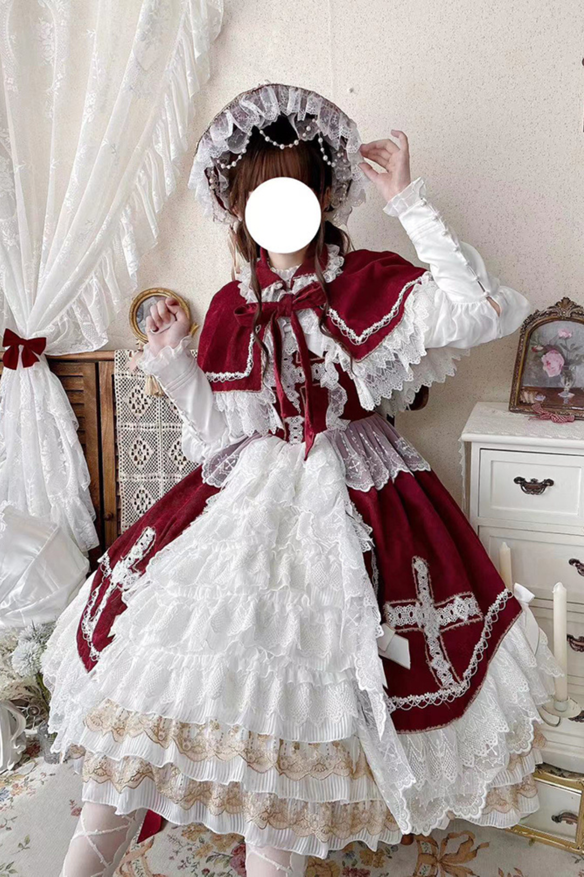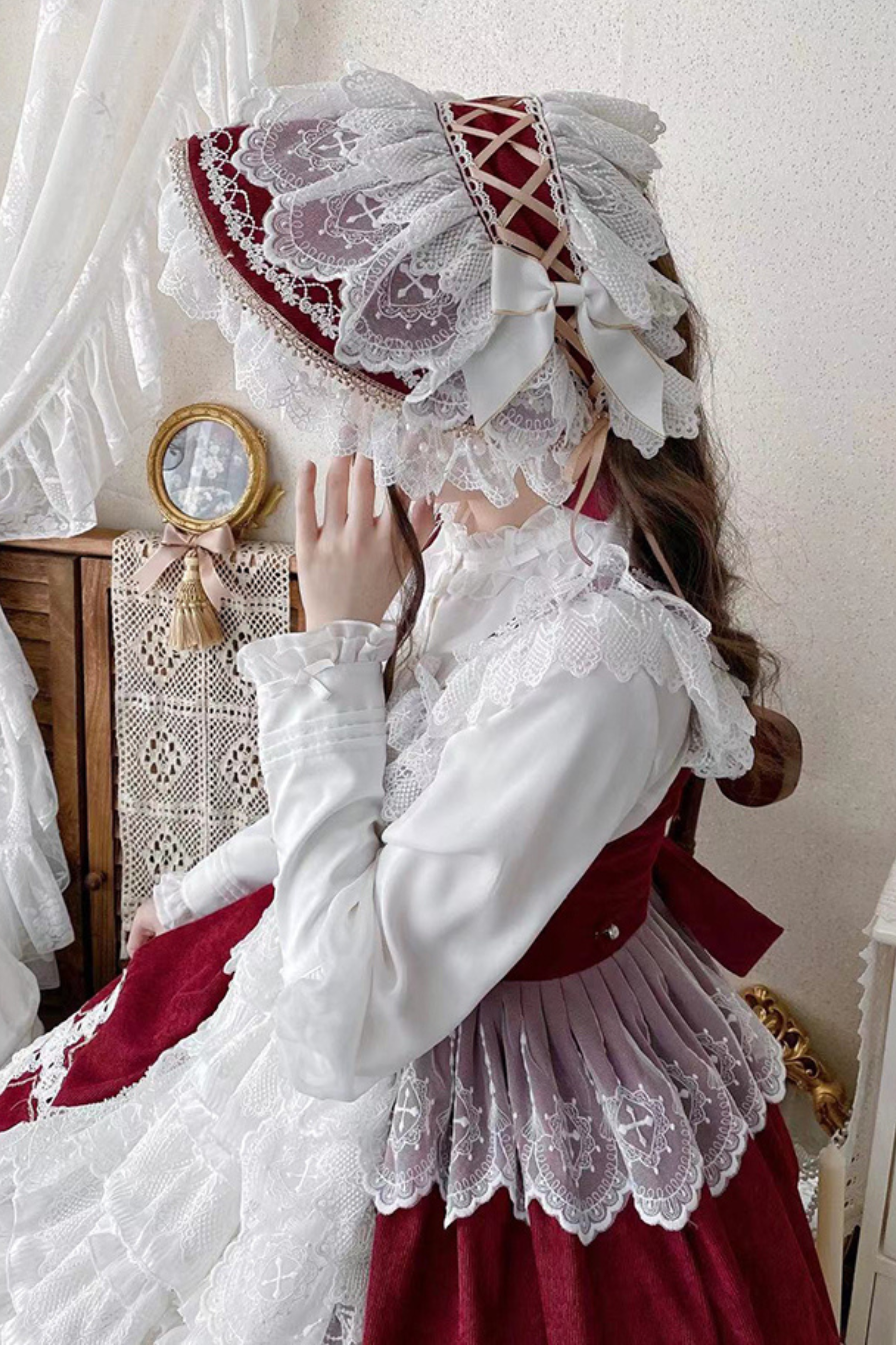 ゴシックドールレースジャンパースカート+ボンネット+ショール