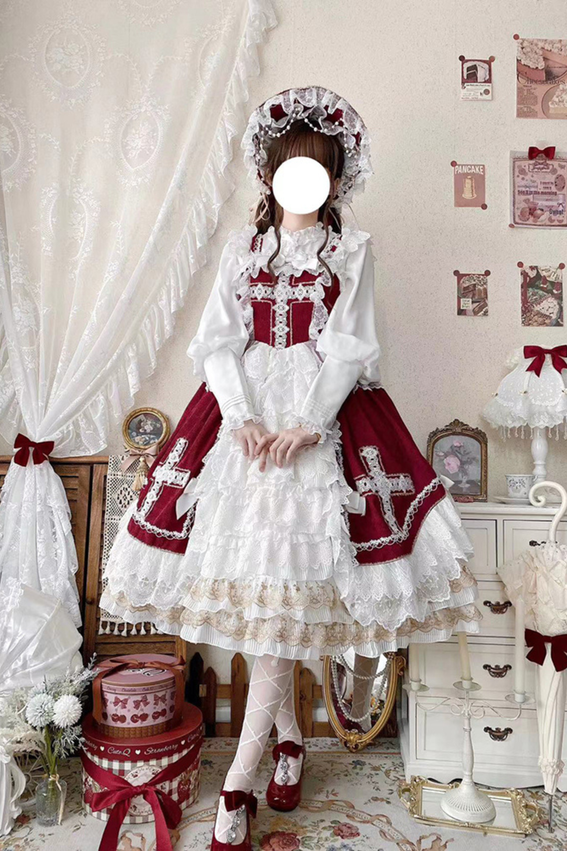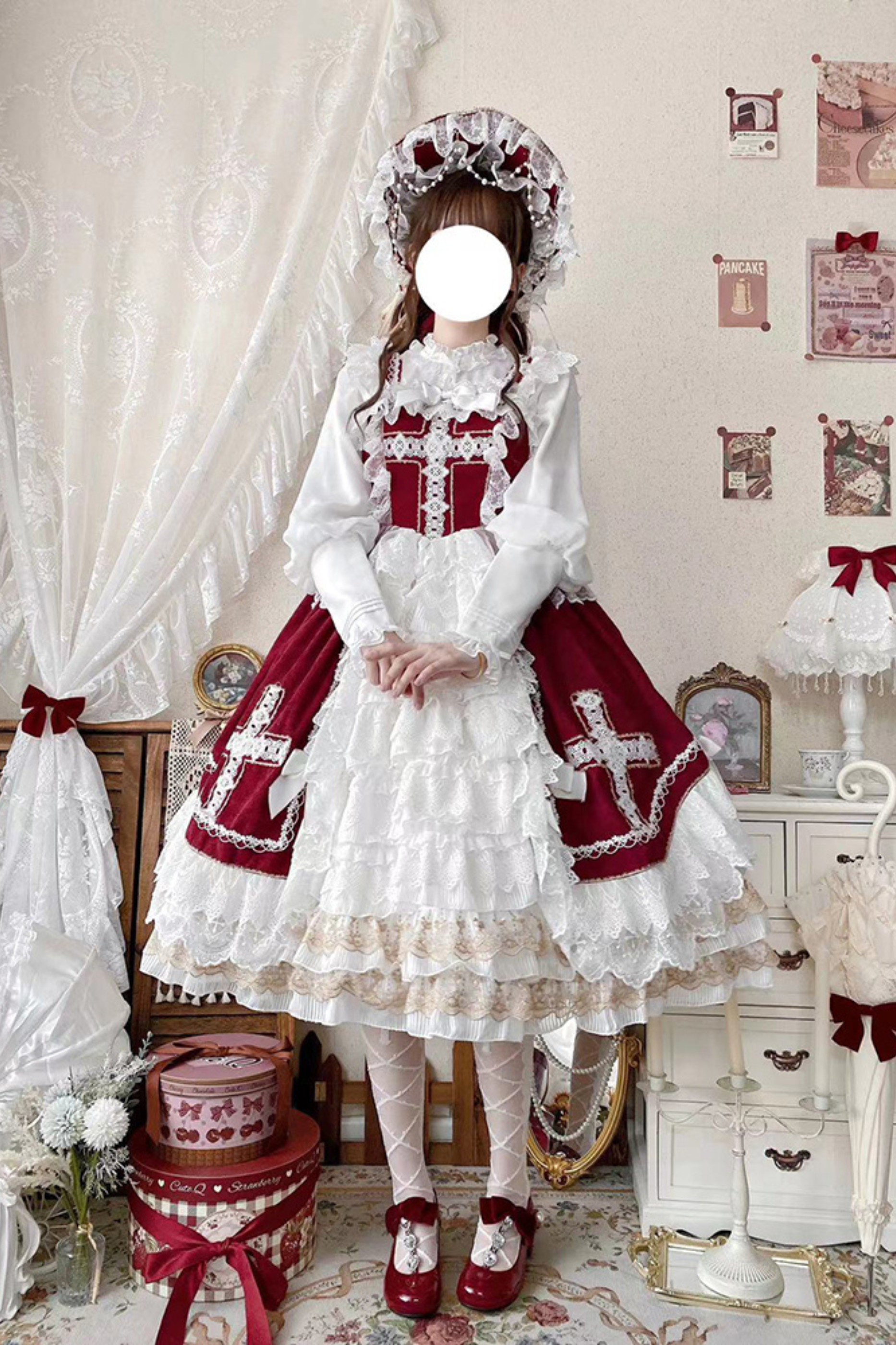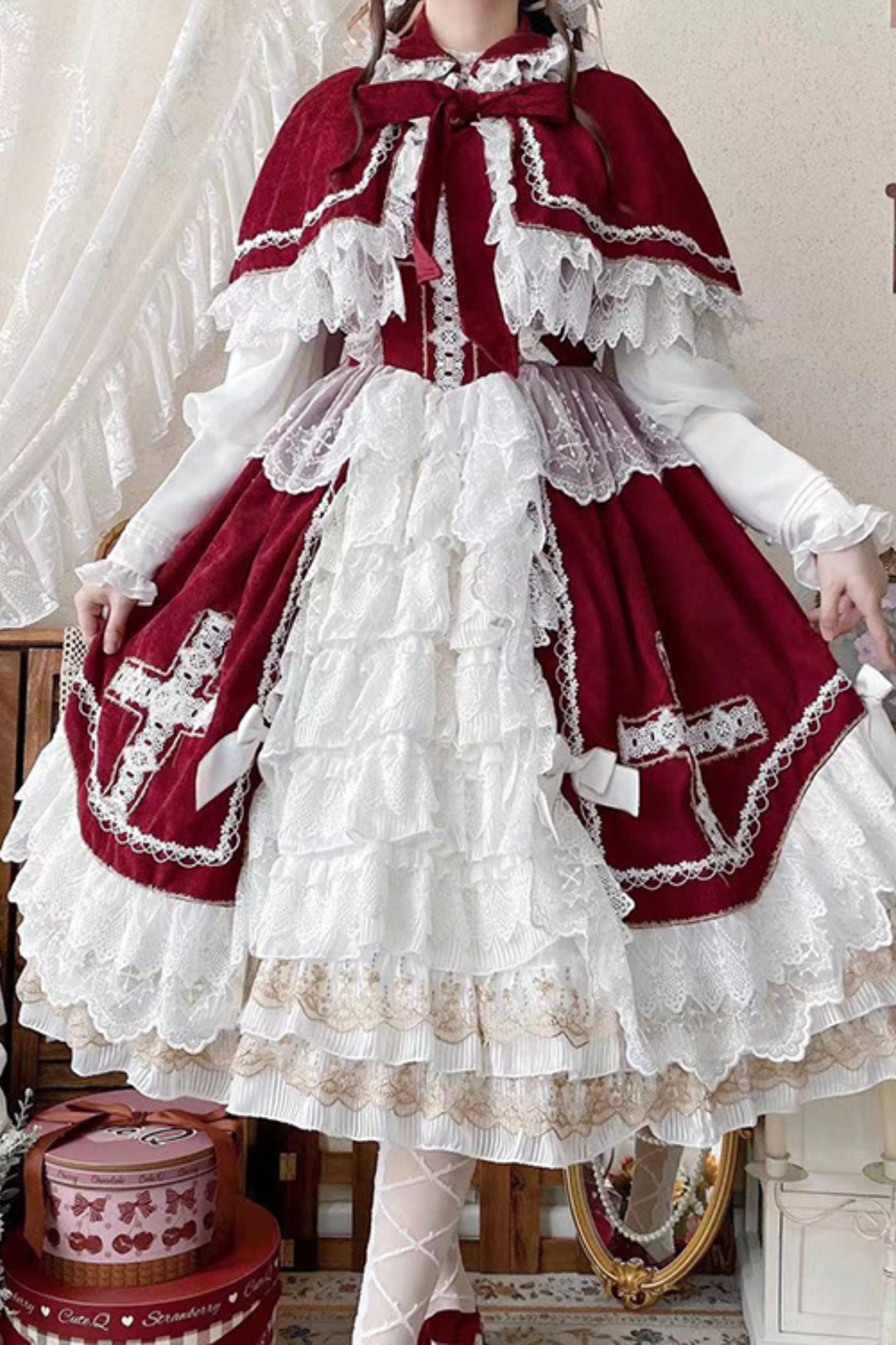 ゴシックドールレースジャンパースカート+ボンネット+ショール