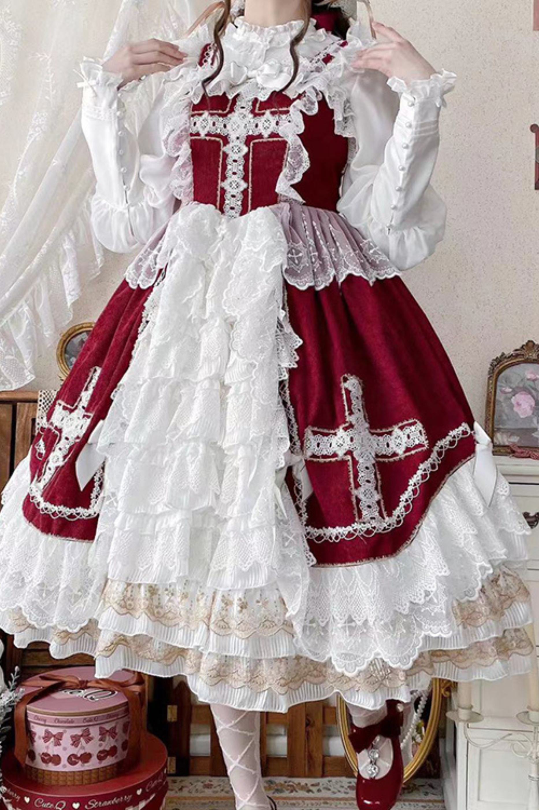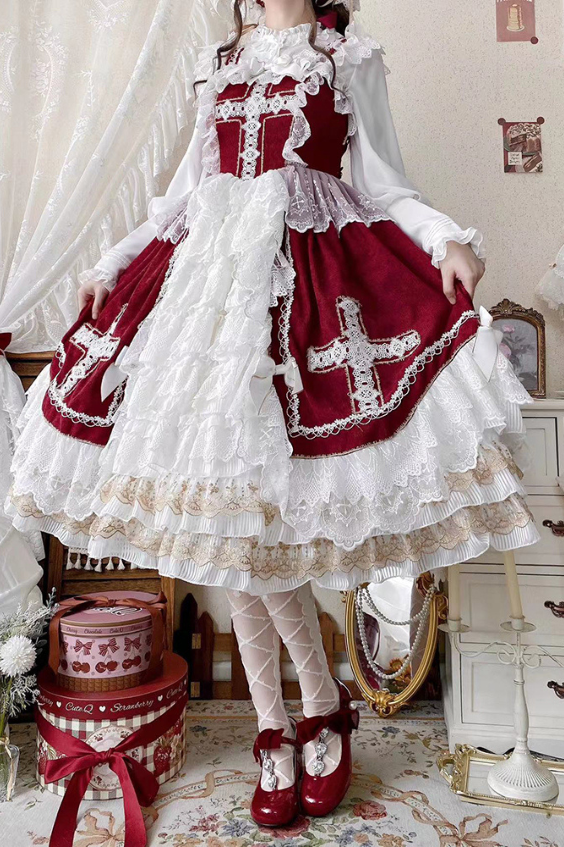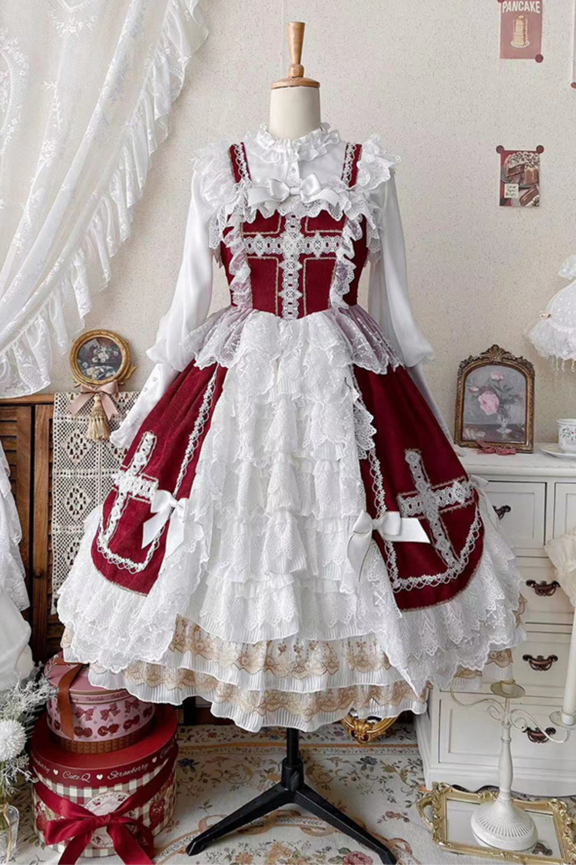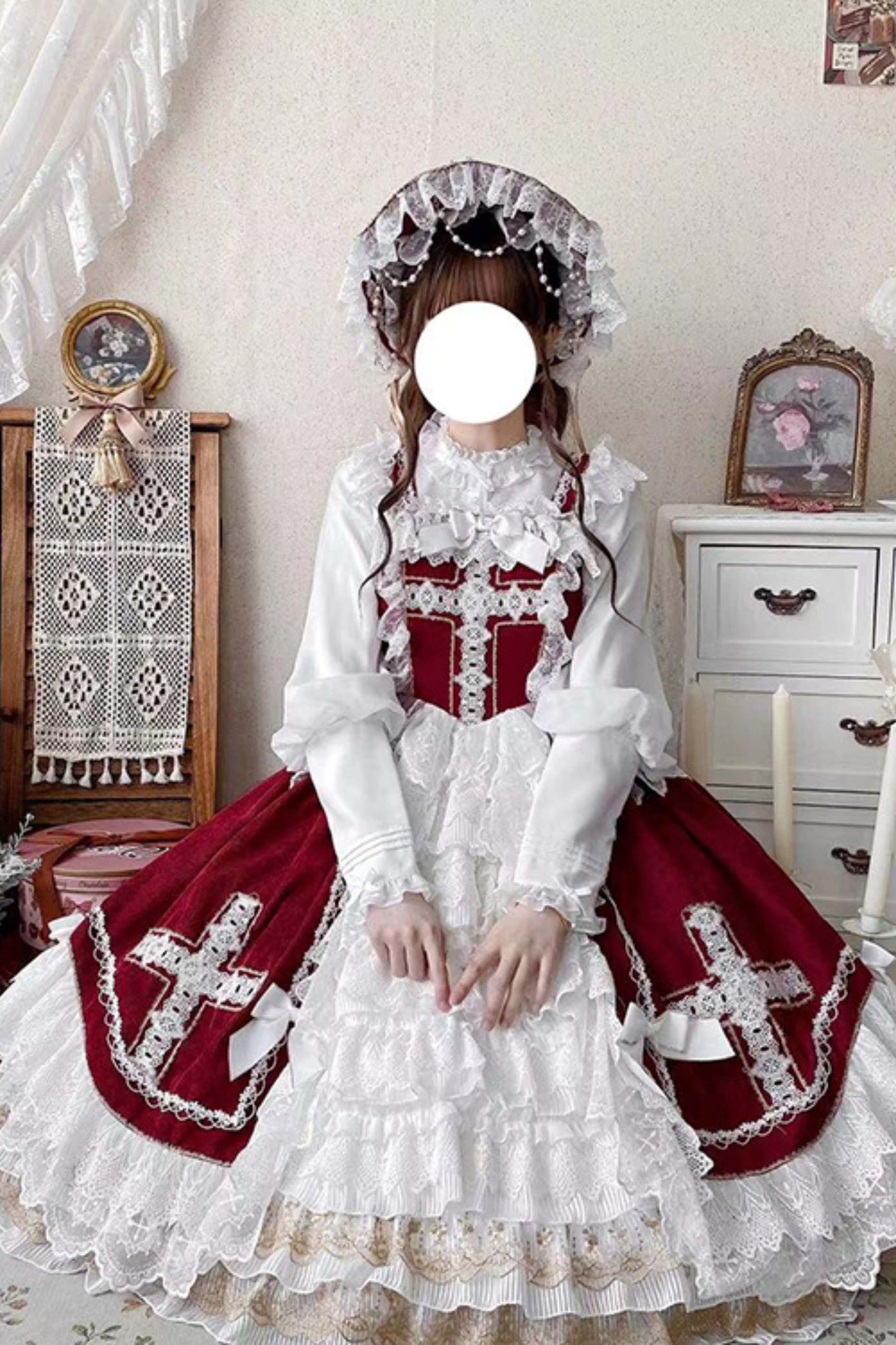 ゴシックドールレースジャンパースカート+ボンネット+ショール