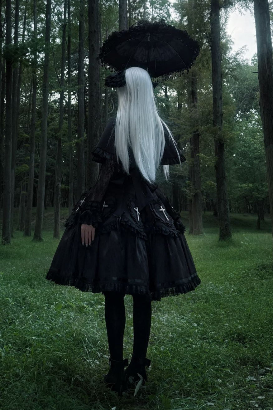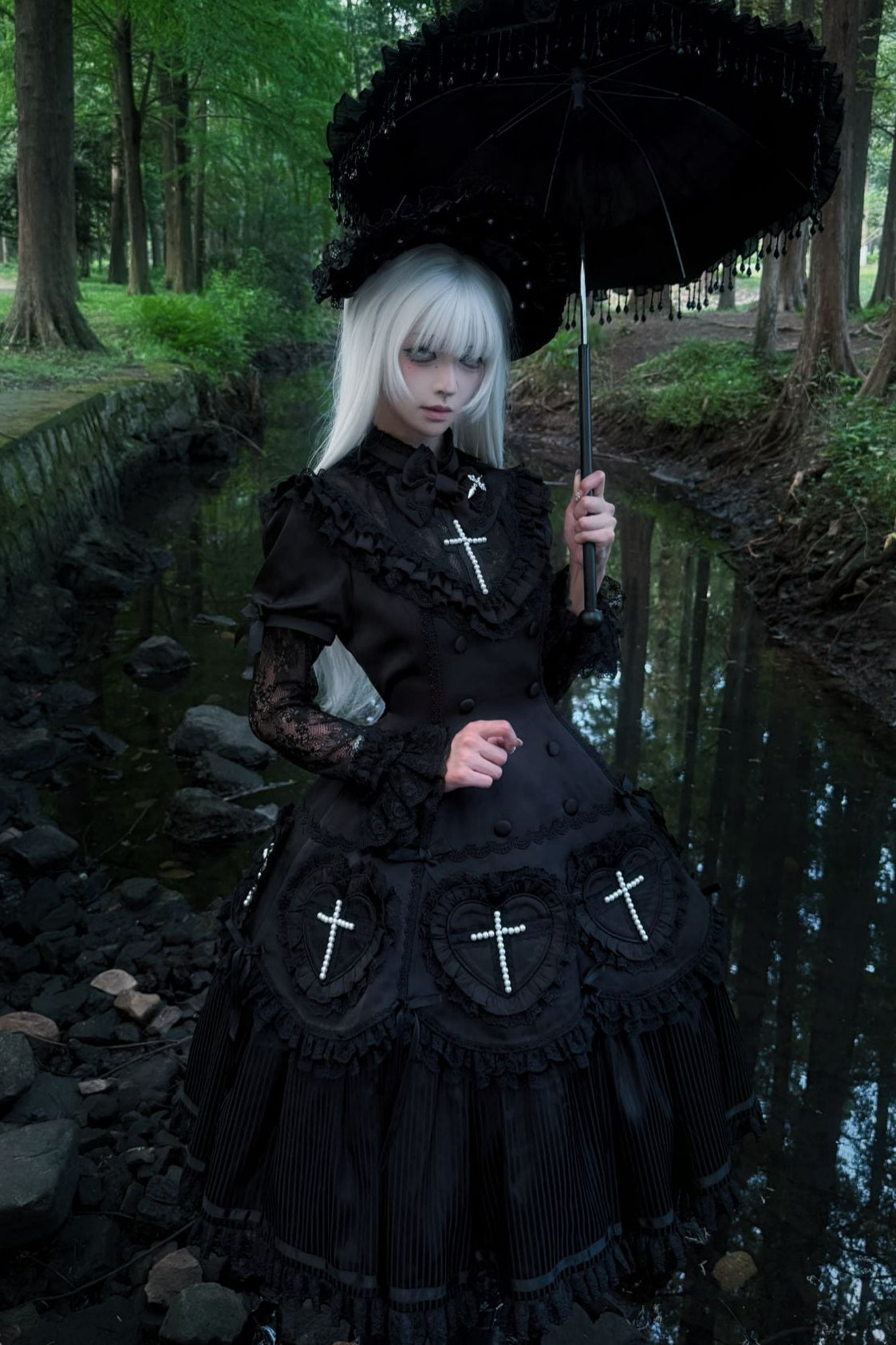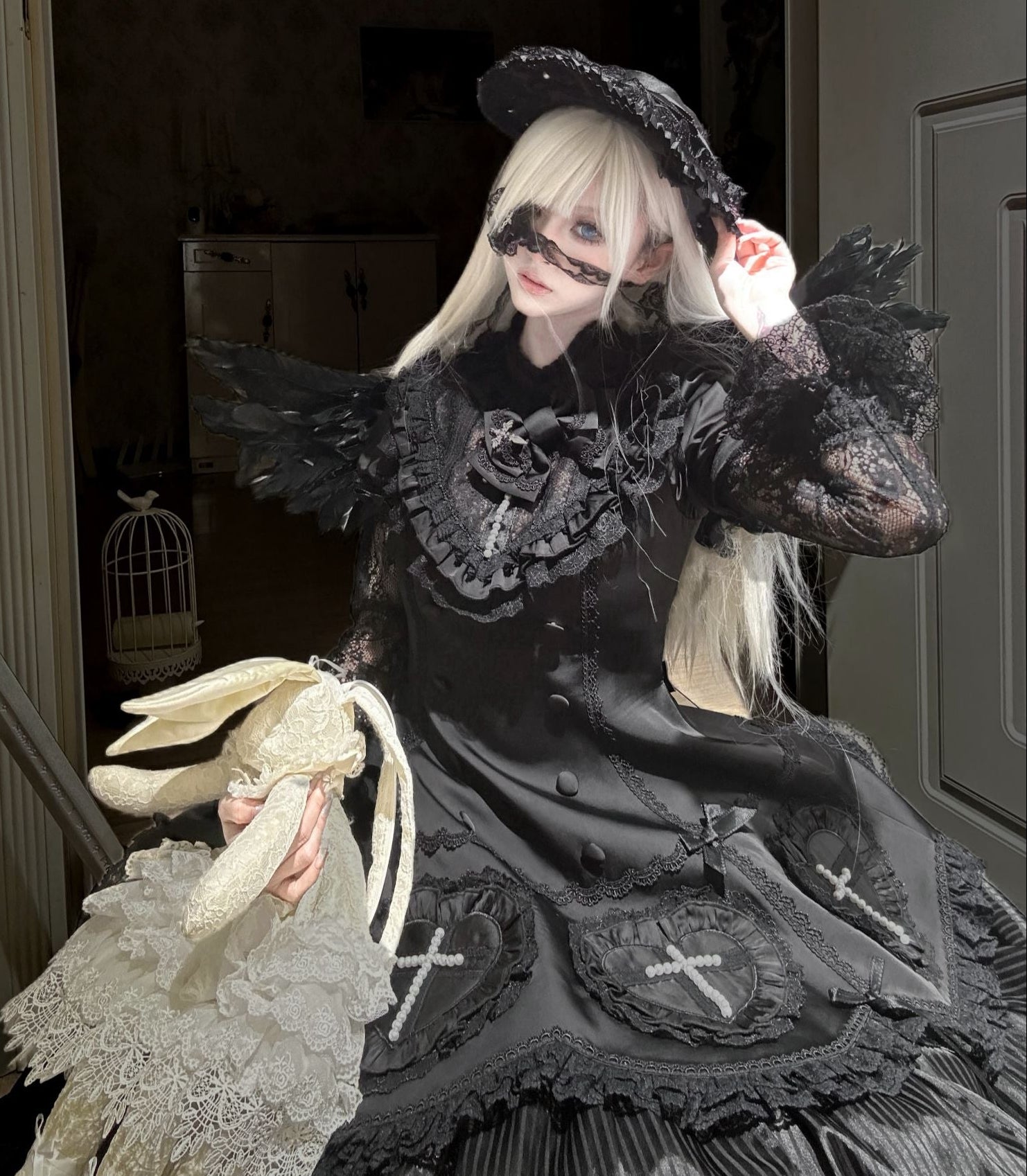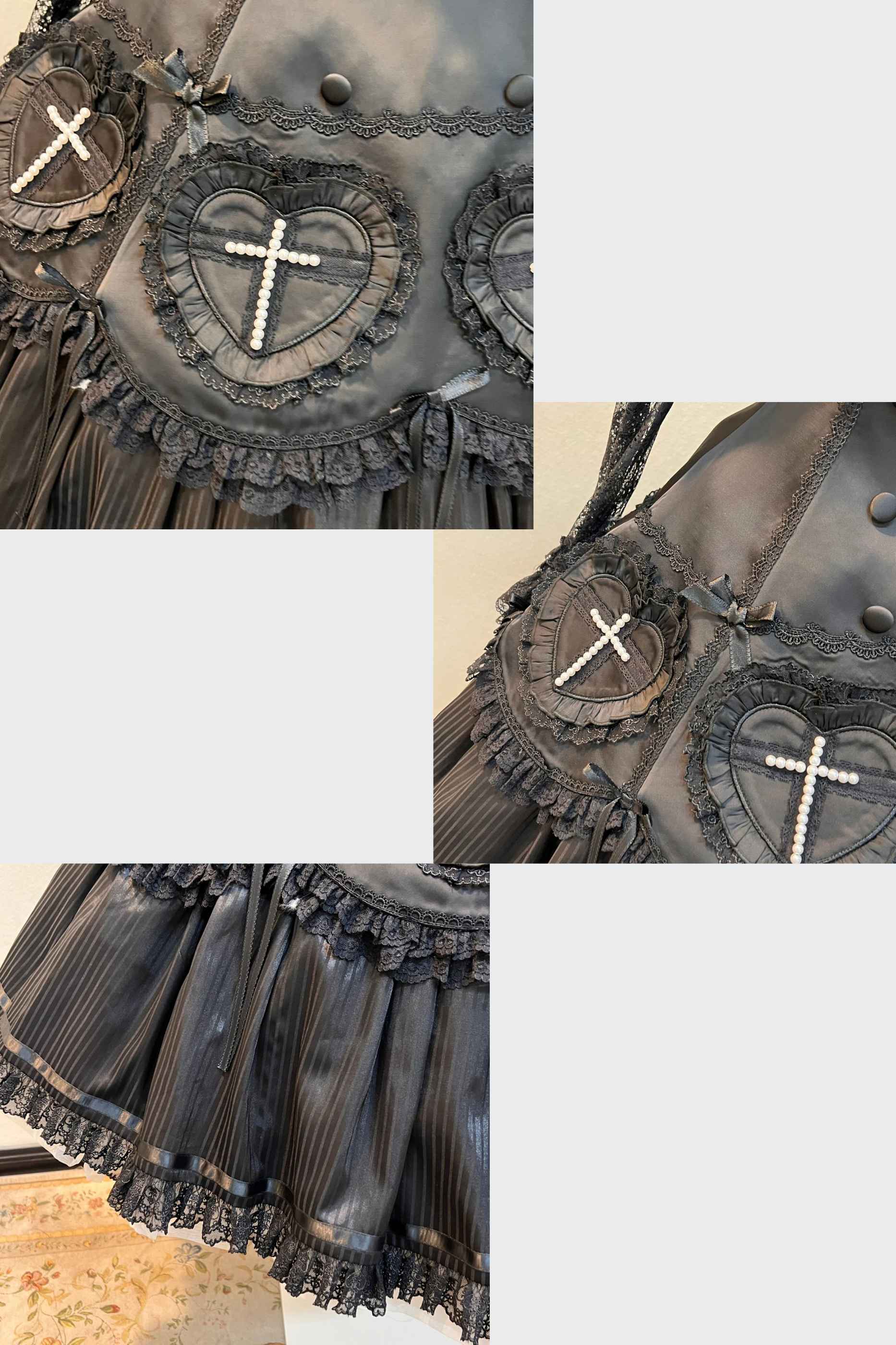 ❤︎【12月12日予約締切】Night Crossダークエレガントゴシックロリータジュエルリボンケープ+ロングドレスセット❤︎ ⚠️人気商品のためお届けに4ヶ月ほどかかってしまう場合がございます