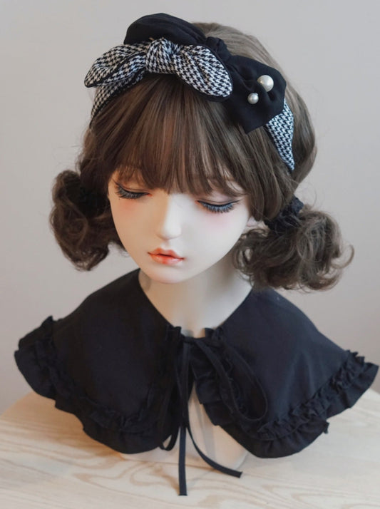 スイートチョコレートロリータスカート+フリルブラウス+レースショートアームウォーマー+リボンカチューシャ