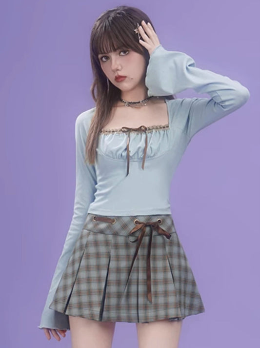 ピュアディザイアスイートミントグリーンスクエアネックフリルロンT