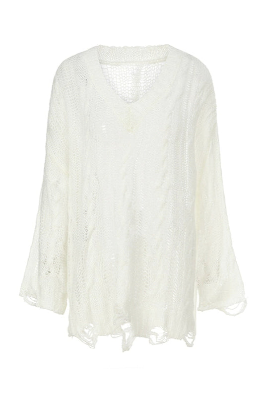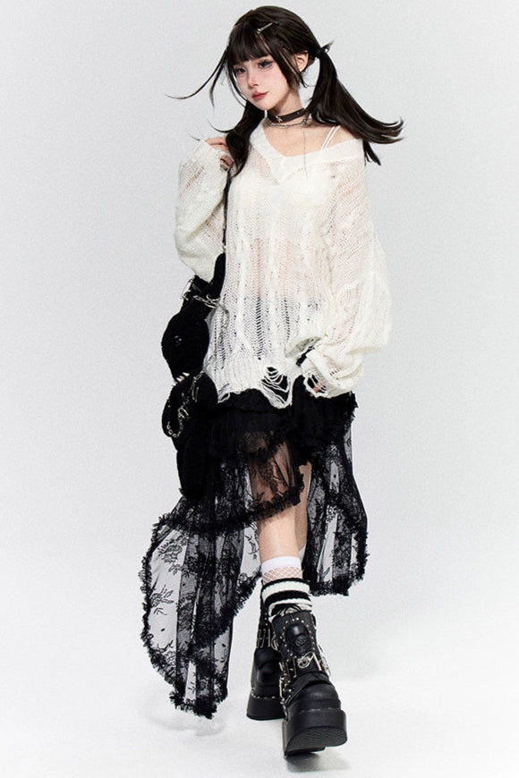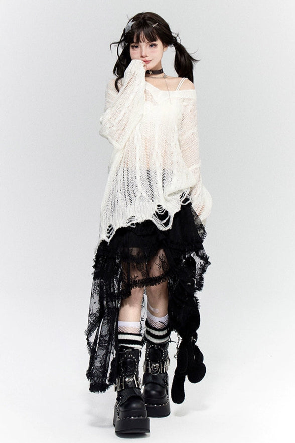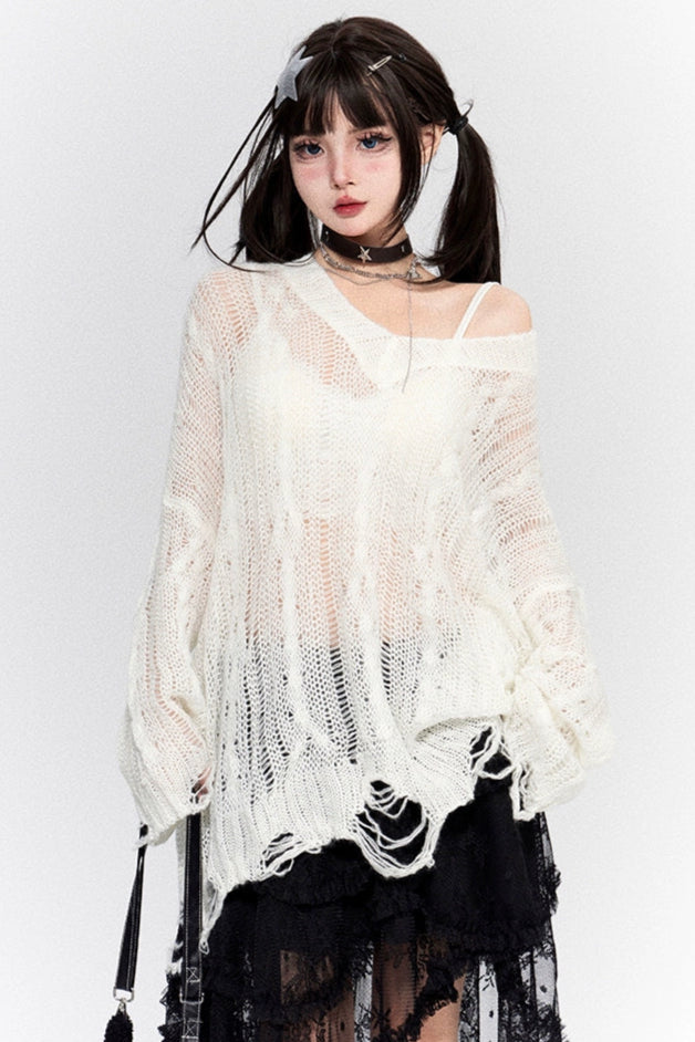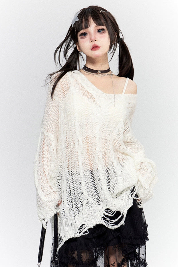 ❤ワンショルダーダメージメッシュルーズトップス❤