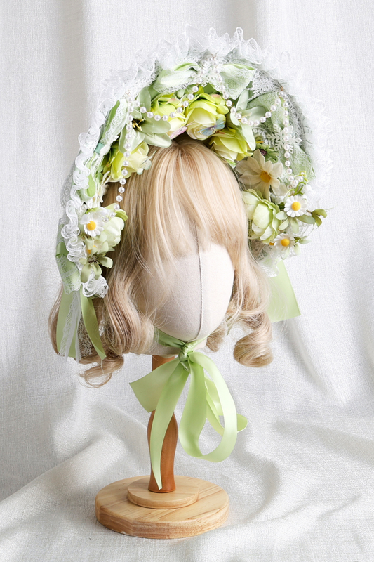 カントリーブーケロリータボンネット+フラットハット+クリップハット+ヘアバンド