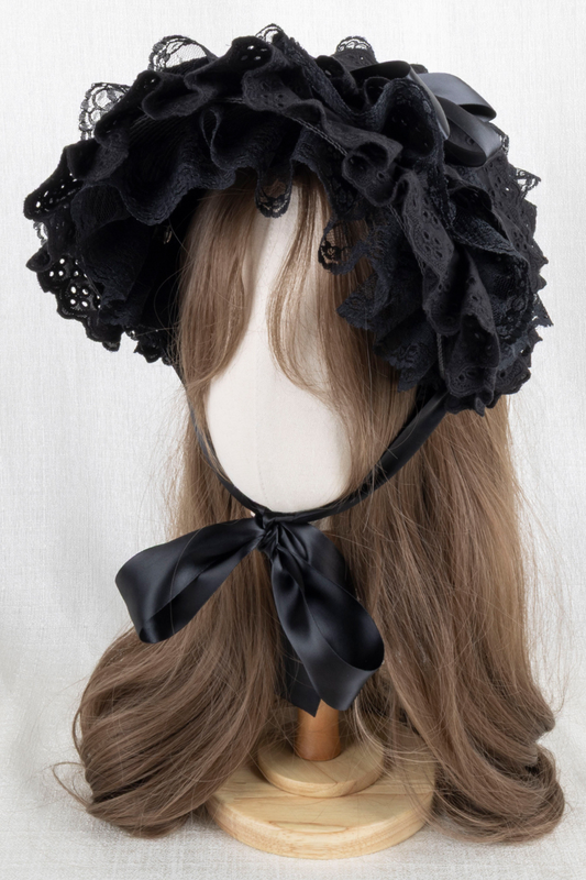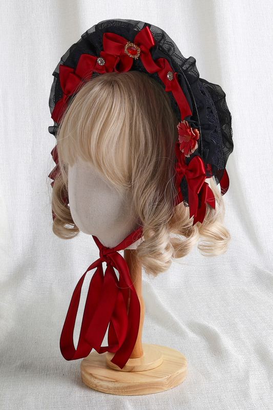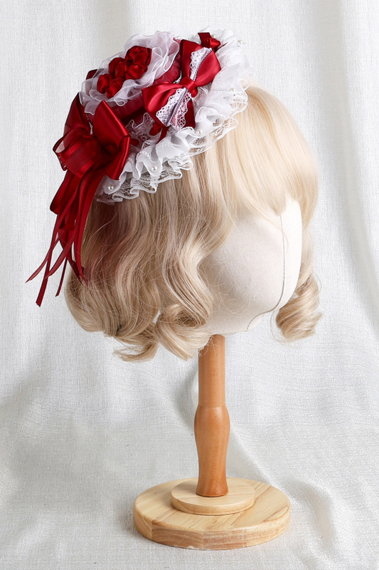 ローズレースロリータボンネット+ハット+ヘアバンド+クリップハット+クラウン