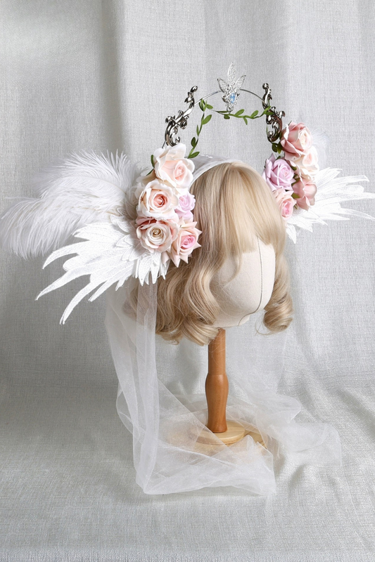 ゴシックローズフェザーハット+ボンネット+ヘアバンド+フェザークリップ