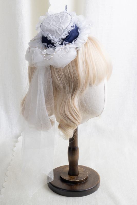 ネイビーブルーロリータボンネット+ヘアバンド+ハットクリップ+リボンクリップ