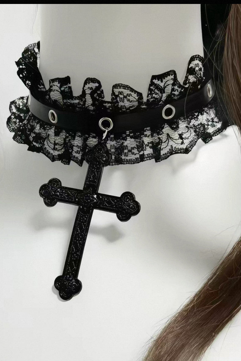 ゴシックブラックアンドレッドドレス+カーディガン+アクセサリー