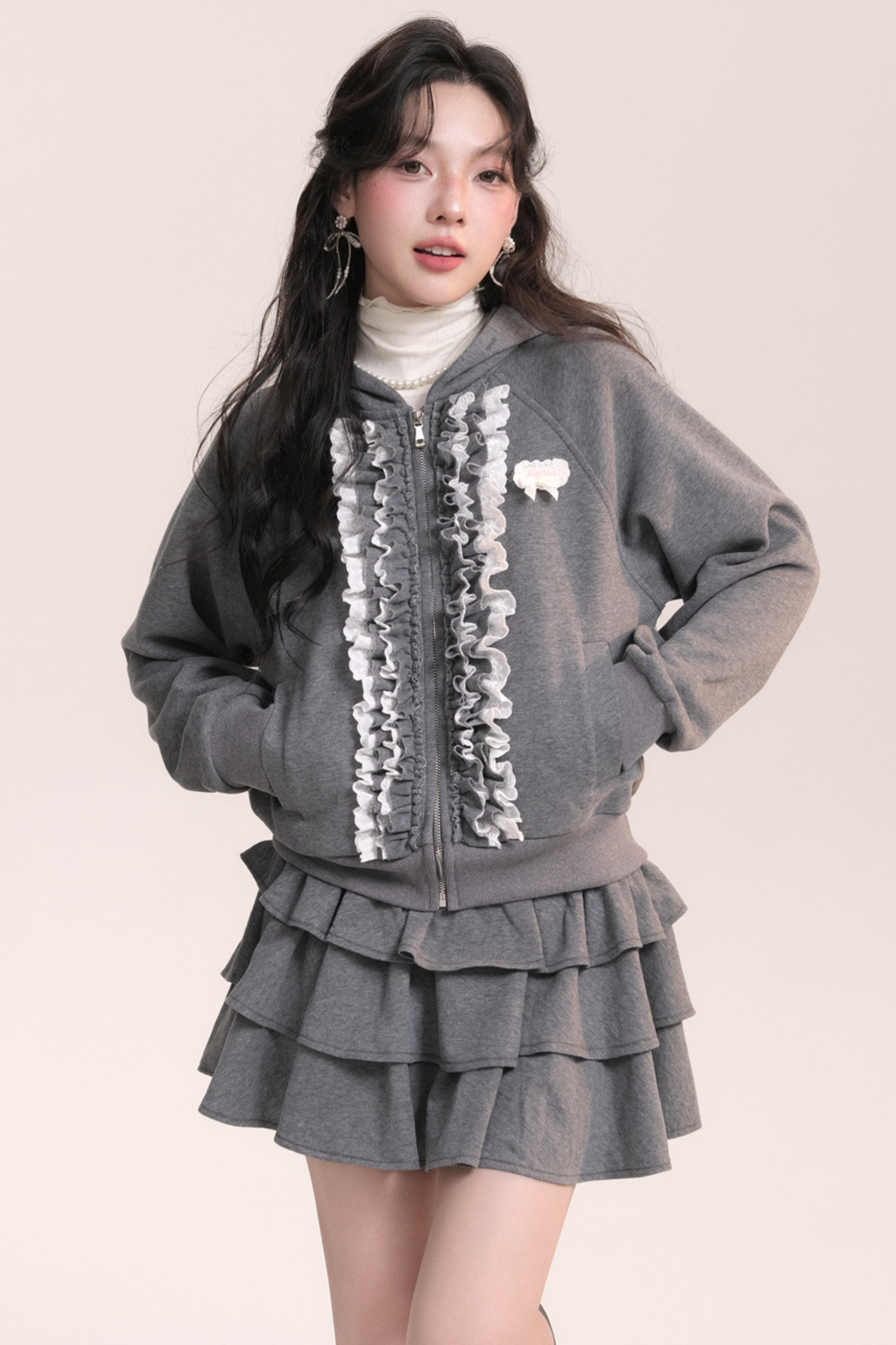 ❤バレエレーススウェットフードジャケット+ケーキスカート❤