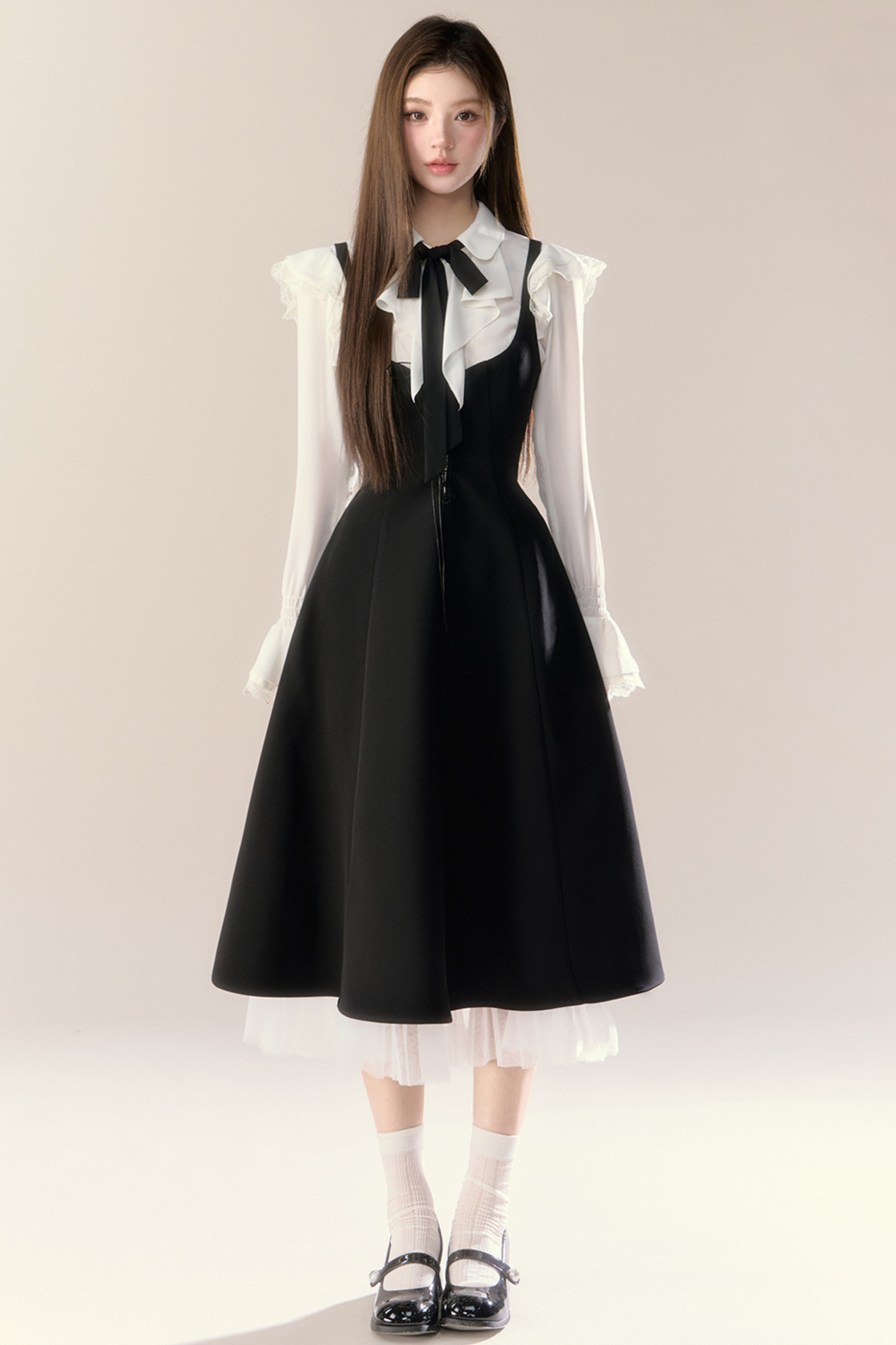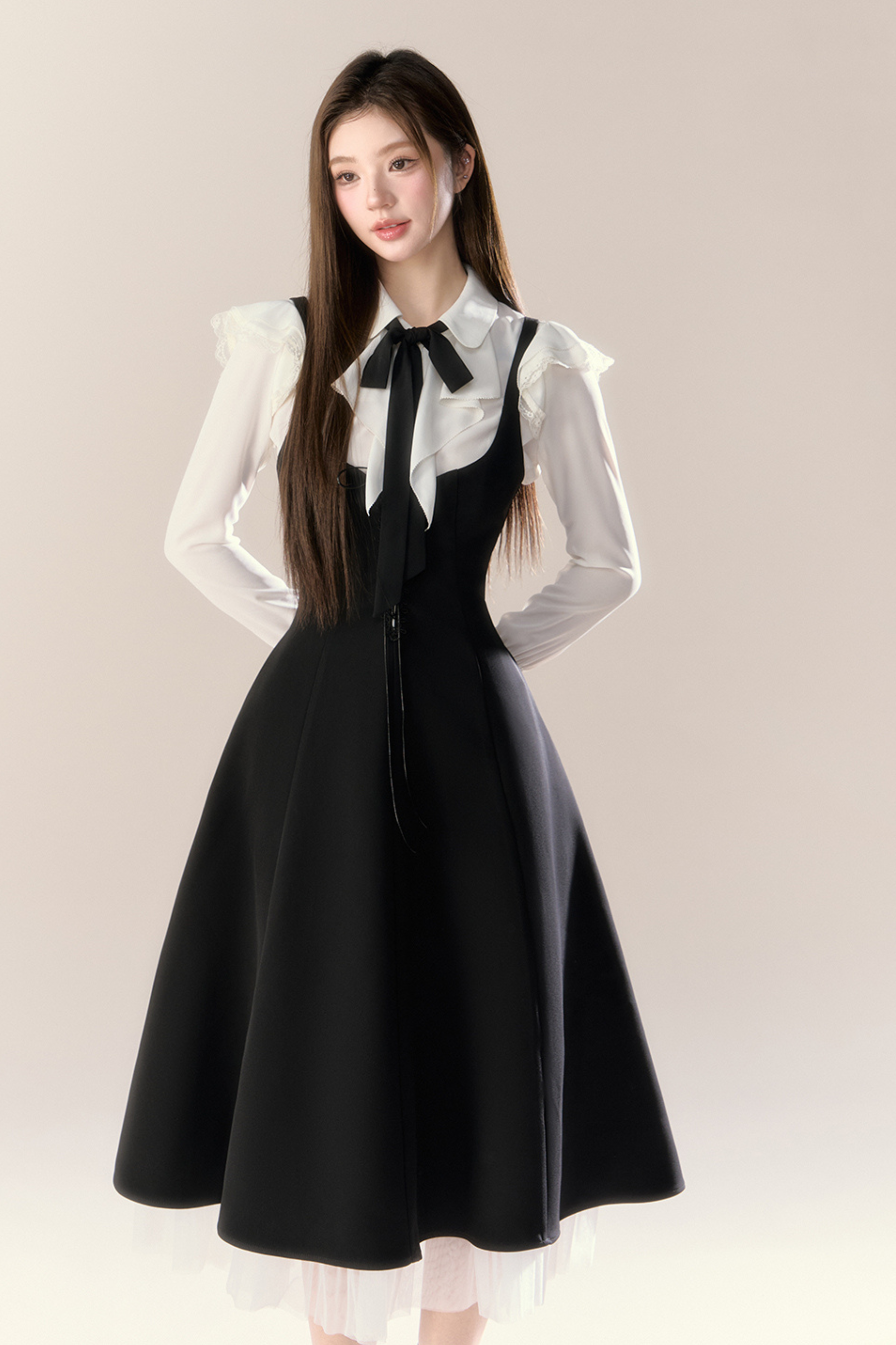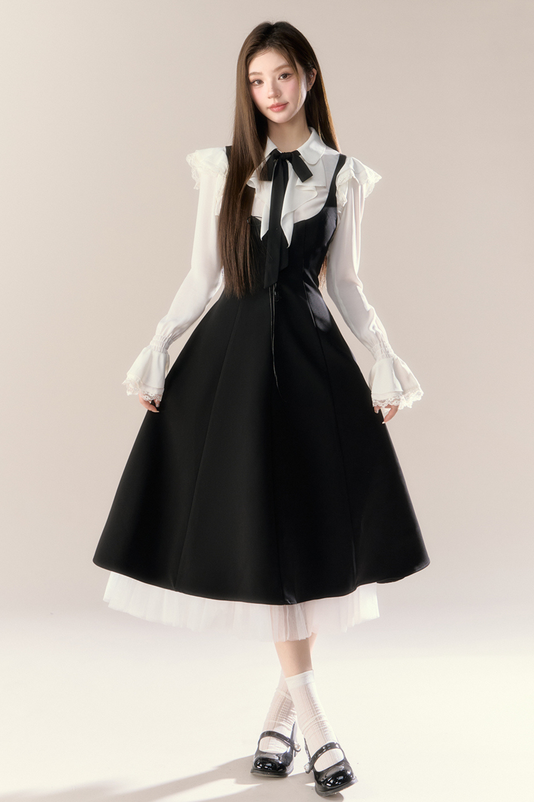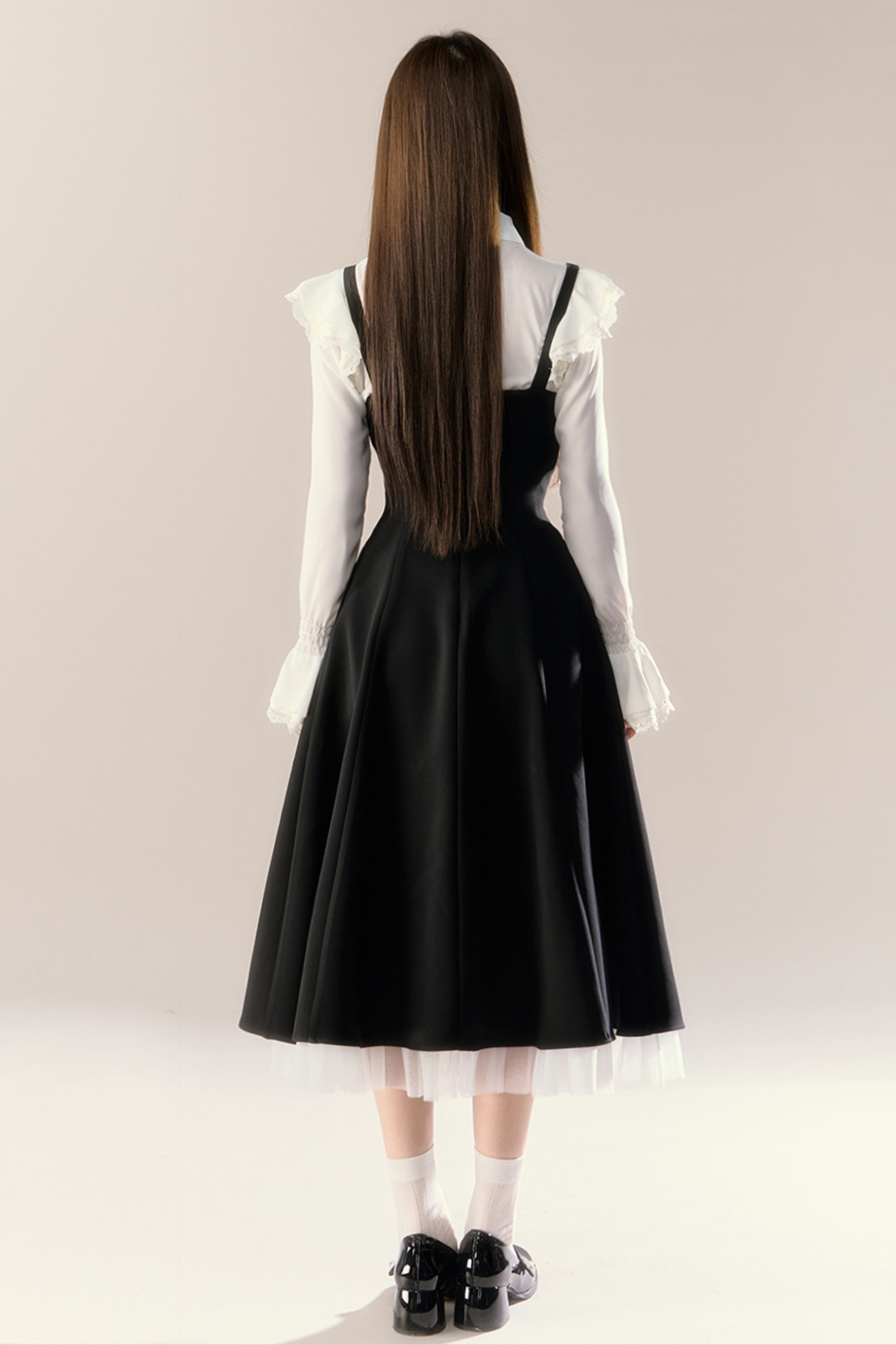 フレンチブラウス+サスペンダースカート