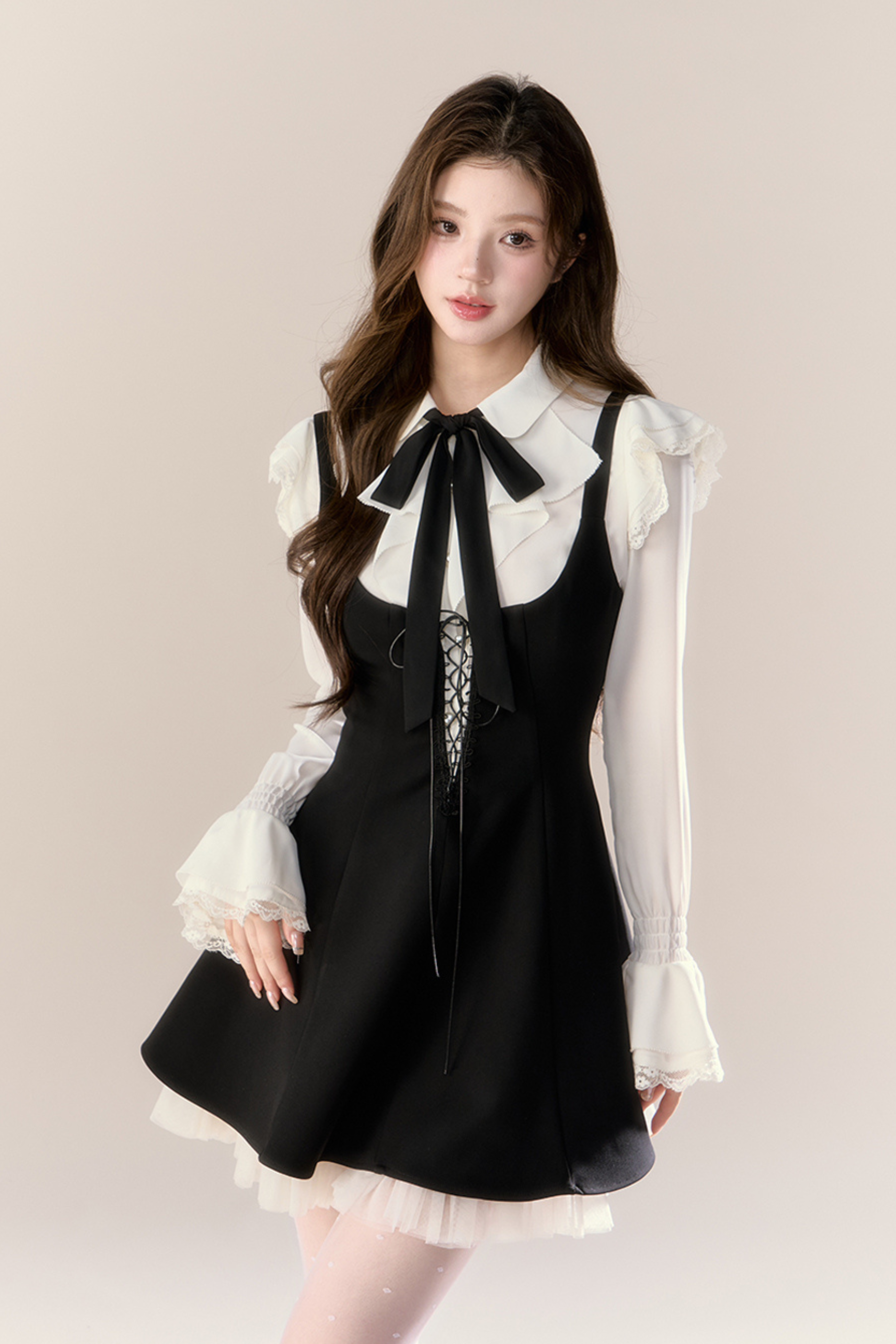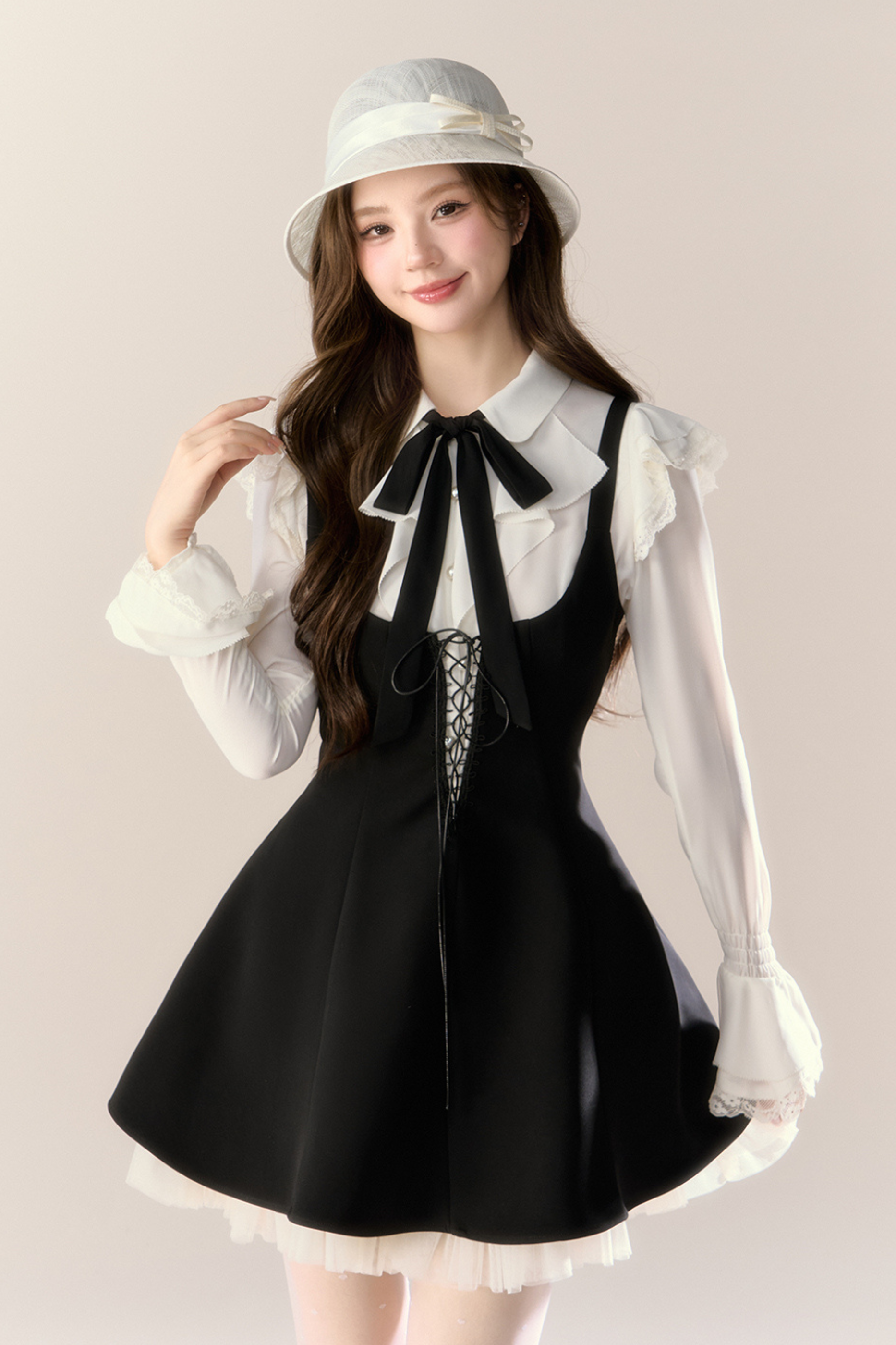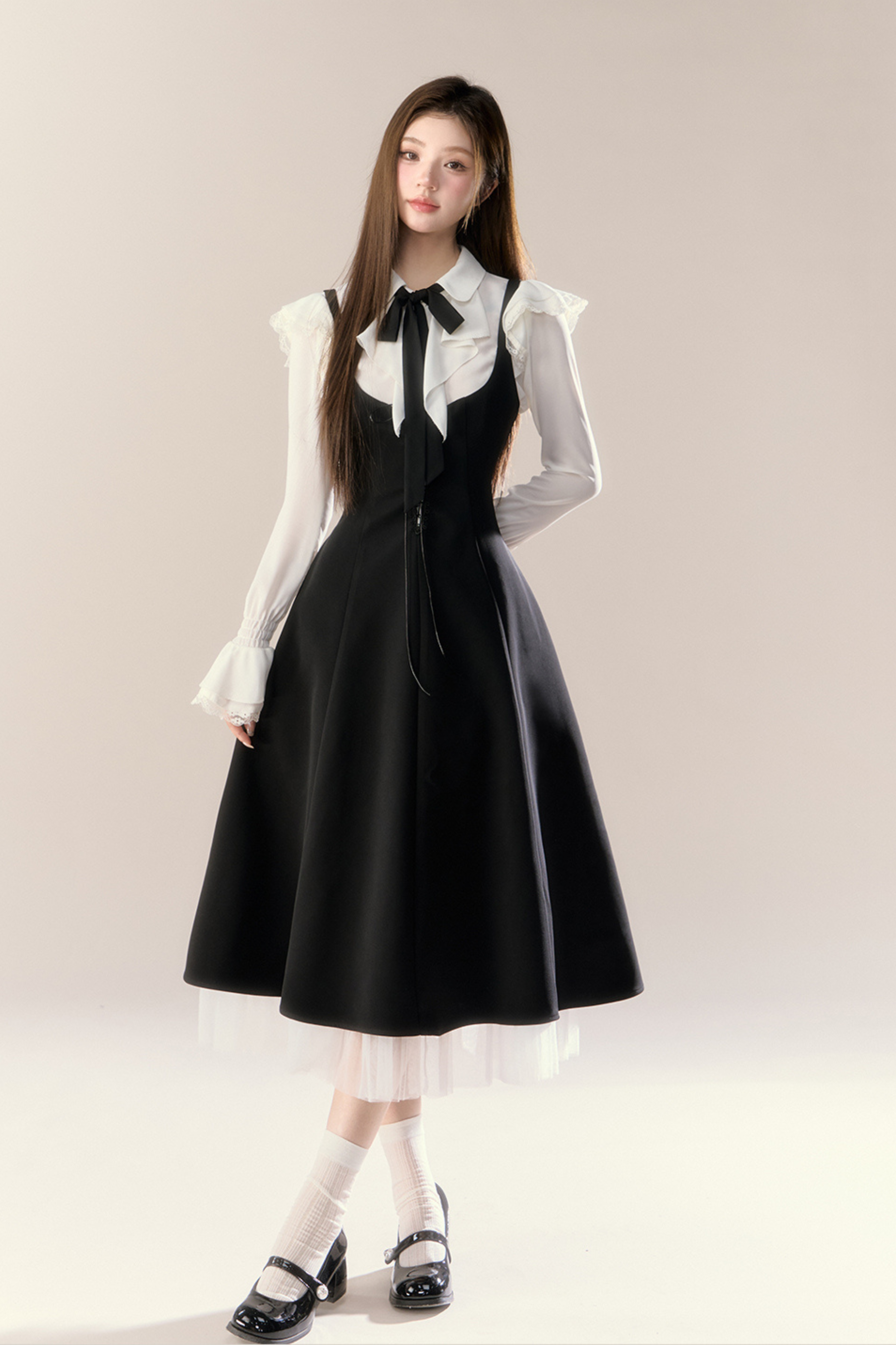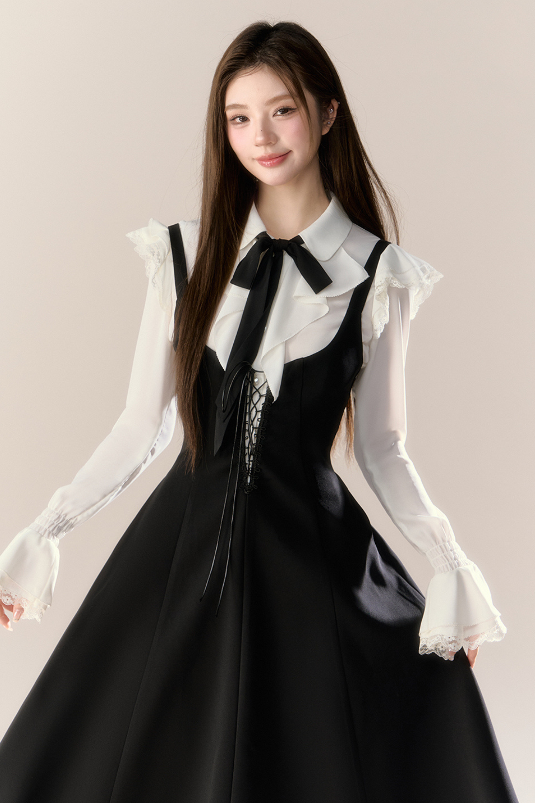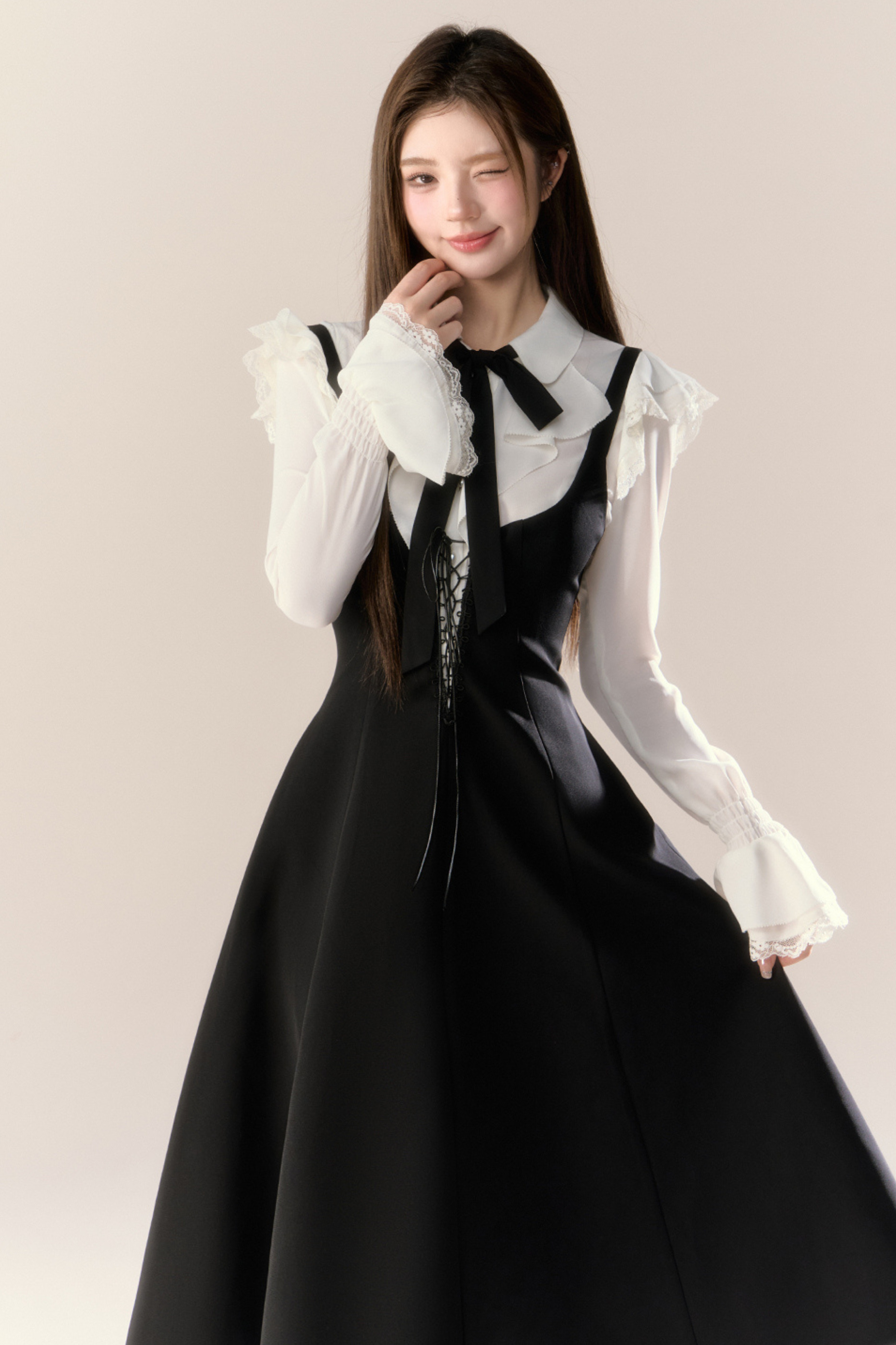 フレンチブラウス+サスペンダースカート
