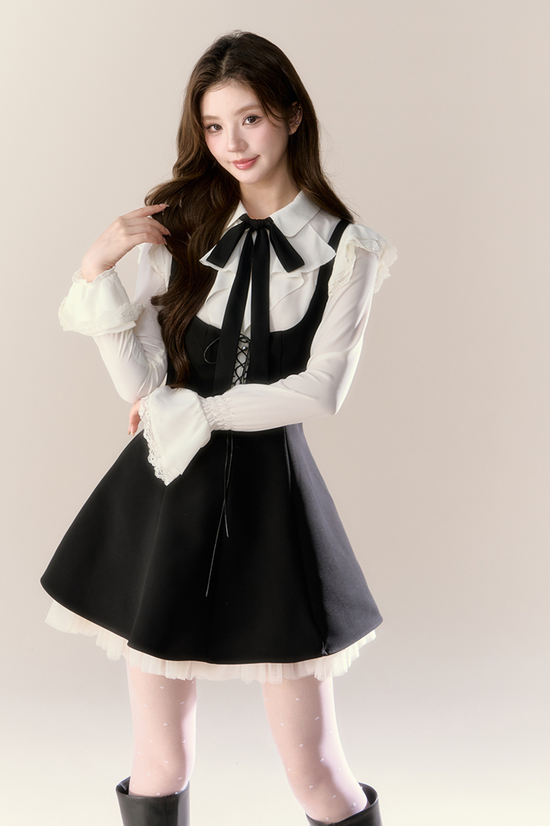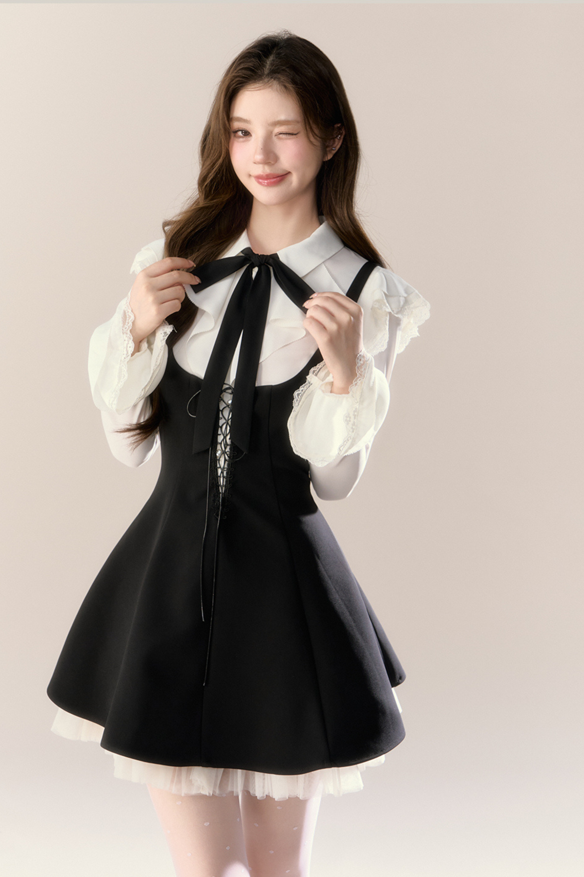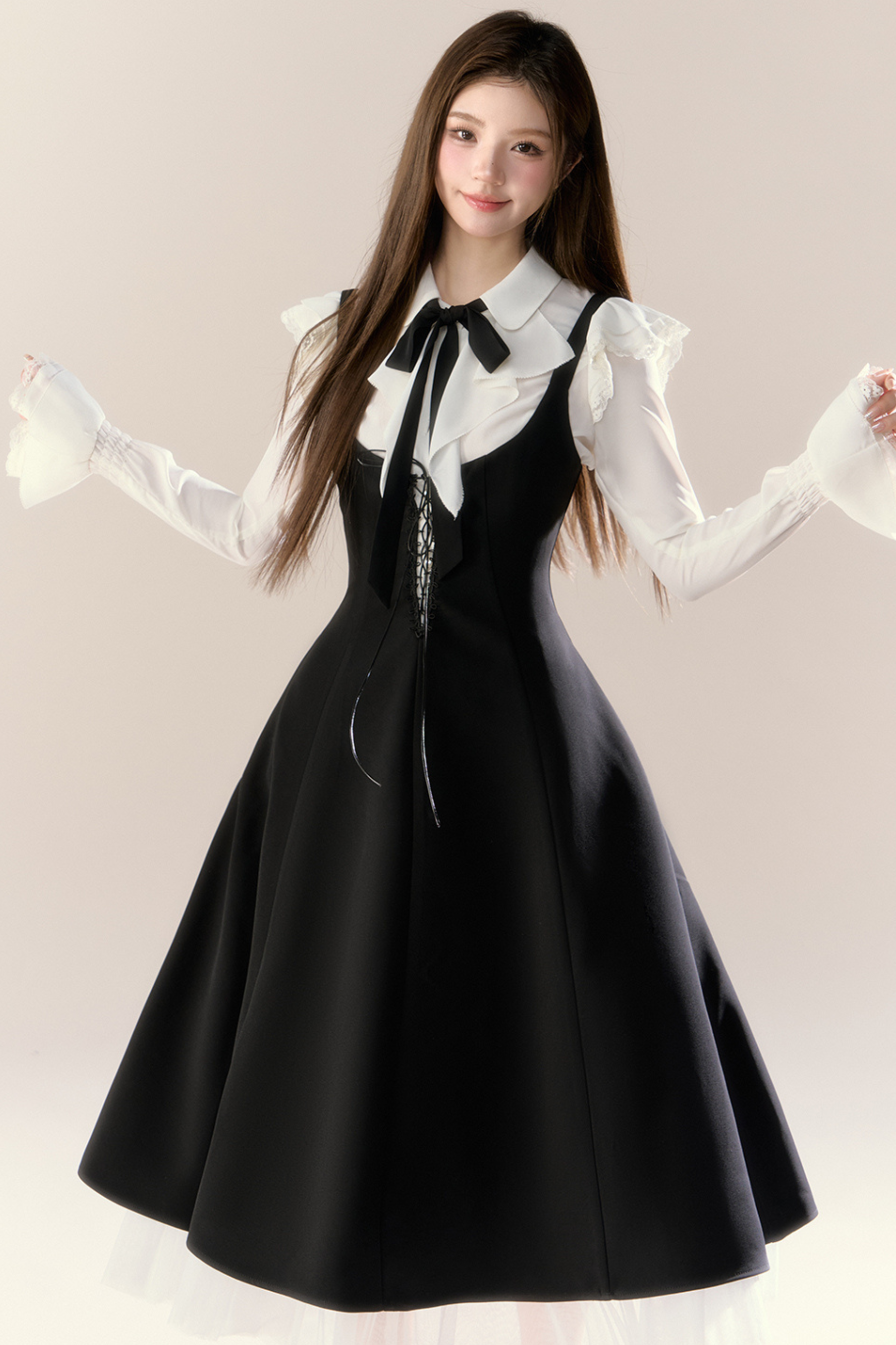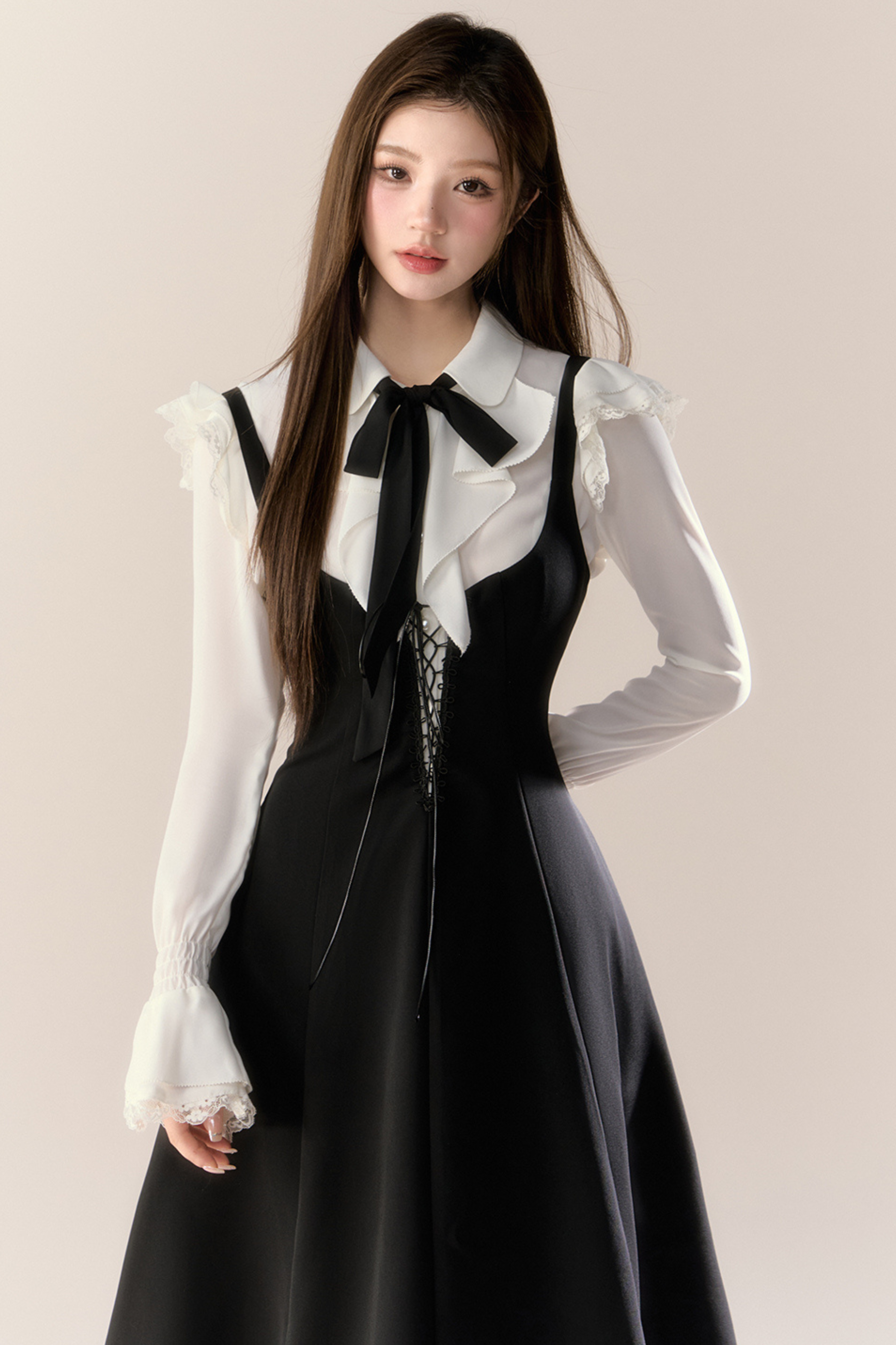 フレンチブラウス+サスペンダースカート