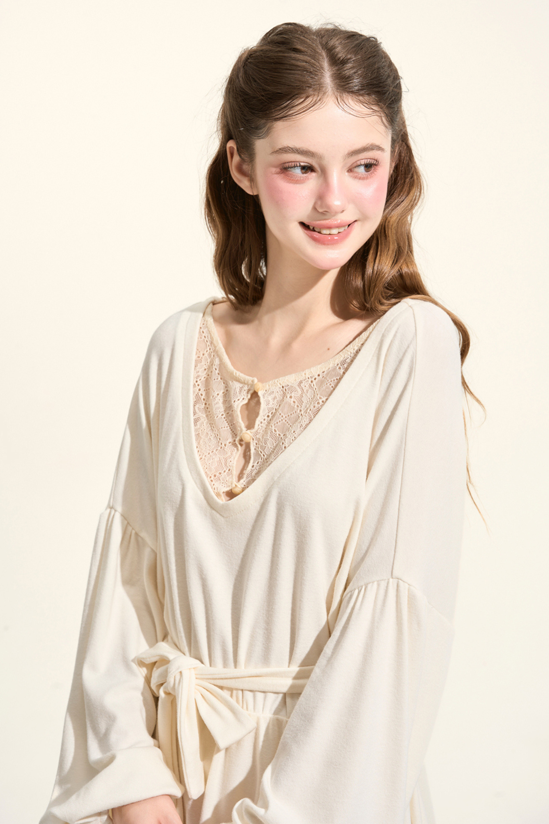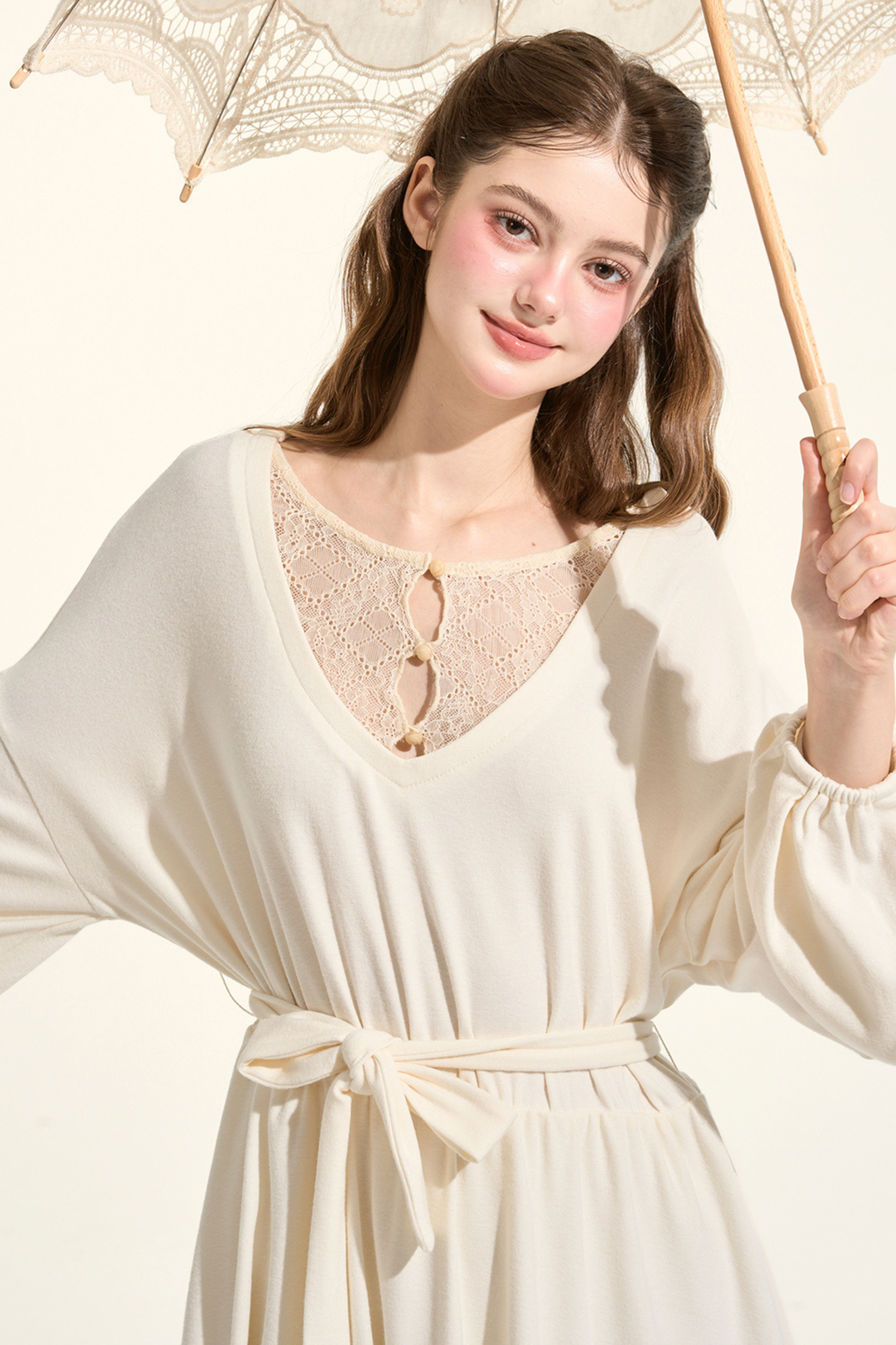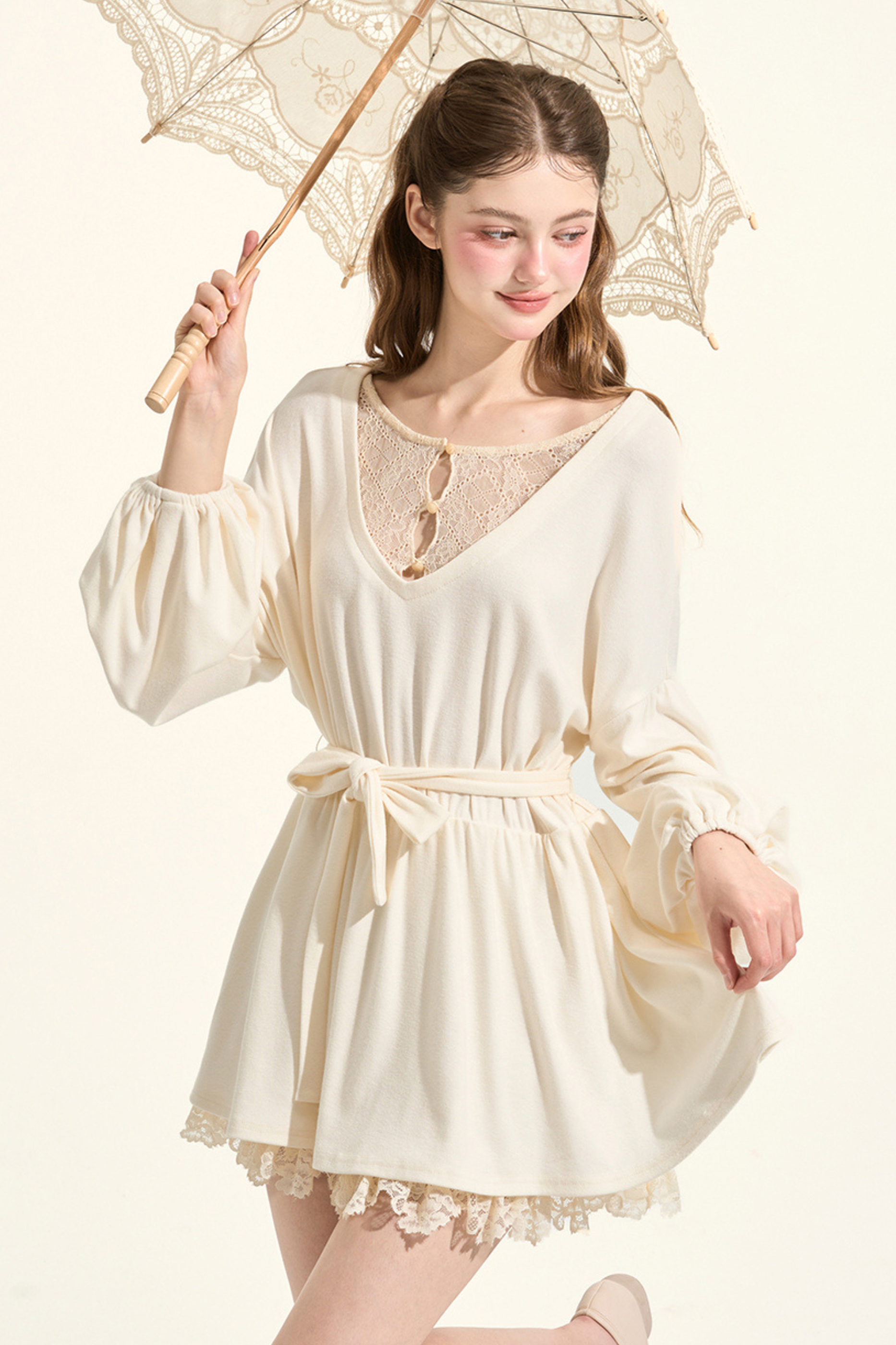 ❤クリーミーバニラランタンスリーブVネックドレス❤