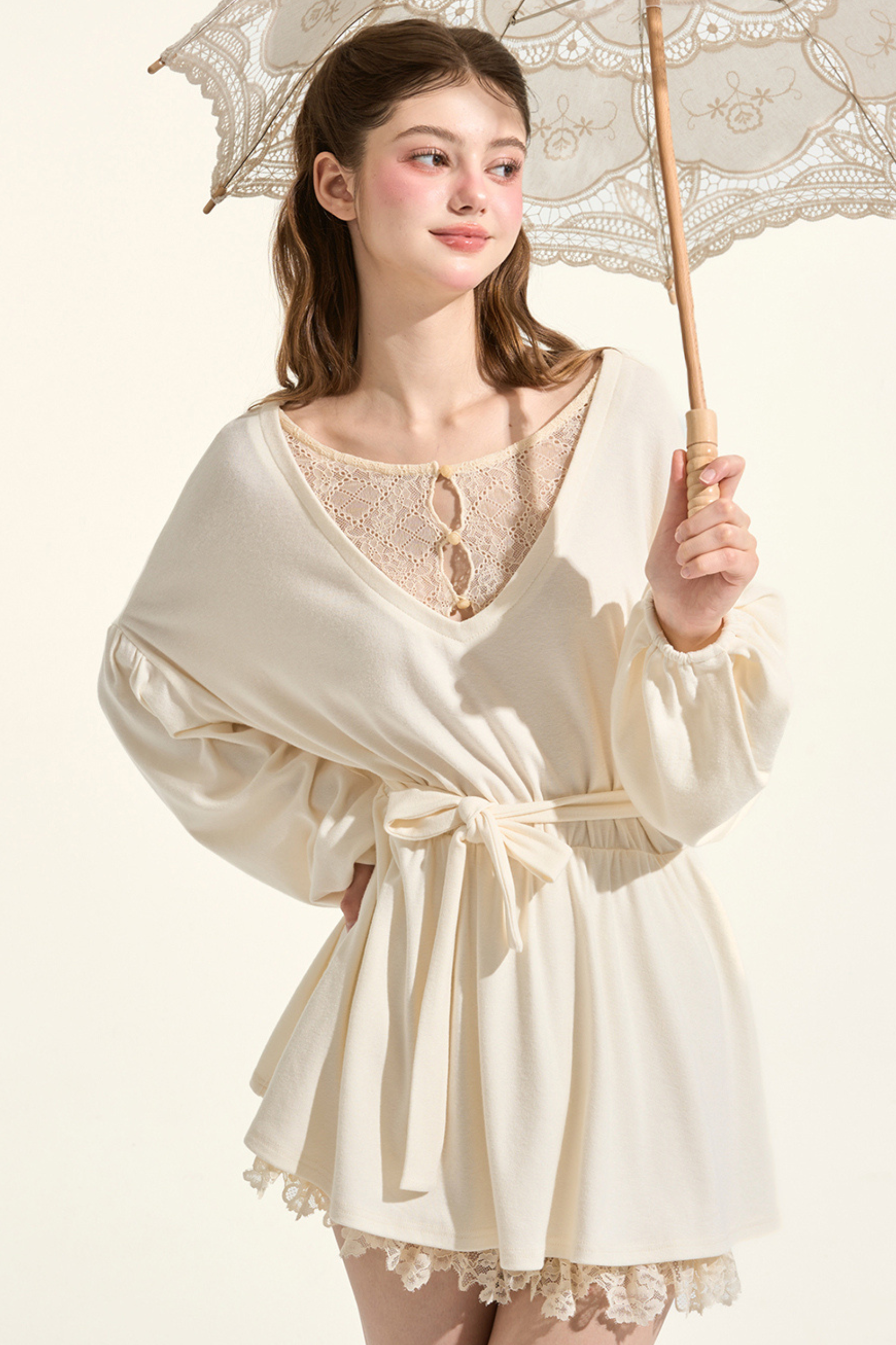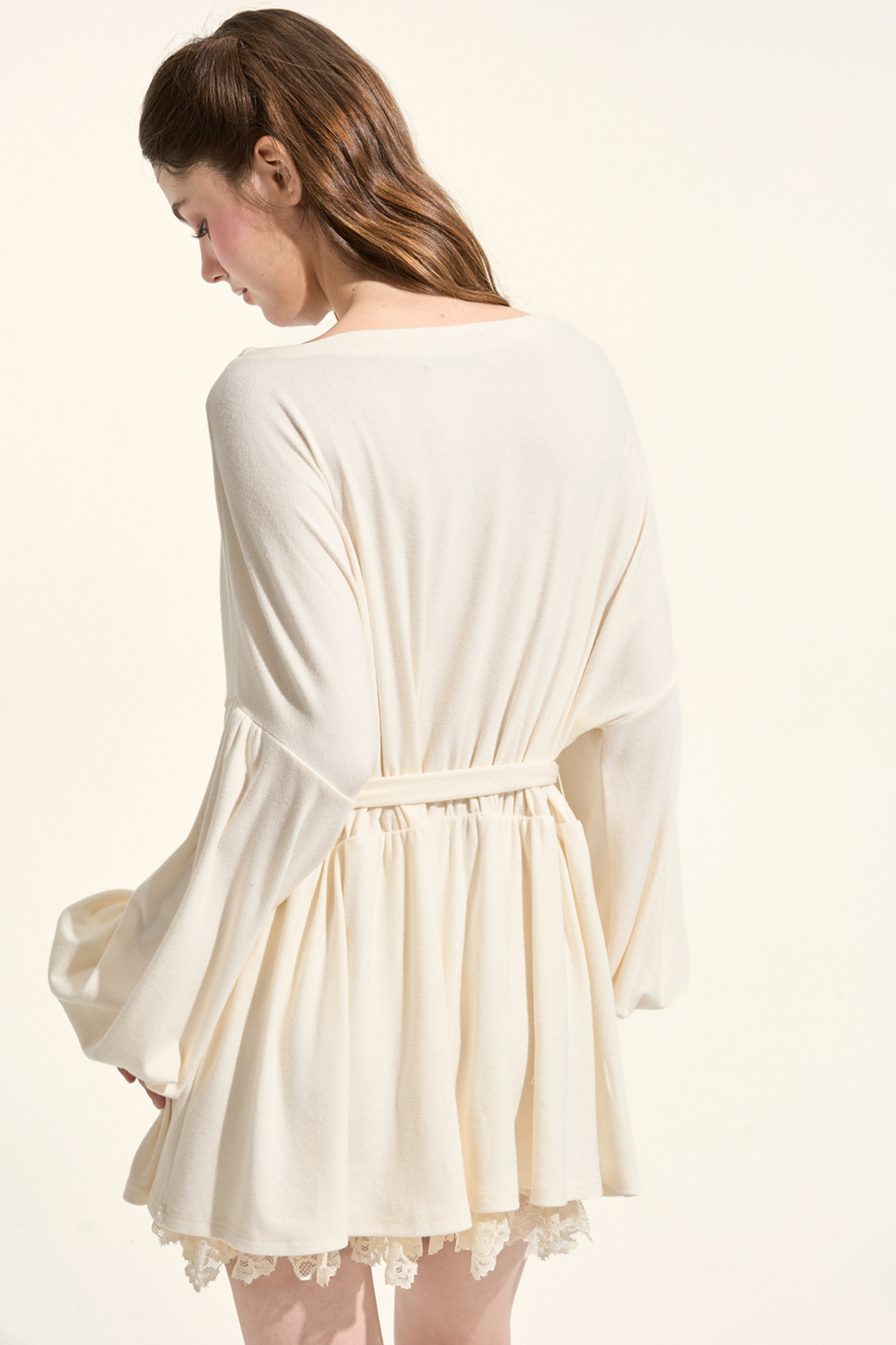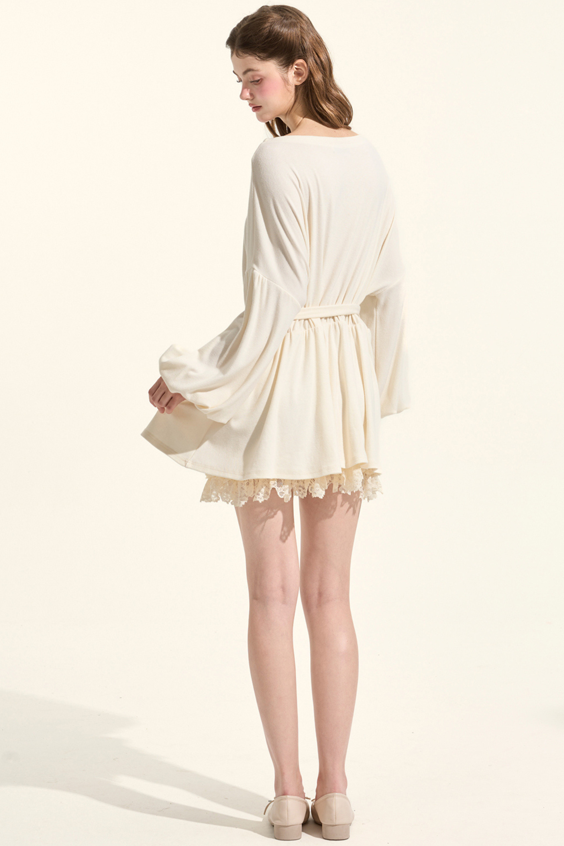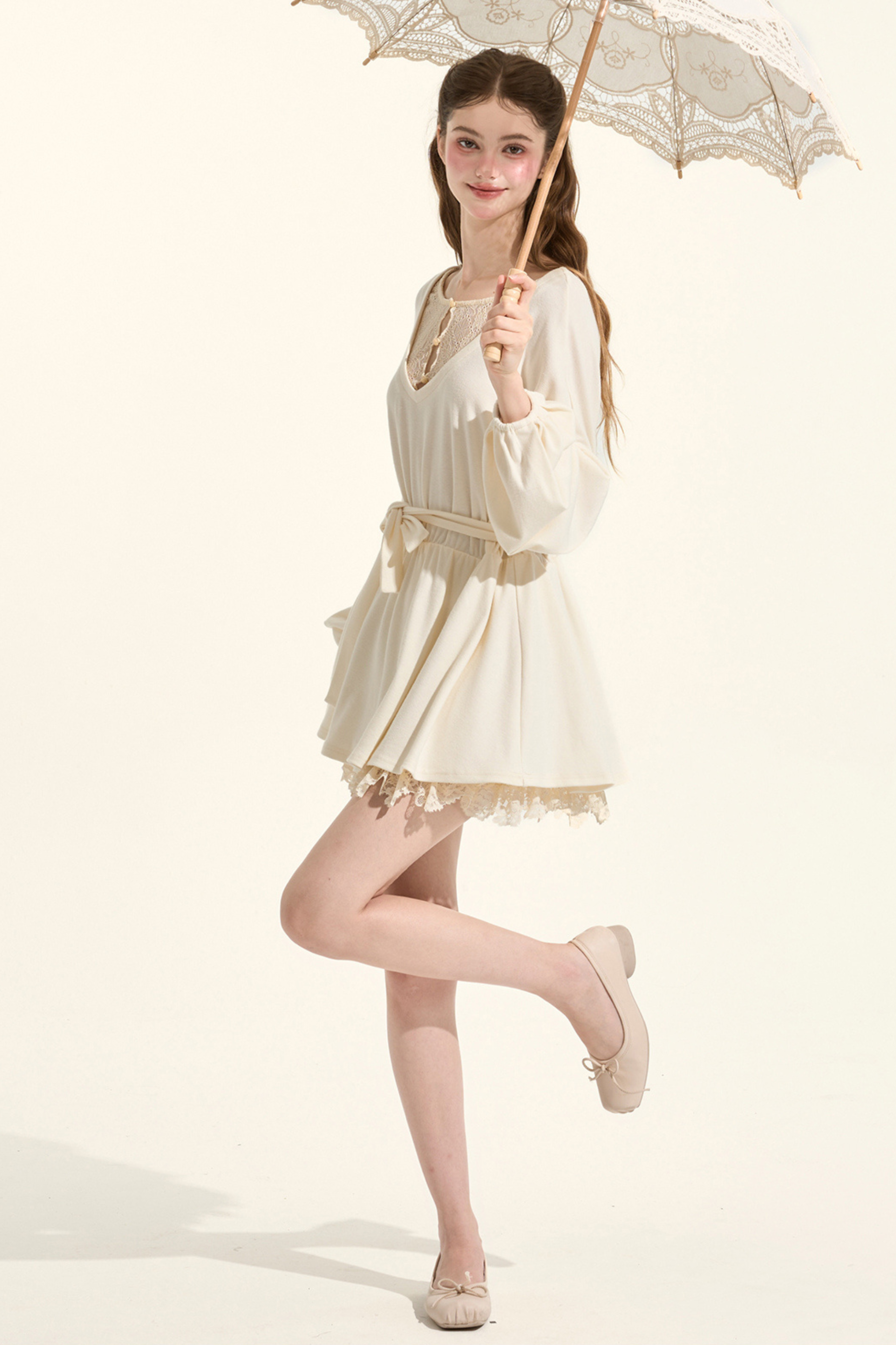 ❤クリーミーバニラランタンスリーブVネックドレス❤