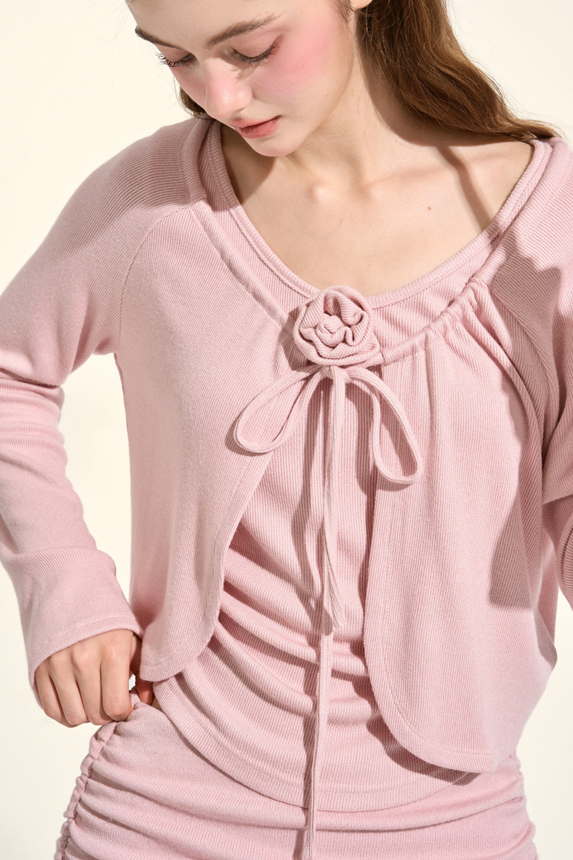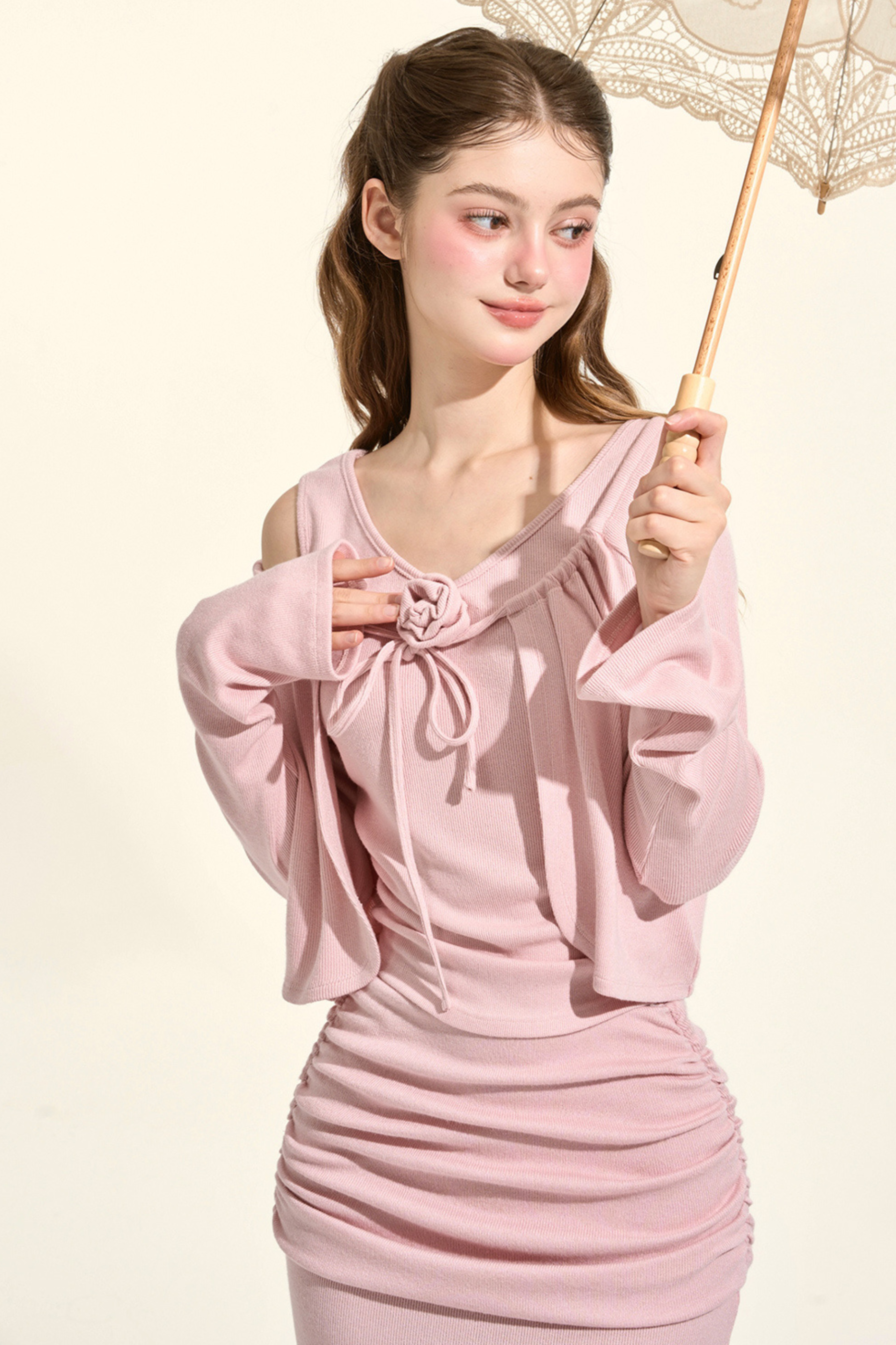 スイートピンクカーディガン+キャミソール+マーメイドスカート