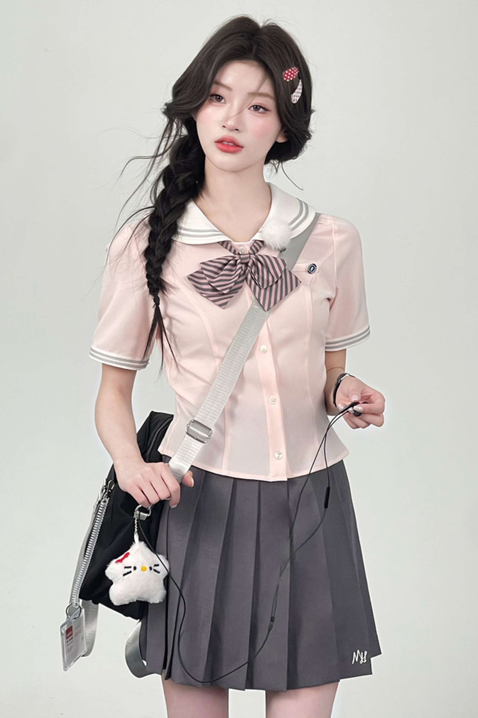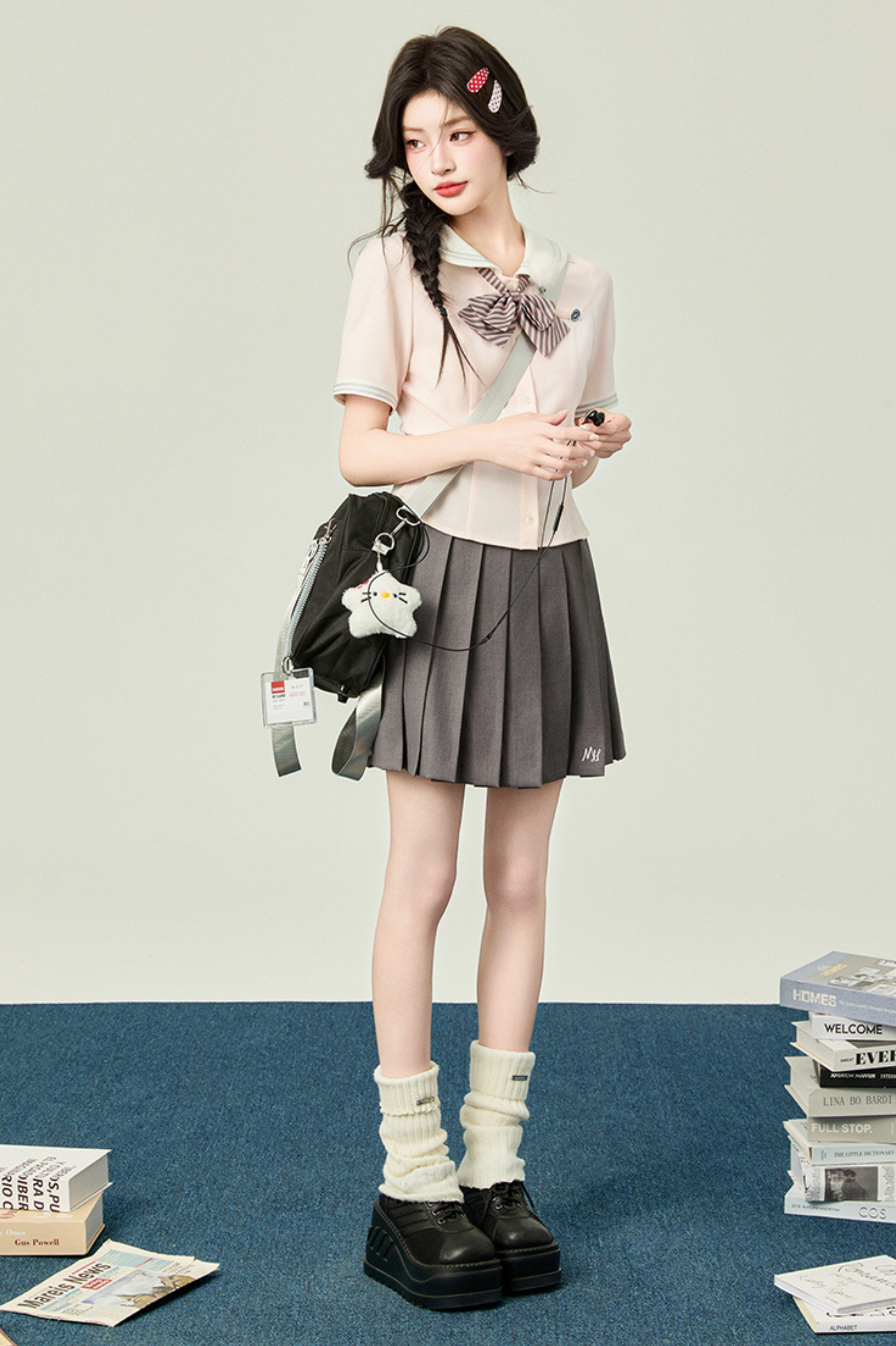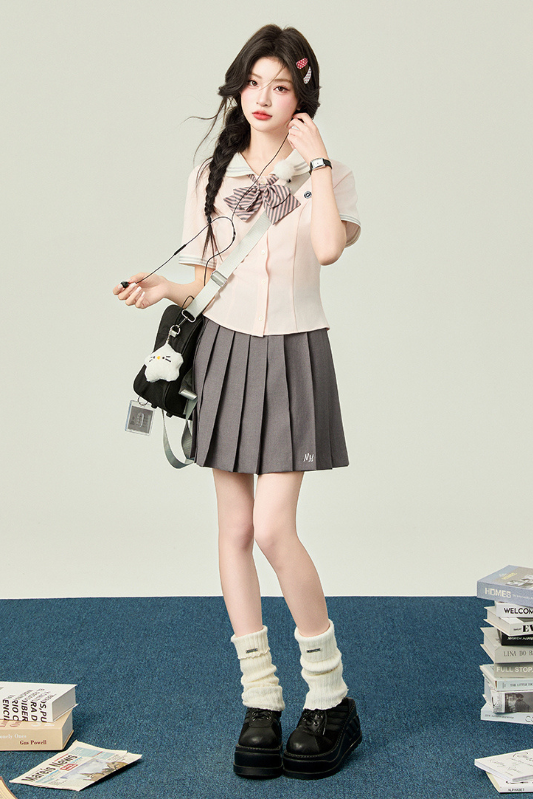 ❤ドールカラートップス+プリーツスカート+リボン❤