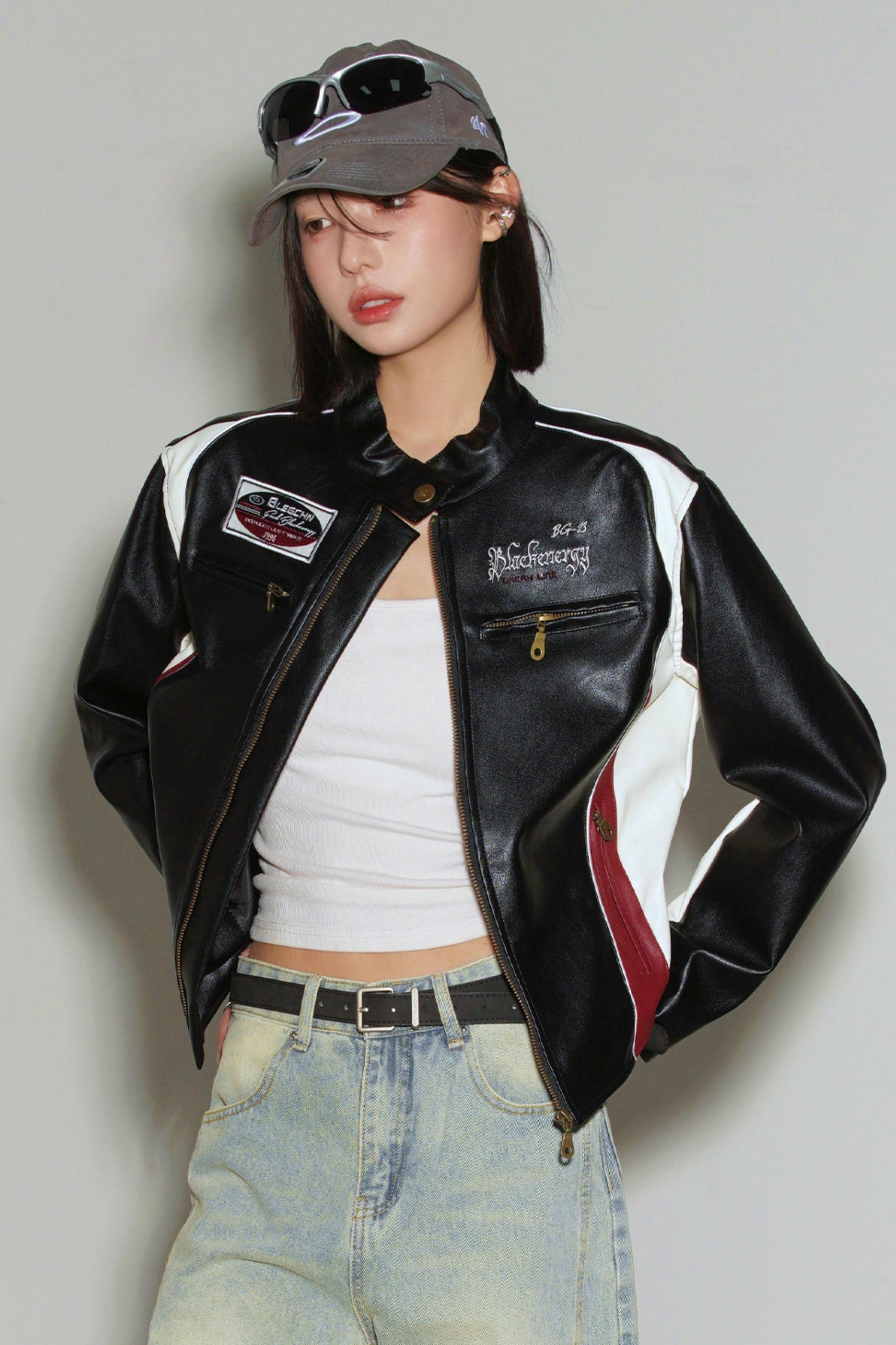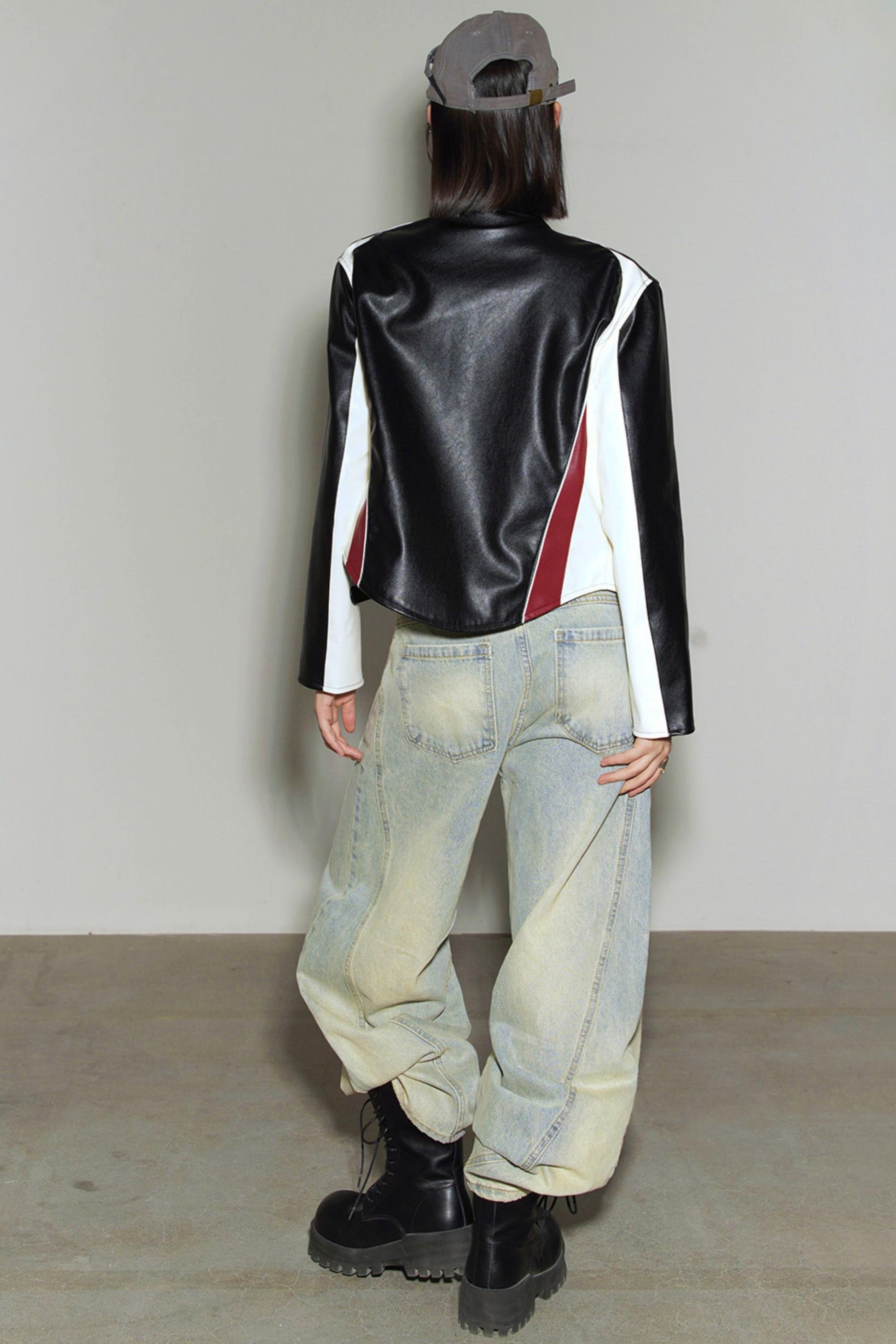 ❤パッチワークカラーブロックレザージャケット❤