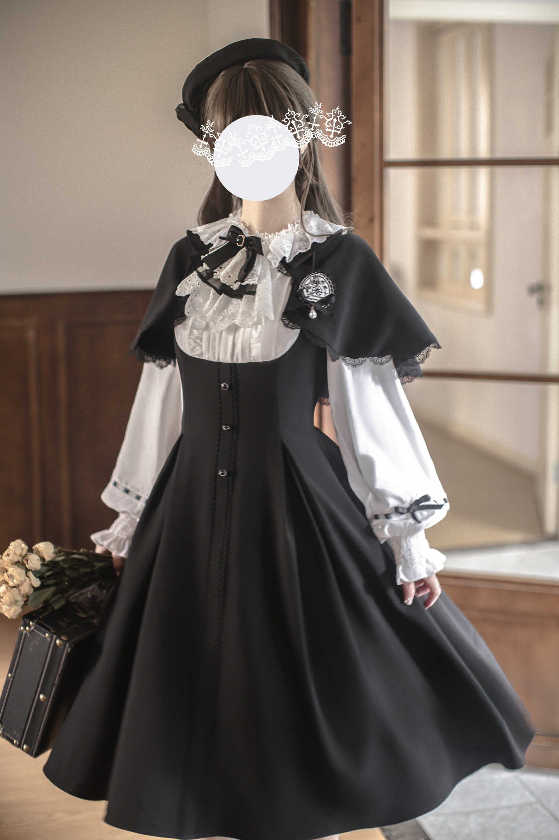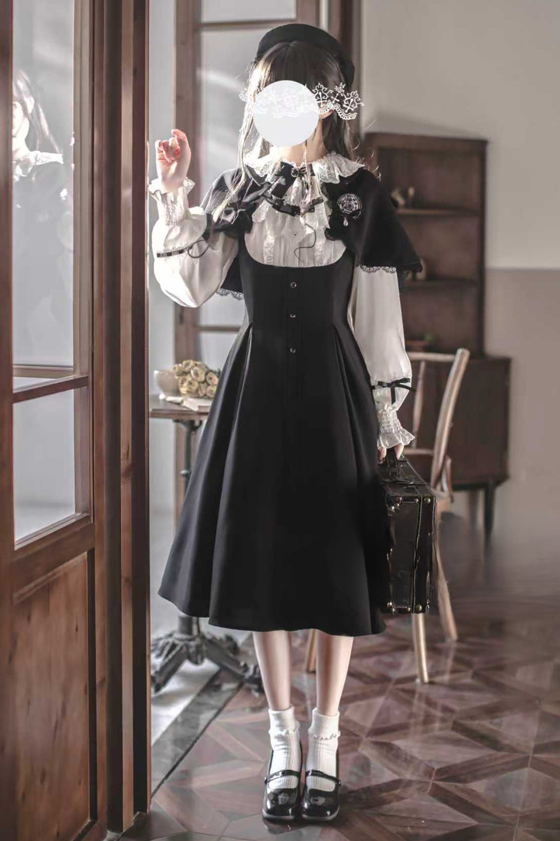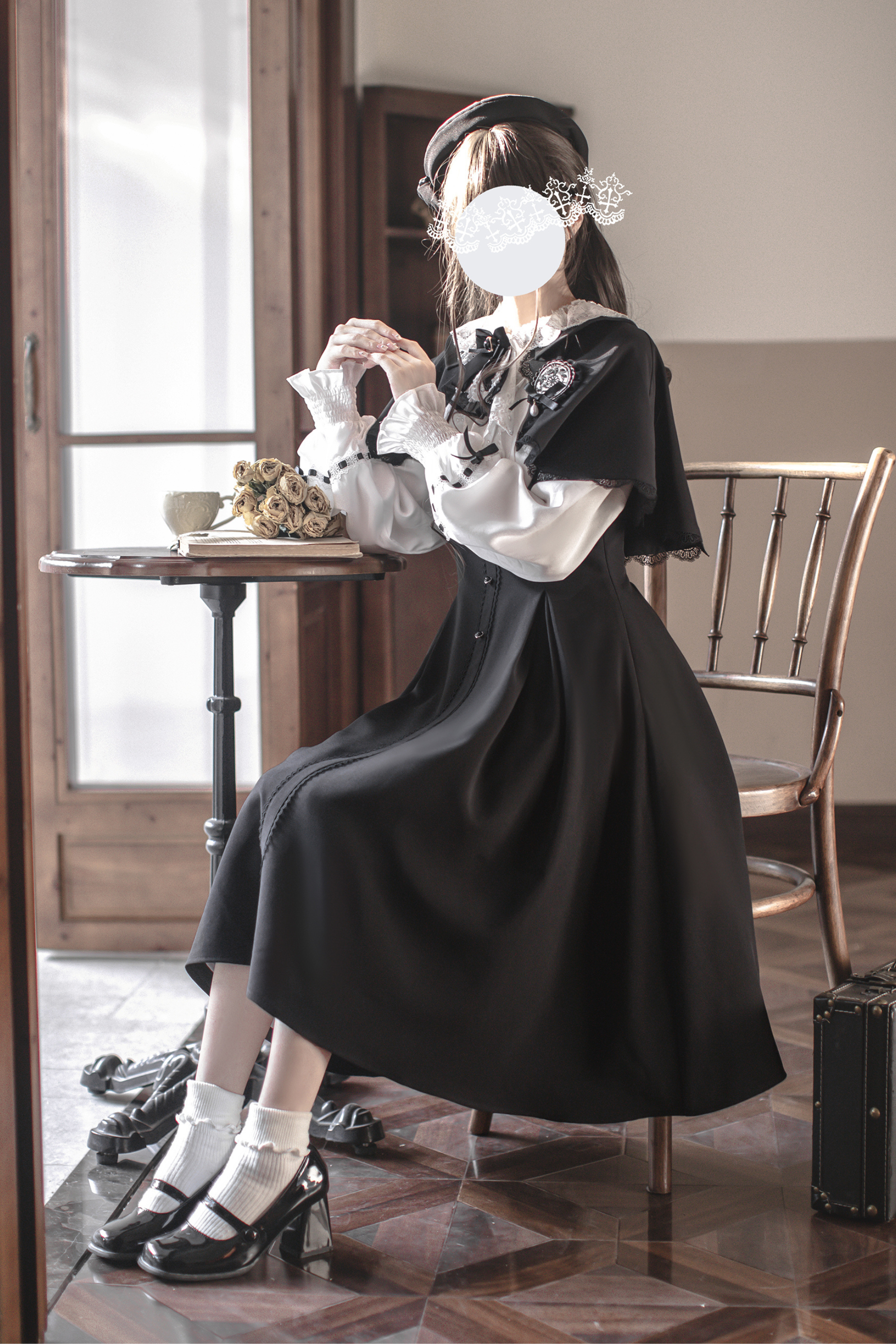 エレガントクラドレス+ケープ+ベレー帽+バッジ