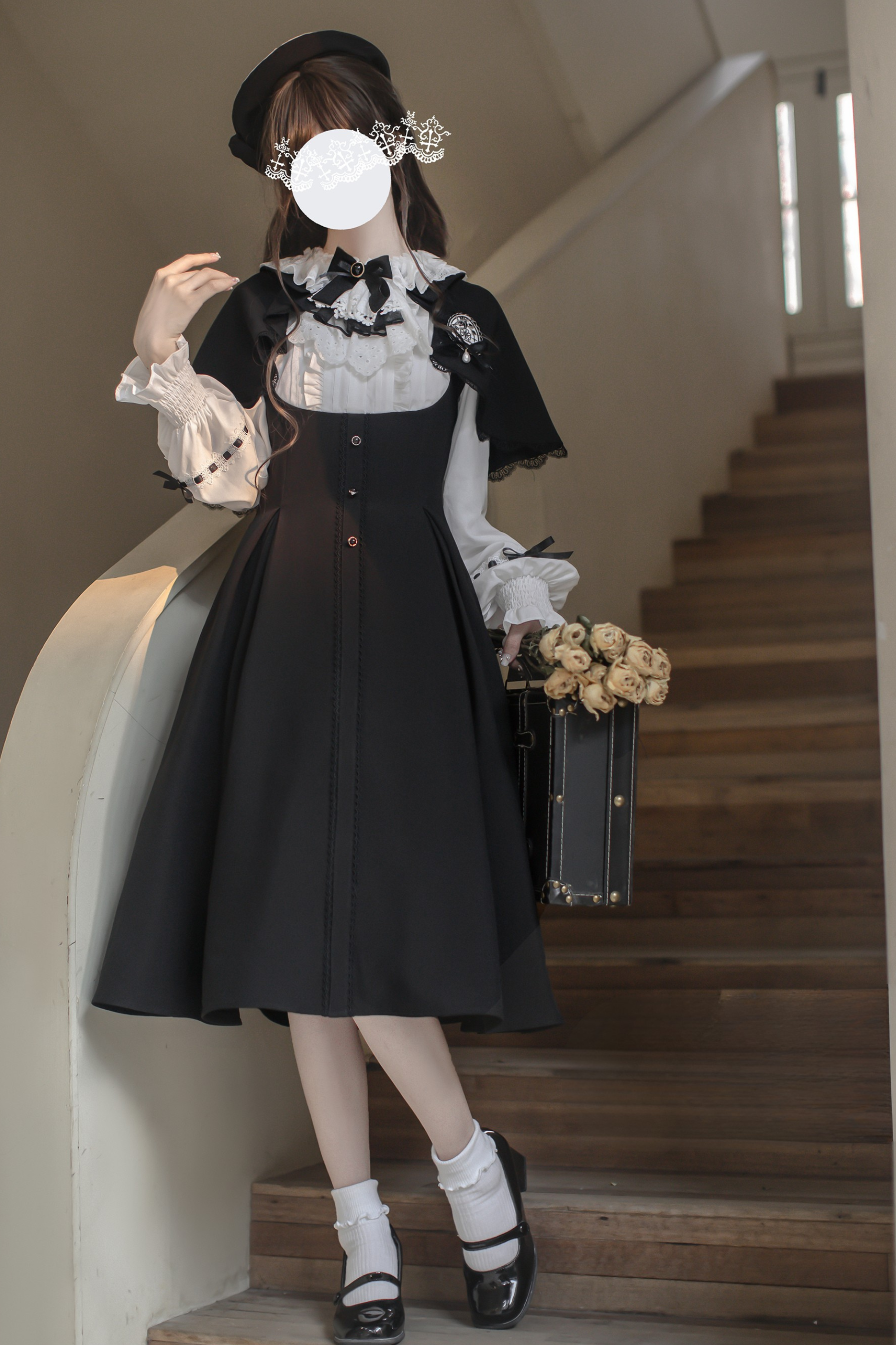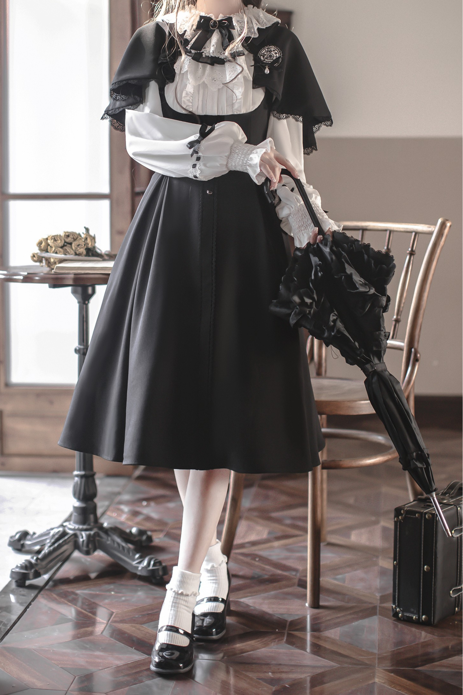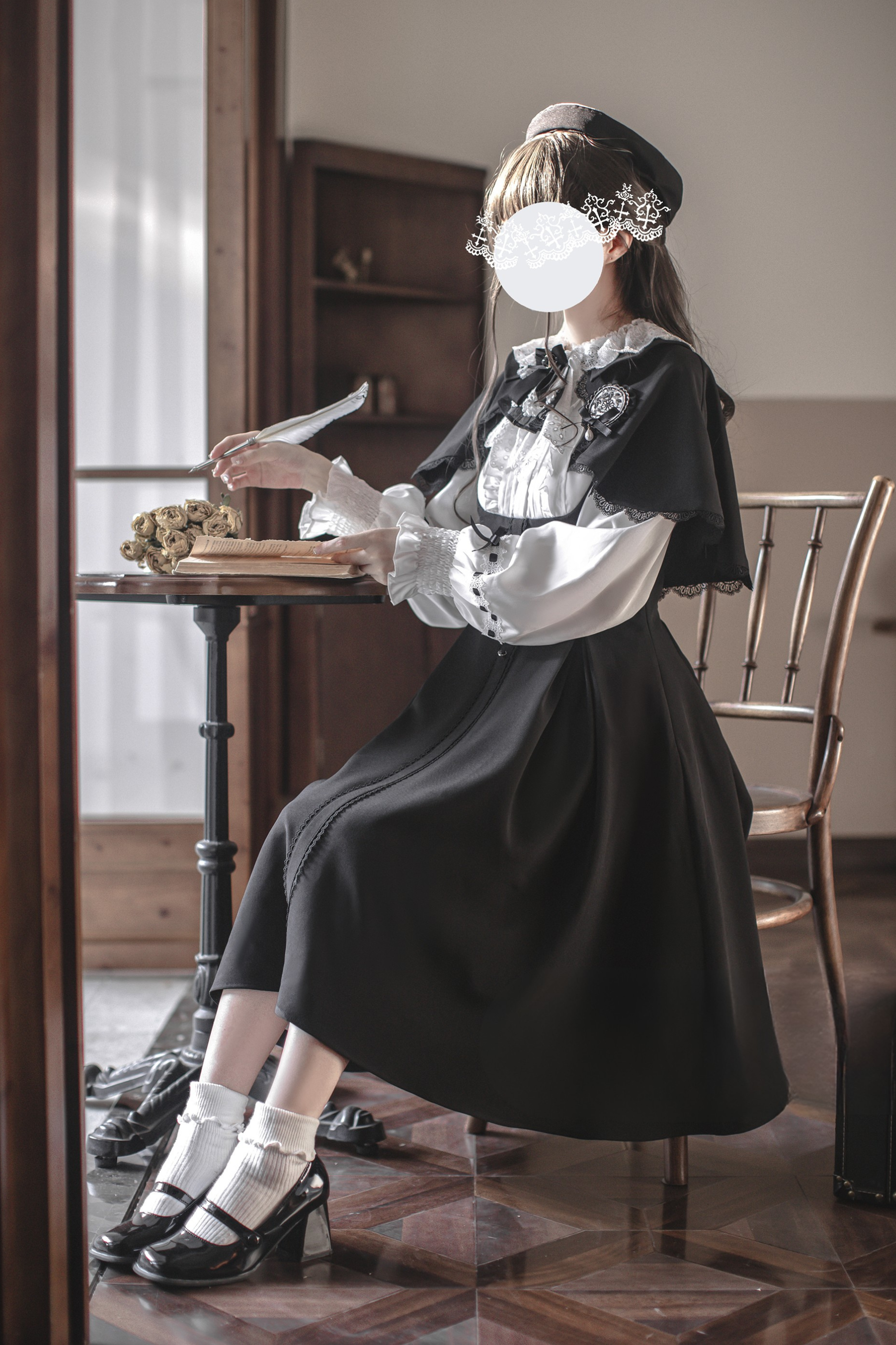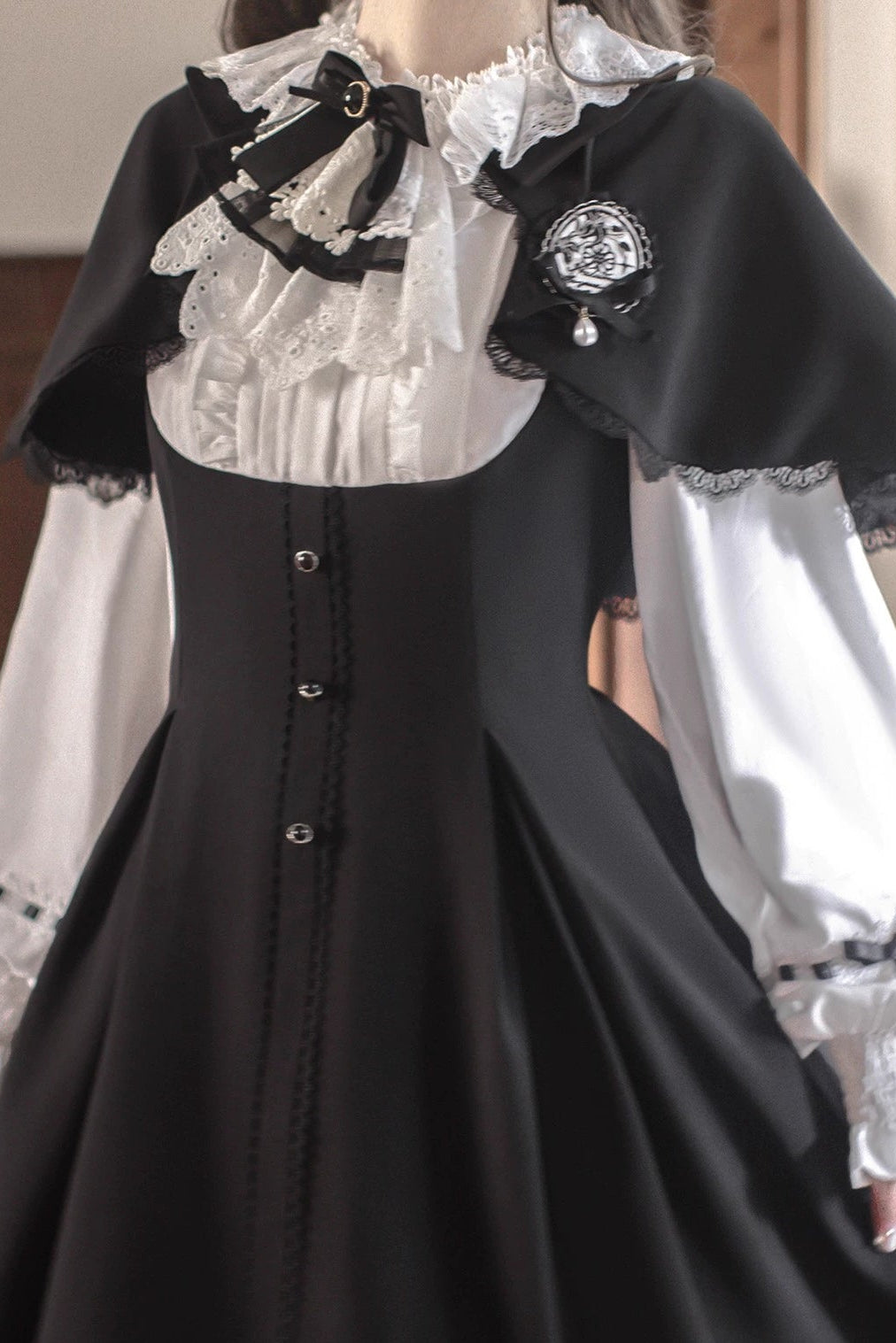 エレガントクラドレス+ケープ+ベレー帽+バッジ