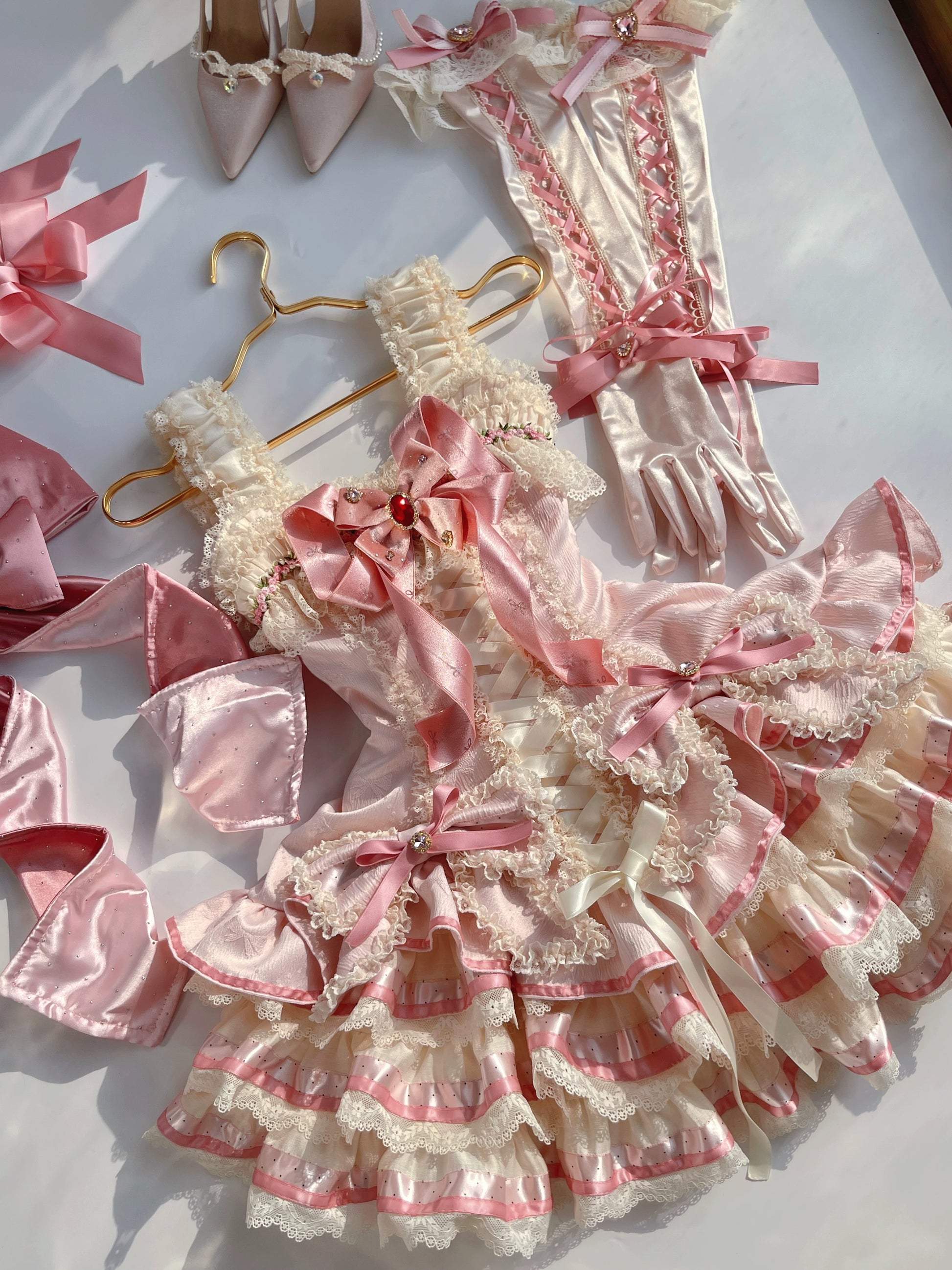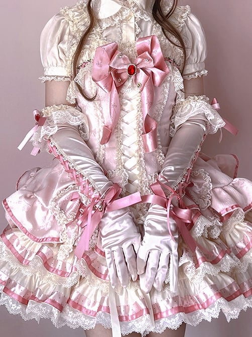 【4月30日予約締切】スウィートピンクロリータレースリボンティアードフリルプリンセスドレス