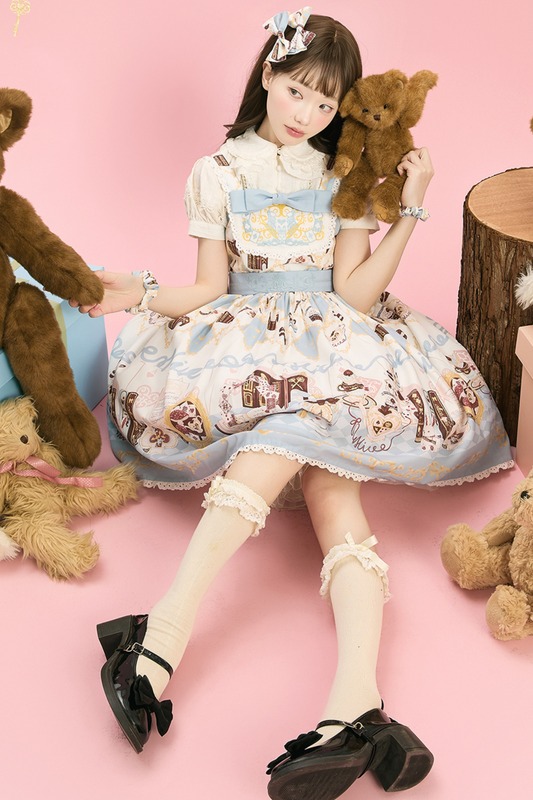 【予約商品】レトロアリス風サスペンダースカート+シャツ+リボンネクタイ+ブローチ+ヘアクリップ