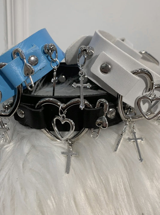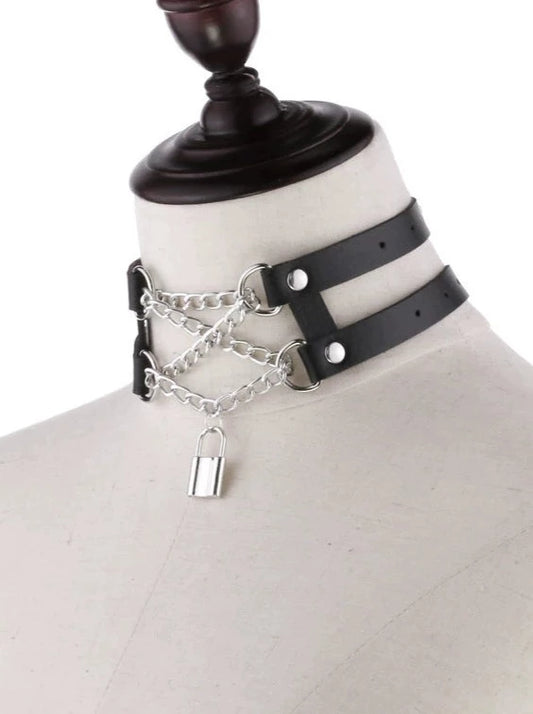 락 펜던트 레더 컬러 펑크 메탈 체인 초커