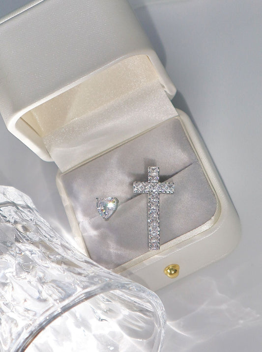 실버 오픈 하트 리플 이어링 + 귀걸이