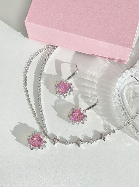자주색 크리스탈 링 + 목걸이 + 귀걸이