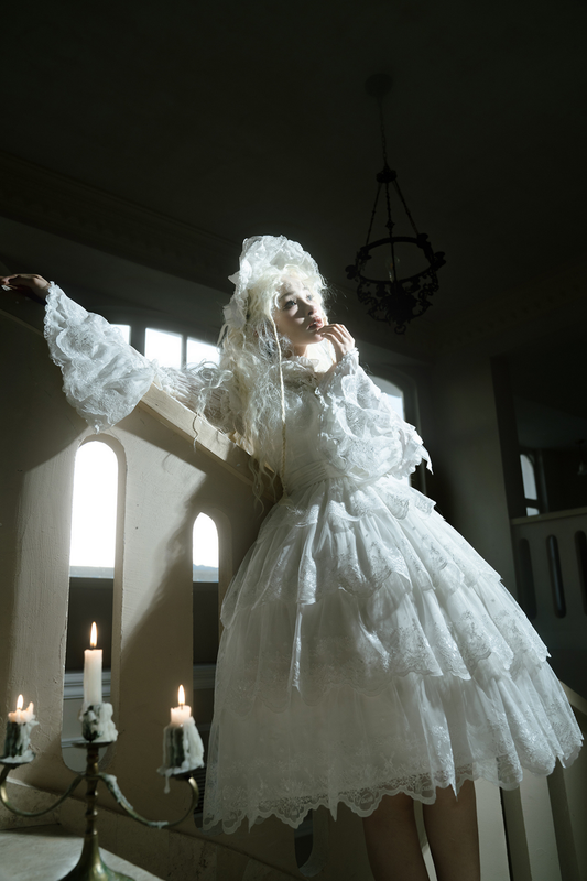 【予約商品】ホワイトシュガードールエレガントプリンセススリーブサスペンダードレススーツ+ボンネットハット