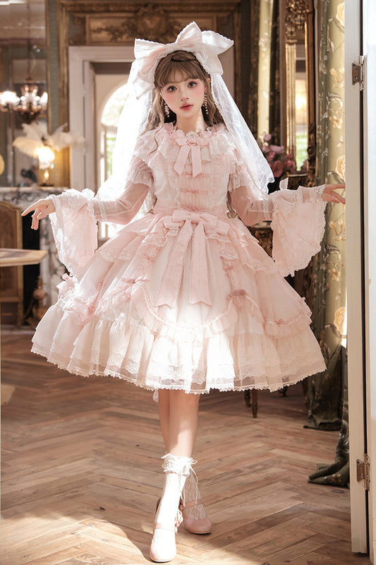 【予約商品】ピンクグリーンバレエスタイルロリータドレス+チュールベールリボン+チョーカー