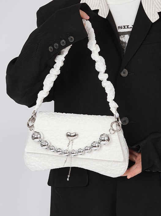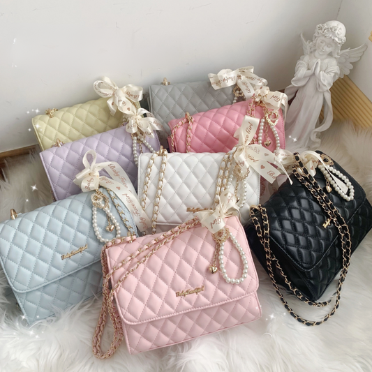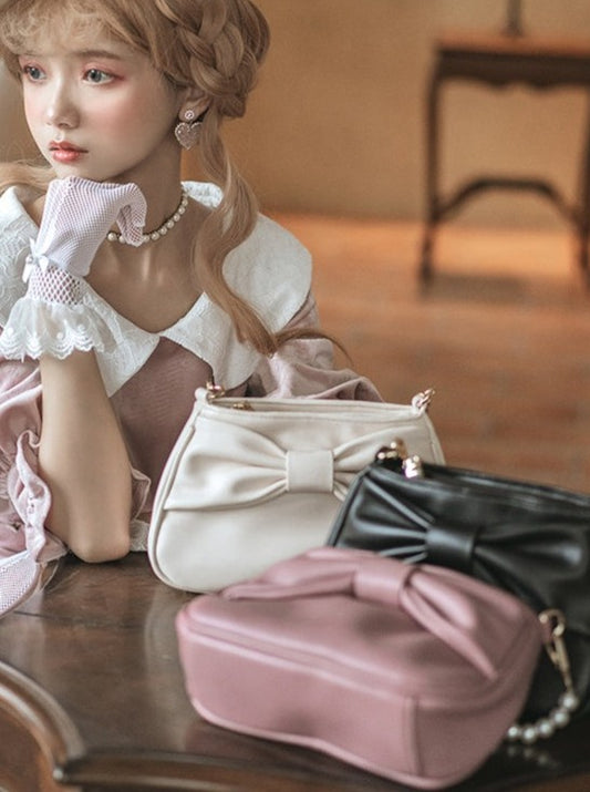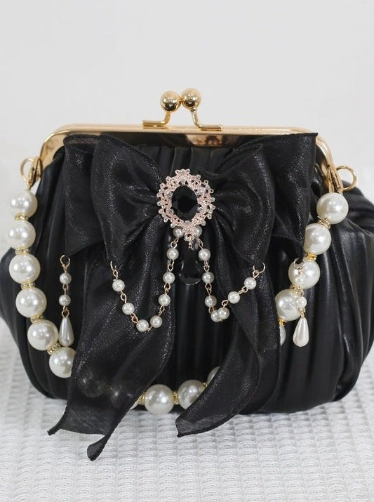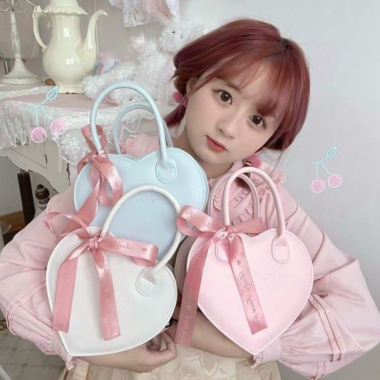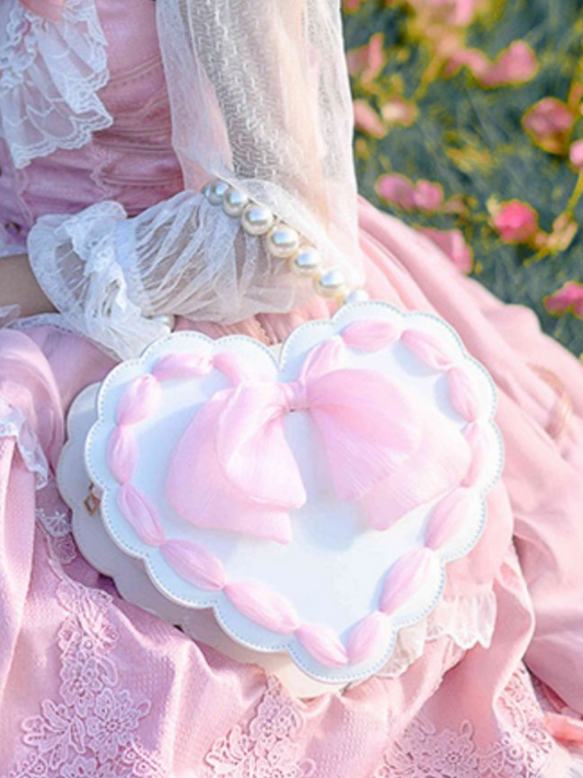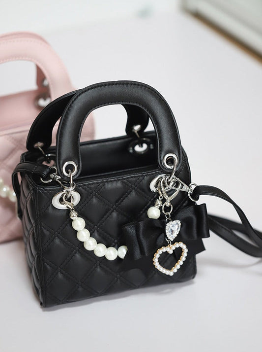 심장 매력 리본 백 [짧은 & 진주 긴 스트랩 포함]
