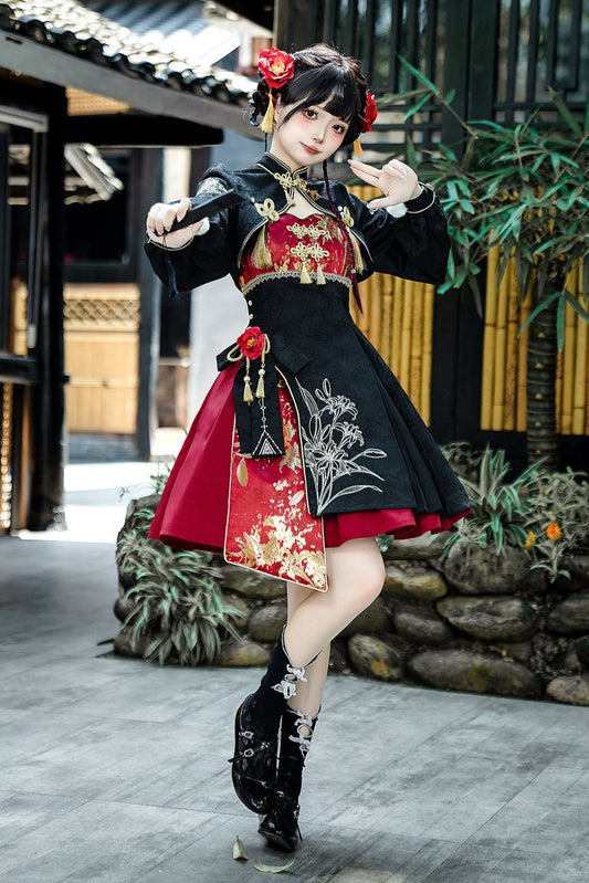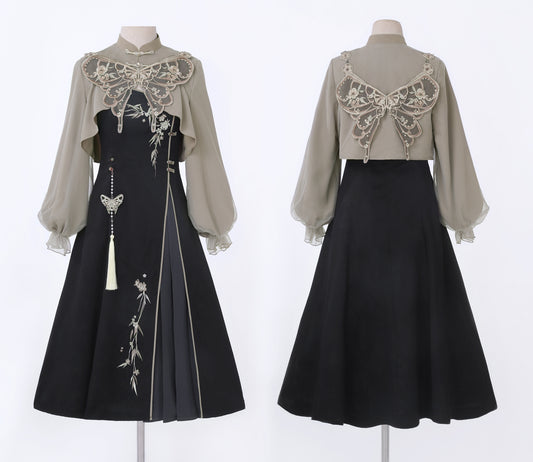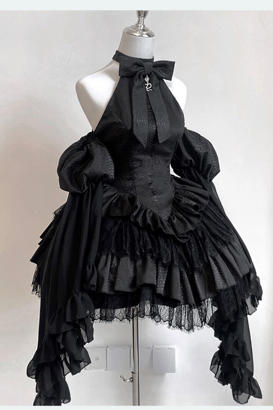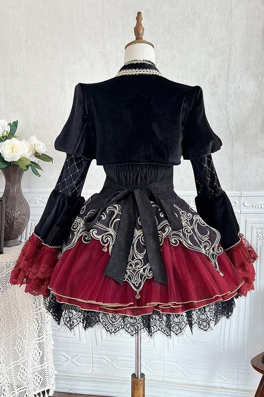 나이트 심포니 고딕 쇼트 재킷 + 롱 서스펜더 드레스 + 슬리브리스